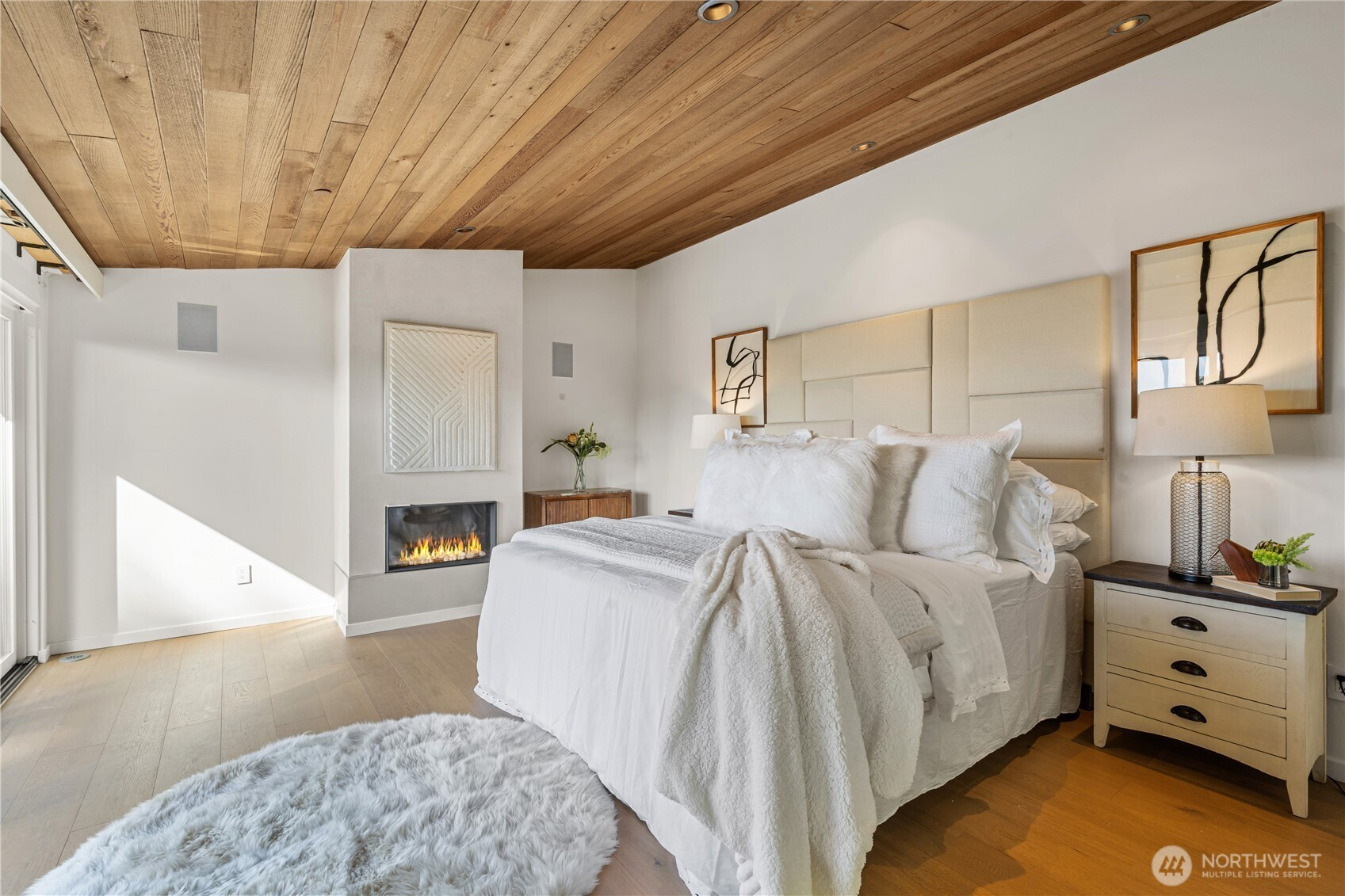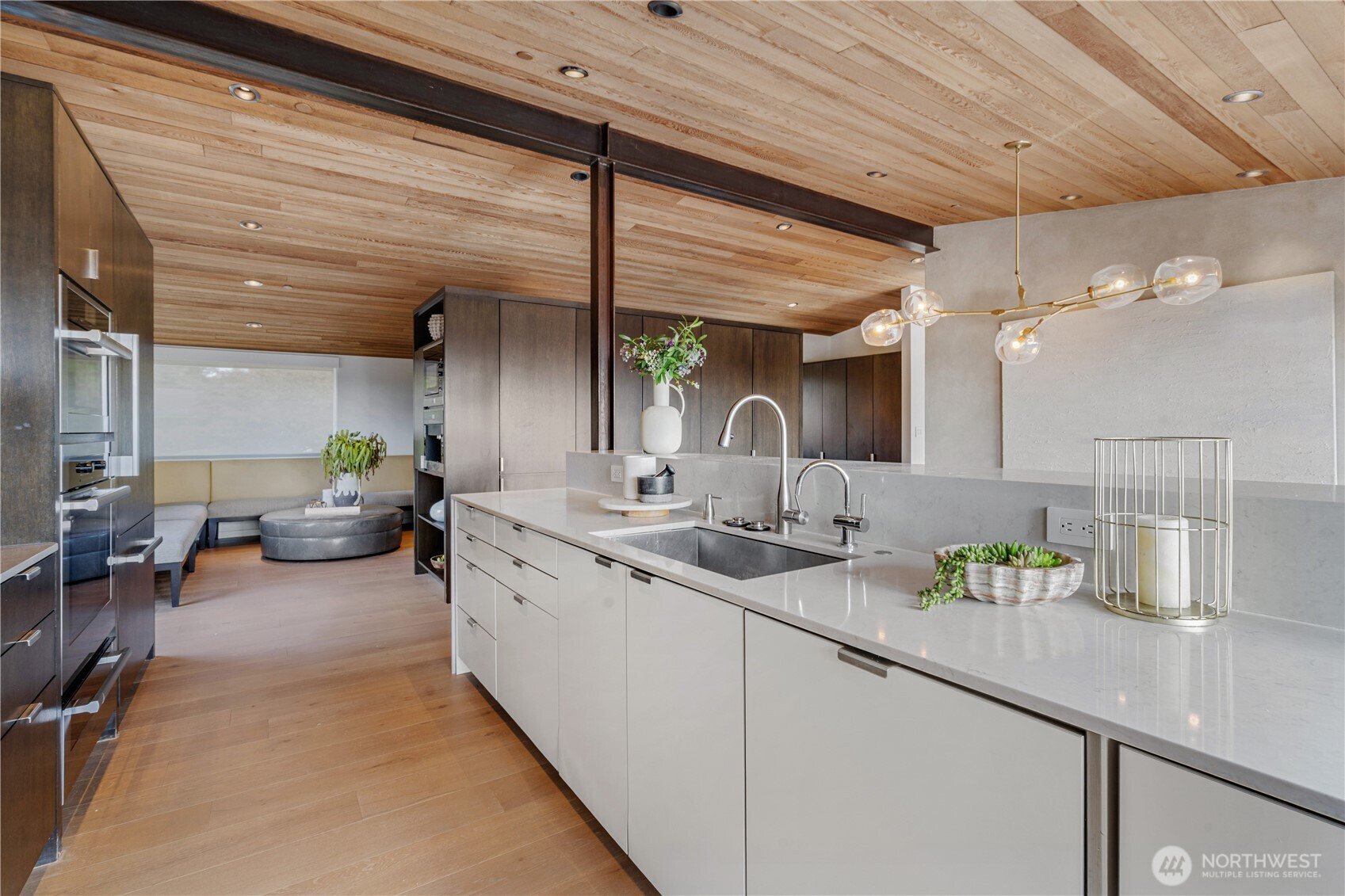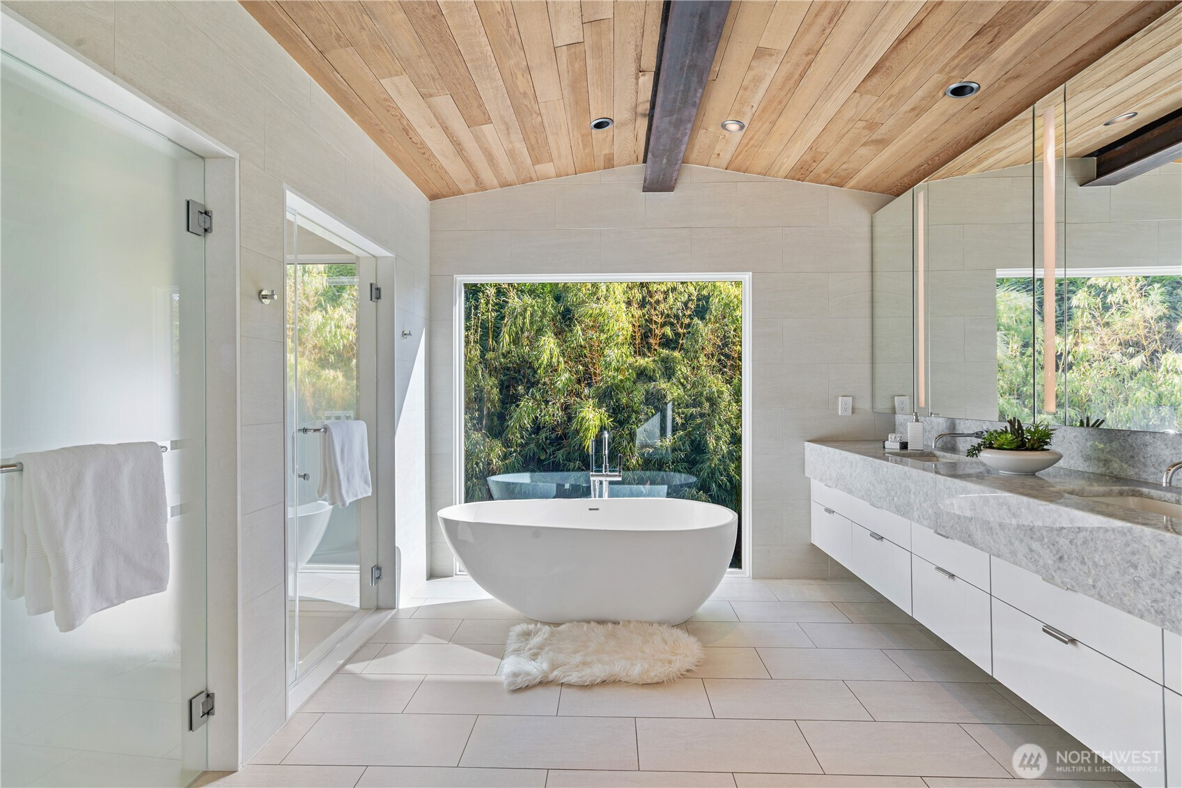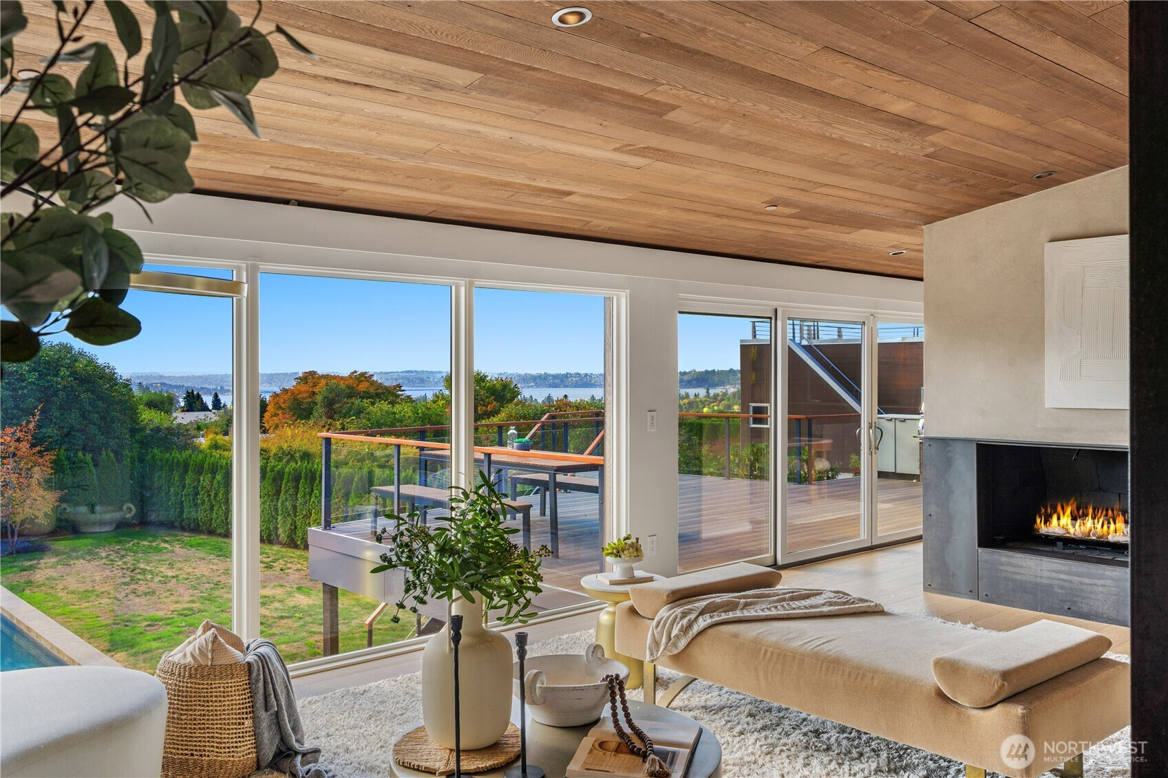 Experience timeless sophistication in this reimagined mid-century masterpiece by Garret Cord Werner, set in the coveted Mercia enclave of Clyde Hill with sweeping views of Lake Washington and DT Seattle. A studs-out renovation fuses iconic design with modern luxury, featuring floor-to-ceiling windows and new engineered hardwood flooring on the main. Private primary wing boasts a fireplace, dual walk-in closets, a spa-inspired 5-piece bath with steam shower, and a private balcony. Additional highlights include a separate office, media room, Miele equipped Kitchen and Control4 whole-home system. Outdoors, enjoy a south-facing backyard with custom modern 17' pool w/waterfall, spa & sport court in lush landscaping. Zoned for Medina Elementary.