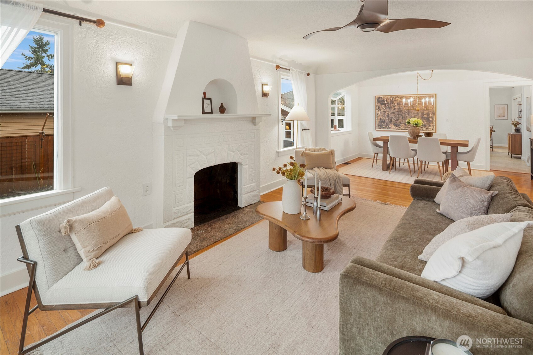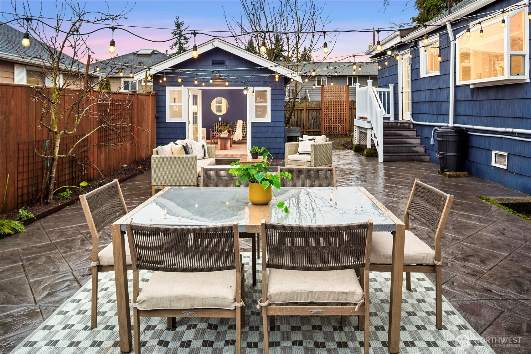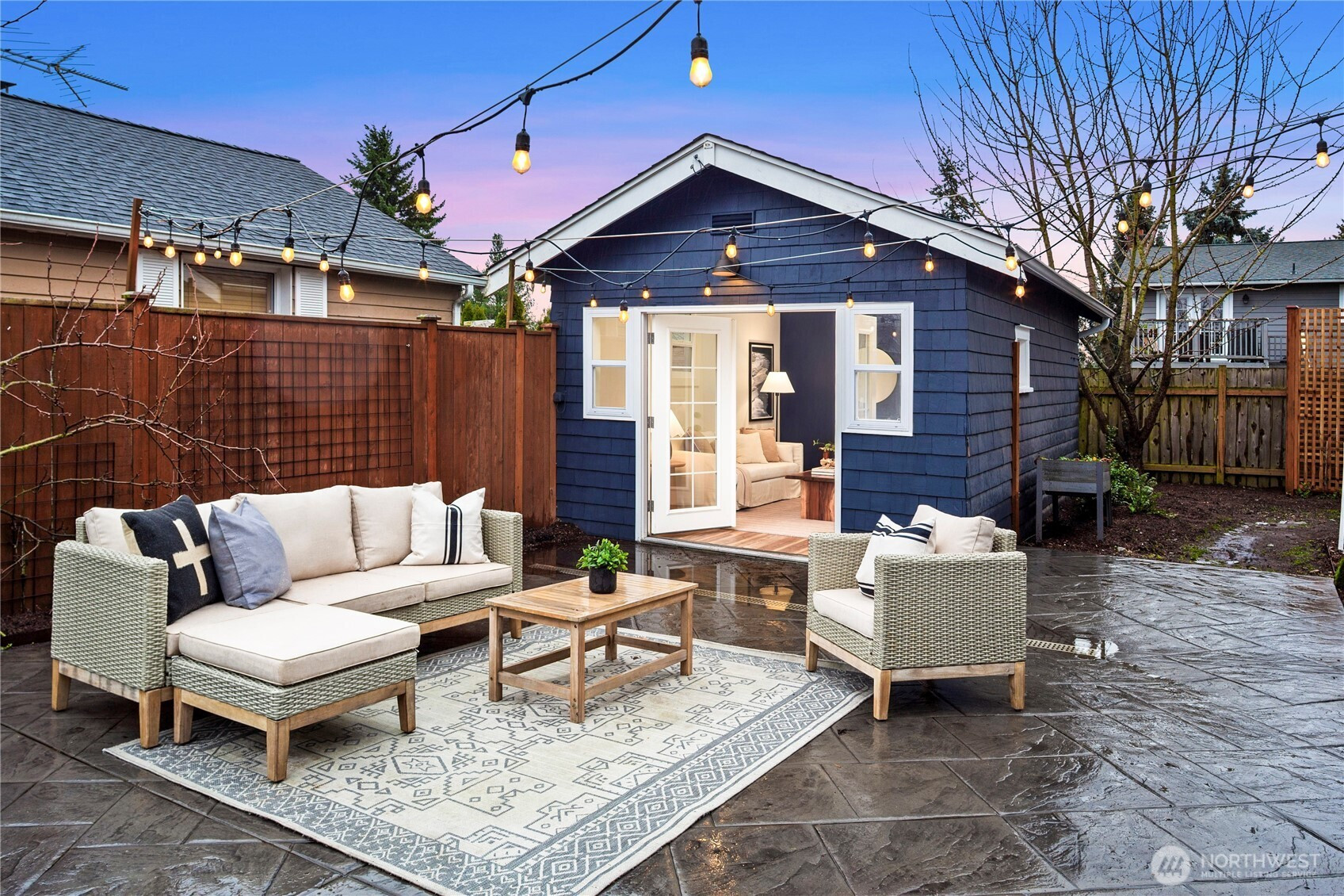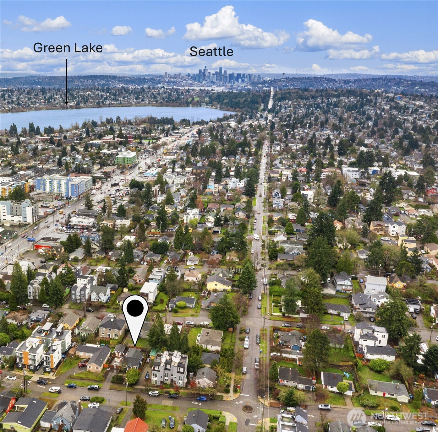 This classic Seattle craftsman exudes warmth & charm w/ coved ceilings, open living & dining layout, & original hardwood floors. Inviting breakfast nook w/ vaulted ceilings & kitchen pantry. Updated for modern living w/ newer electrical panels, EV charging, central A/C, main bath remodel, & more! Enjoy a fully fenced & spacious yard w/ textured concrete patio ideal for entertaining & an abundance of gardening space! A finished basement w/ separate entrance offers flexible use as a rental, primary suite, or bonus room. Fully finished & heated detached studio provides 215sf of WFH space or rec room. Off-street parking. Ideal location w/ easy commute to DT, & moments to grocery, retail, cafes, & Green Lake. Freshly painted & ready to move in!