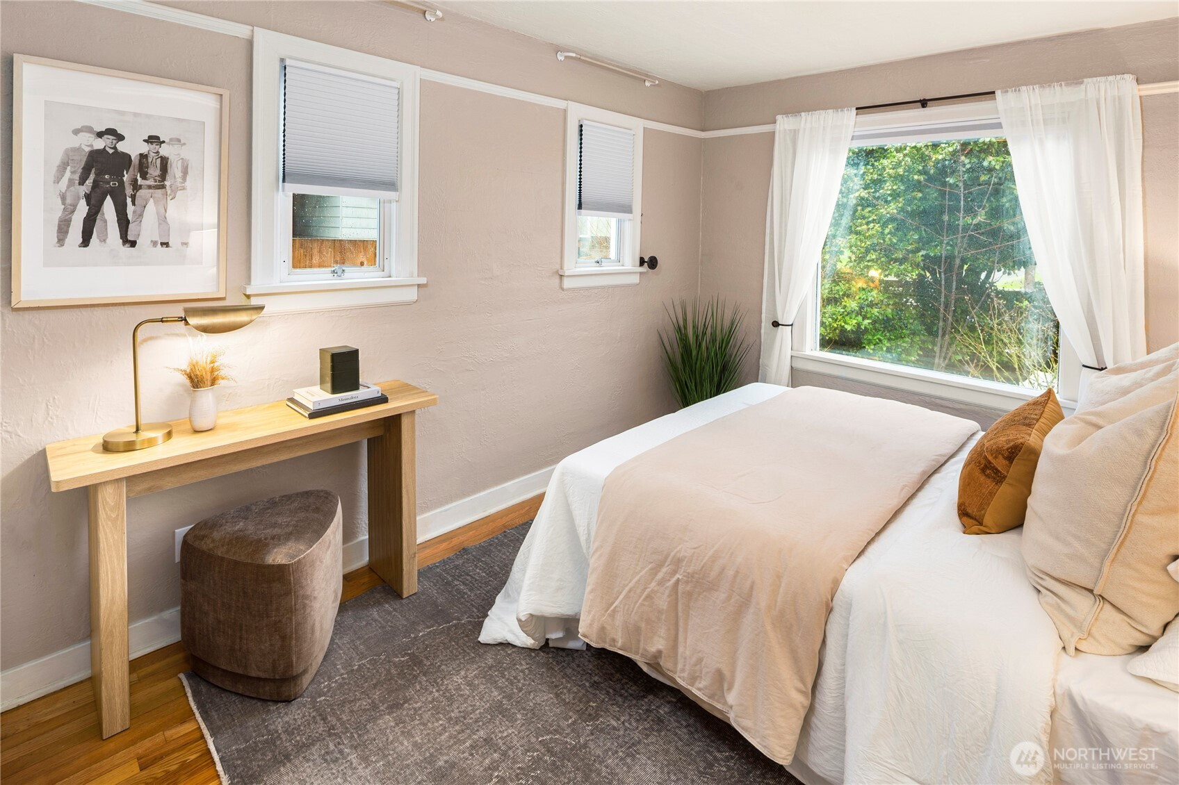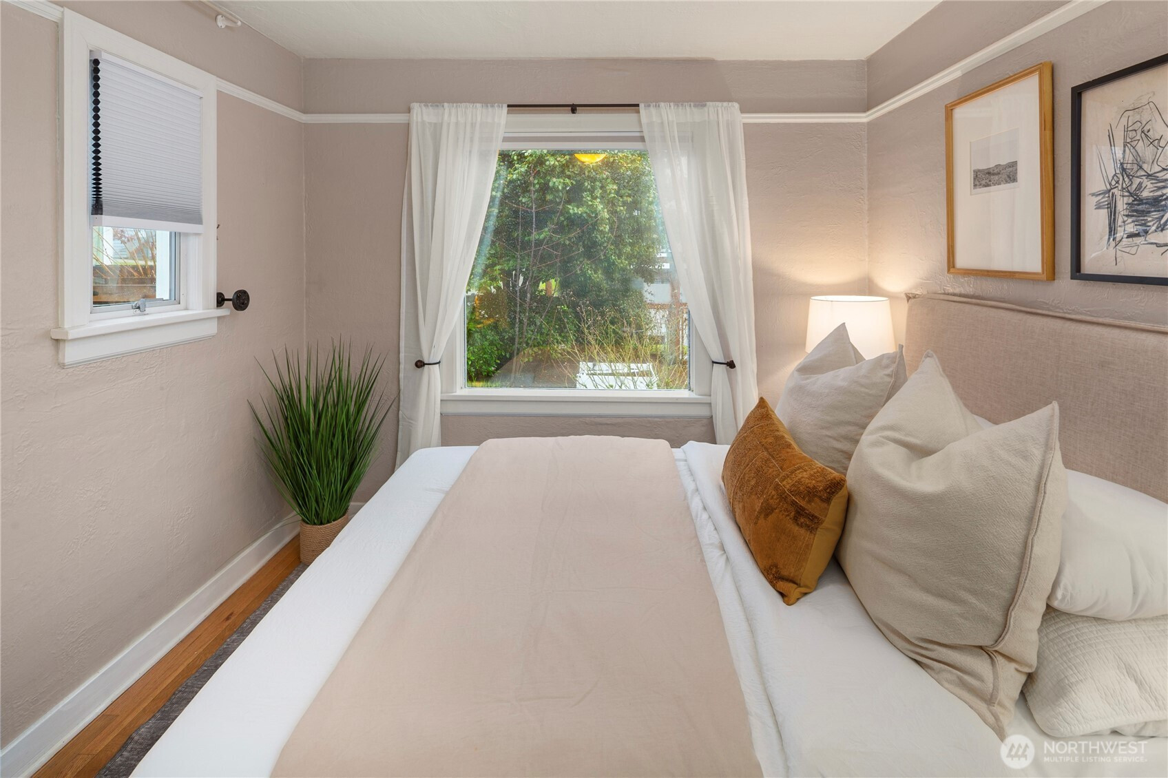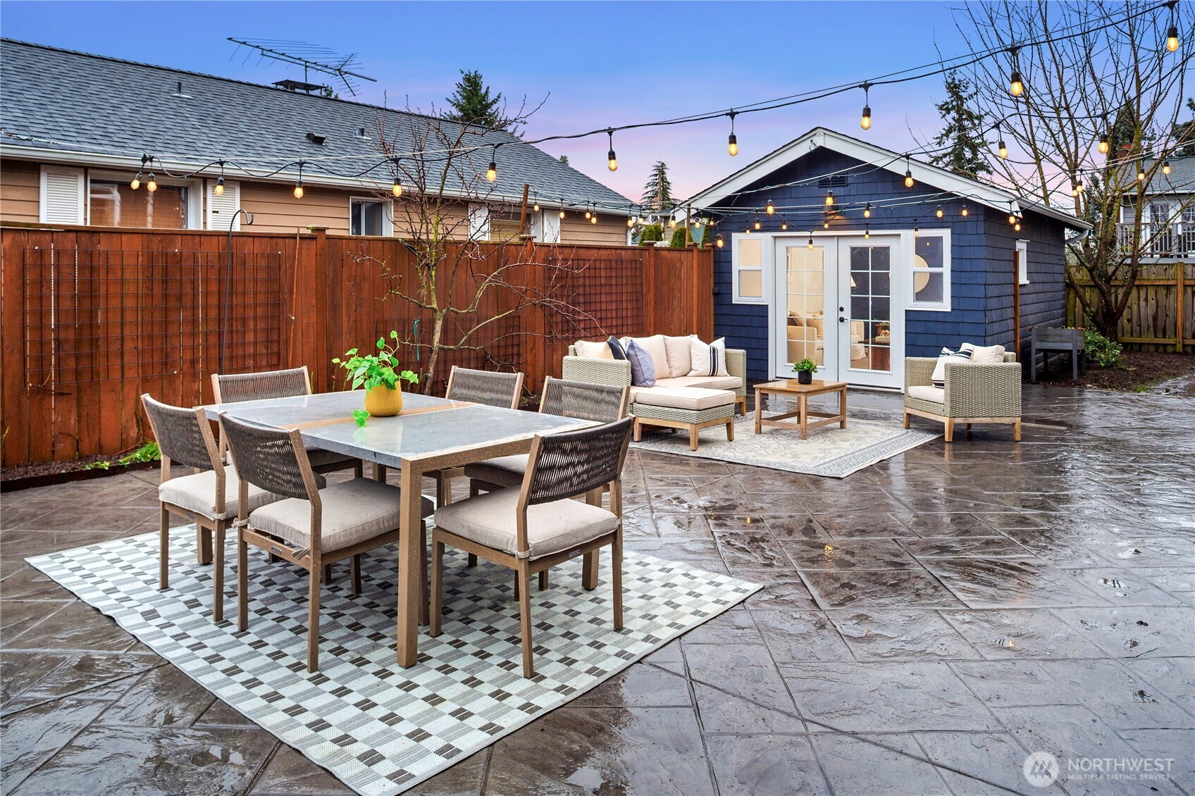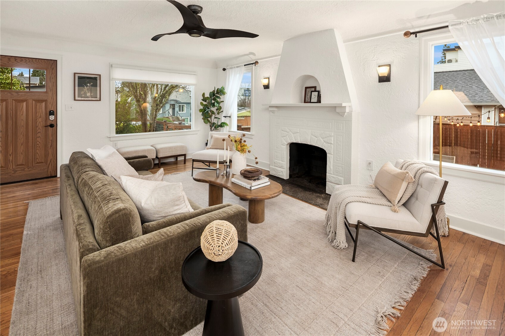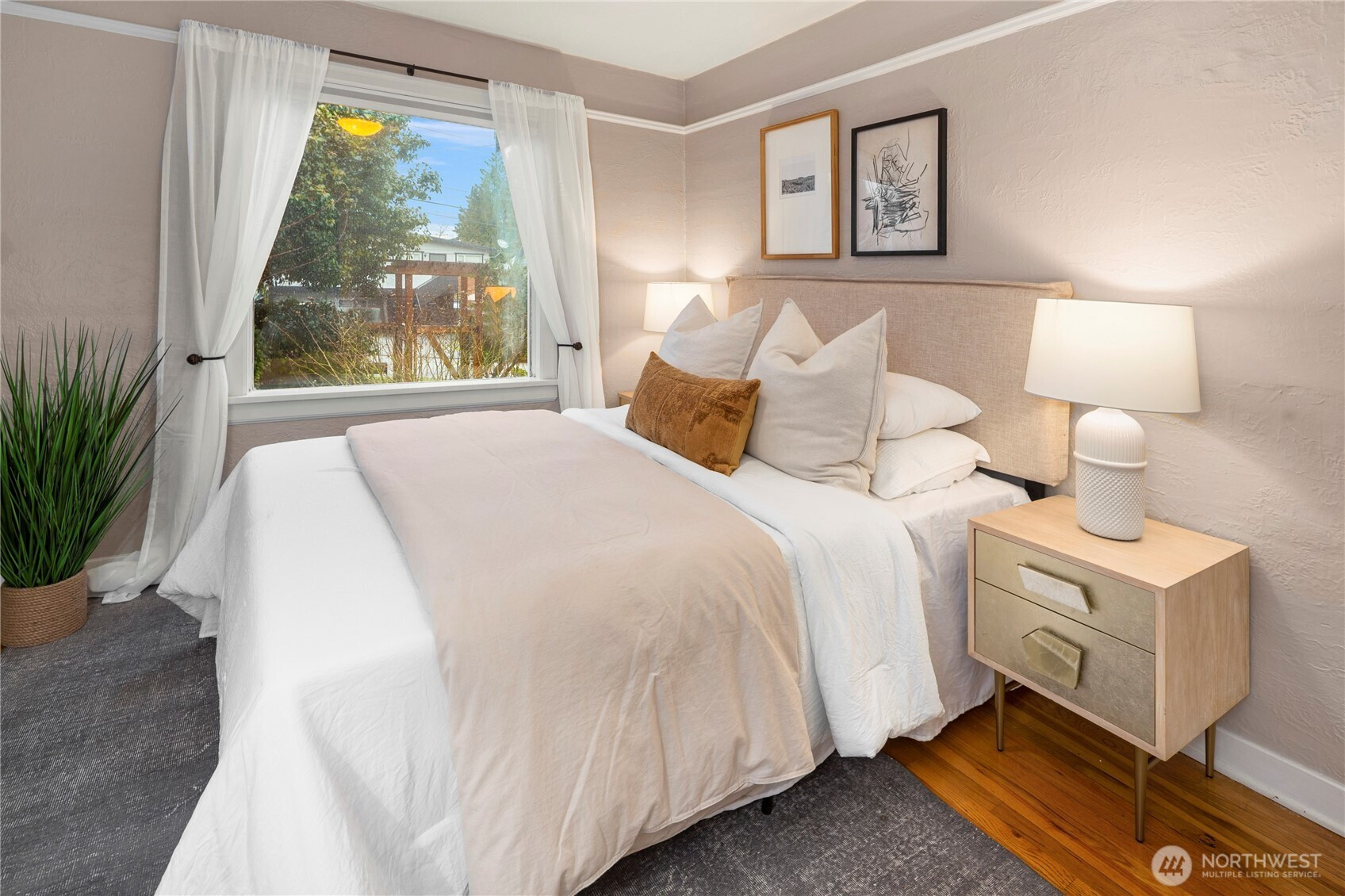 This classic Seattle craftsman exudes warmth & charm w/ coved ceilings, open living & dining layout, & original hardwood floors. Inviting breakfast nook w/ vaulted ceilings & kitchen pantry. Updated for modern living w/ newer electrical panels, EV charging, central A/C, main bath remodel, & more! Enjoy a fully fenced & spacious yard w/ textured concrete patio ideal for entertaining & an abundance of gardening space! A finished basement w/ separate entrance offers flexible use as a rental, primary suite, or bonus room. Fully finished & heated detached studio provides 215sf of WFH space or rec room. Off-street parking. Ideal location w/ easy commute to DT, & moments to grocery, retail, cafes, & Green Lake. Freshly painted & ready to move in!