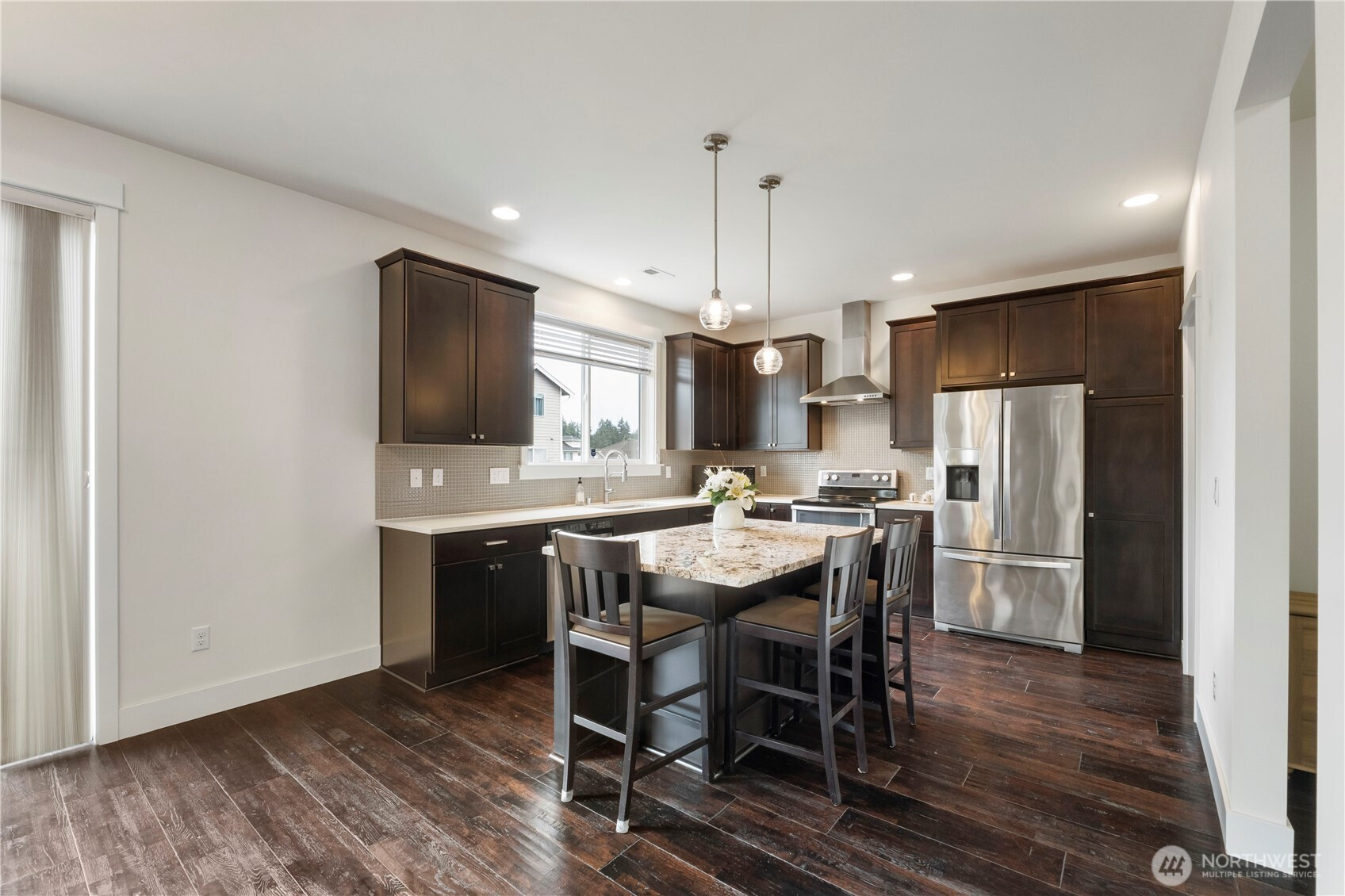 The moment you enter, you're greeted by a bright, airy formal living room that leads into the spacious family room and kitchen, making the transition between spaces feel open and easy. This warm and well-maintained Quadrant-built home features engineered hardwood flooring throughout both levels. The kitchen offers stainless steel appliances, abundant cabinetry, a walk-in pantry, and a large island. An extended, upgraded covered deck provides generous year-round outdoor living, overlooking a low-maintenance yard designed for easy care. Upstairs includes a spacious primary suite with two separate walk-in closets, along with two additional bedrooms each offering their own walk-in closet, a versatile bonus/loft, and a well-designed laundry room with a built-in work table and a dedicated utility sink for added convenience. The home’s thoughtful layout and well-planned spaces support comfortable everyday living. Pre-inspected and recently repainted, roof cleaned, home offers a freshly updated exterior. Easy access to parks, schools, shopping, dining, transit, and major routes including I-5, 18, and 167