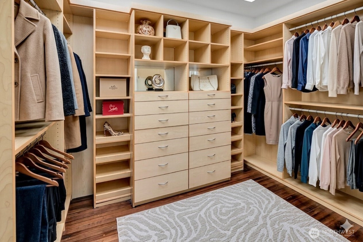 Modern luxury and maritime excellence converge in this remodeled North End jewel. Command the shoreline with a shared 130-foot dock—newly outfitted with 50-amp shore power to accommodate a multi-vessel fleet. The home’s architectural interior is a masterpiece of light and scale, anchored by a dramatic 19-foot ceiling that soars over a floating staircase and a massive atrium art wall designed for the collector. This verticality is matched by soaring 11-foot ceilings and 11-foot custom doors that connect the living space to expansive view deck and lake breezes. Custom glass-accented stairway enhances the modern aesthetic. The culinary heart of the home features quartz countertops, a Jenn Air professional gas range, and Fisher & Paykel double-drawer dishwasher - all with lake views to enjoy while you create. Retreat to a primary sanctuary with large balcony boasting a boutique custom closet with integrated laundry and a spa-bath clad in Porcelanosa "wave" tile, heated floors, skylights, Bellmont floating cabinetry and view window. Outside, the grounds are an oasis of tranquility featuring an award-winning Asian-inspired garden with a natural rockery. With a newer roof, furnace, and 270 sq. ft. of unfinished flex space for a future wine cellar or gym, this residence is a rare fusion of high-design and deep-water utility. Walk to Fruitland neighborhood park and small boat launch.