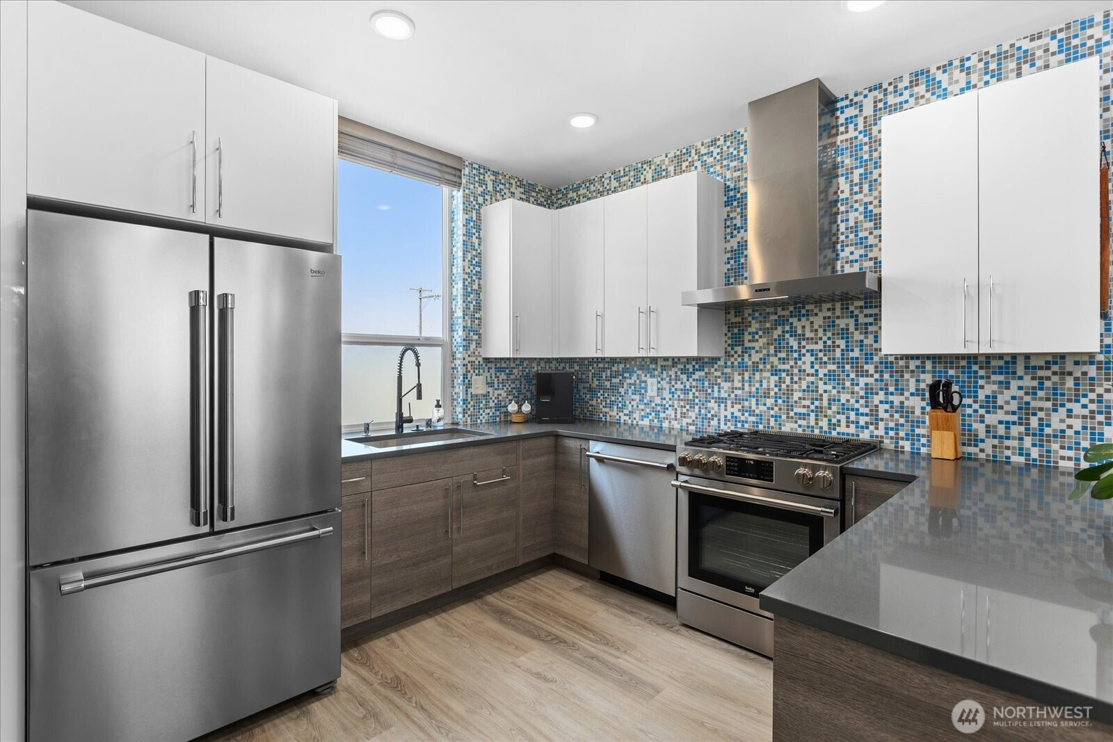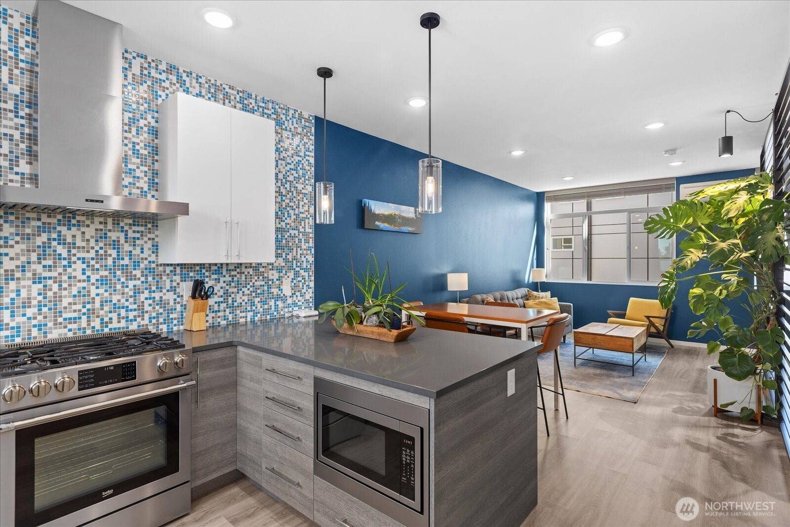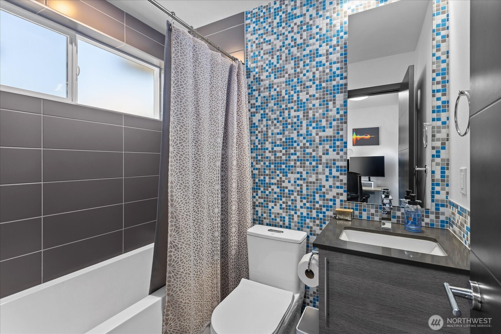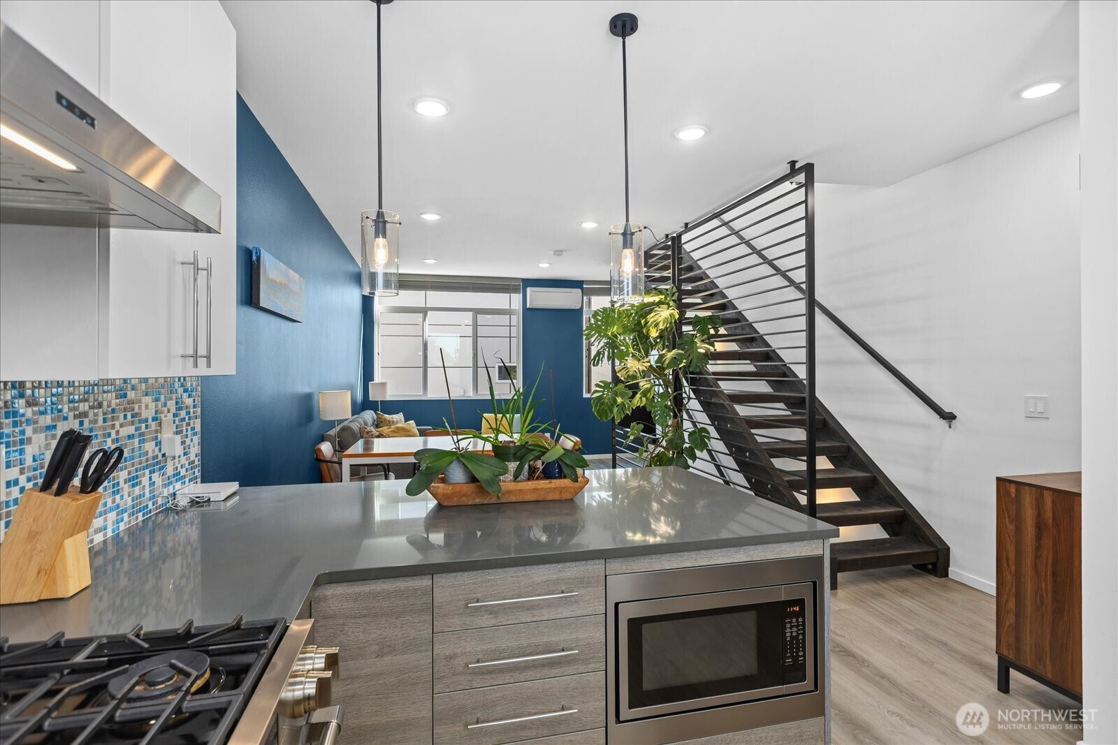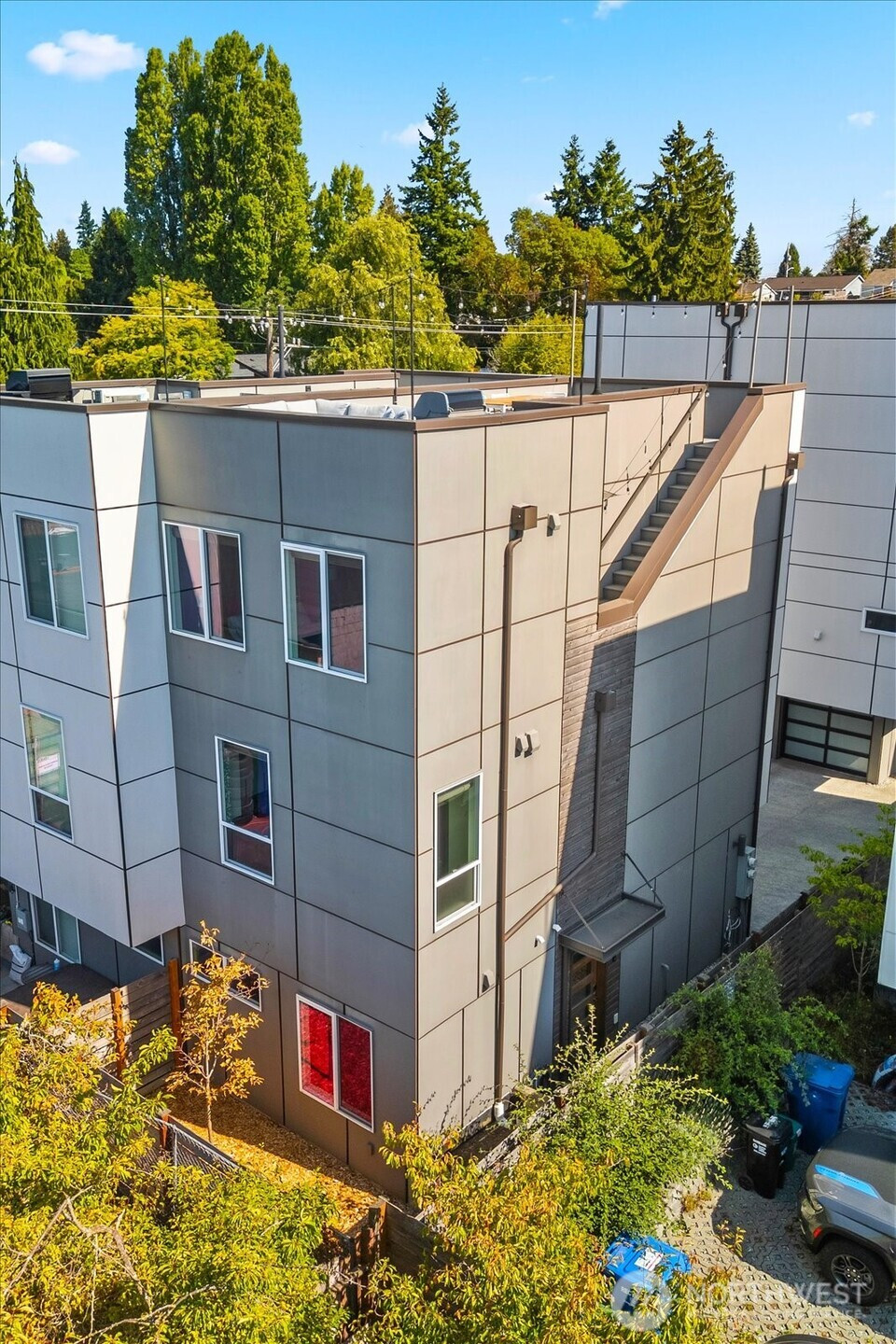 Welcome to your modern move-in ready townhome with superior finishes throughout. You’ll love pulling straight into your garage equipped with a smart door opener, EV charging, and storage space. Entry level bedroom with its own full bath is perfect for guests. Floating staircase provides a contemporary flow and sophisticated touch. Main level offers an open floor plan, ½ bath, and a chef’s kitchen with plenty of storage, quartz counters, full height tile backsplash & high-end appliances. Spacious primary suite is one floor up with dual sinks, large shower, and walk-in closet. You’ll enjoy relaxing with views of the Olympics from the rooftop deck. Centrally located to all that White Center and W. Seattle have to offer. Walk Score of 89!