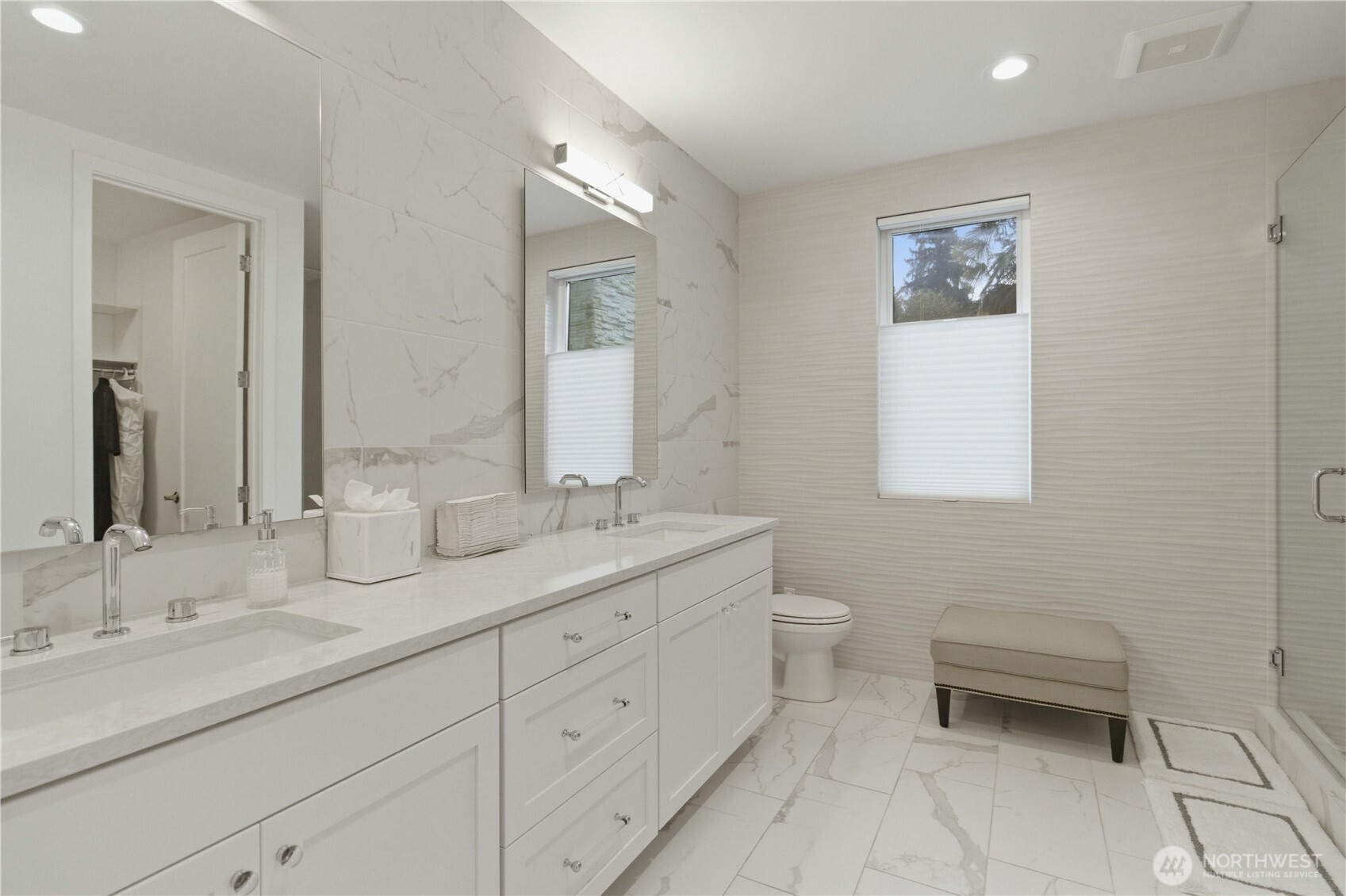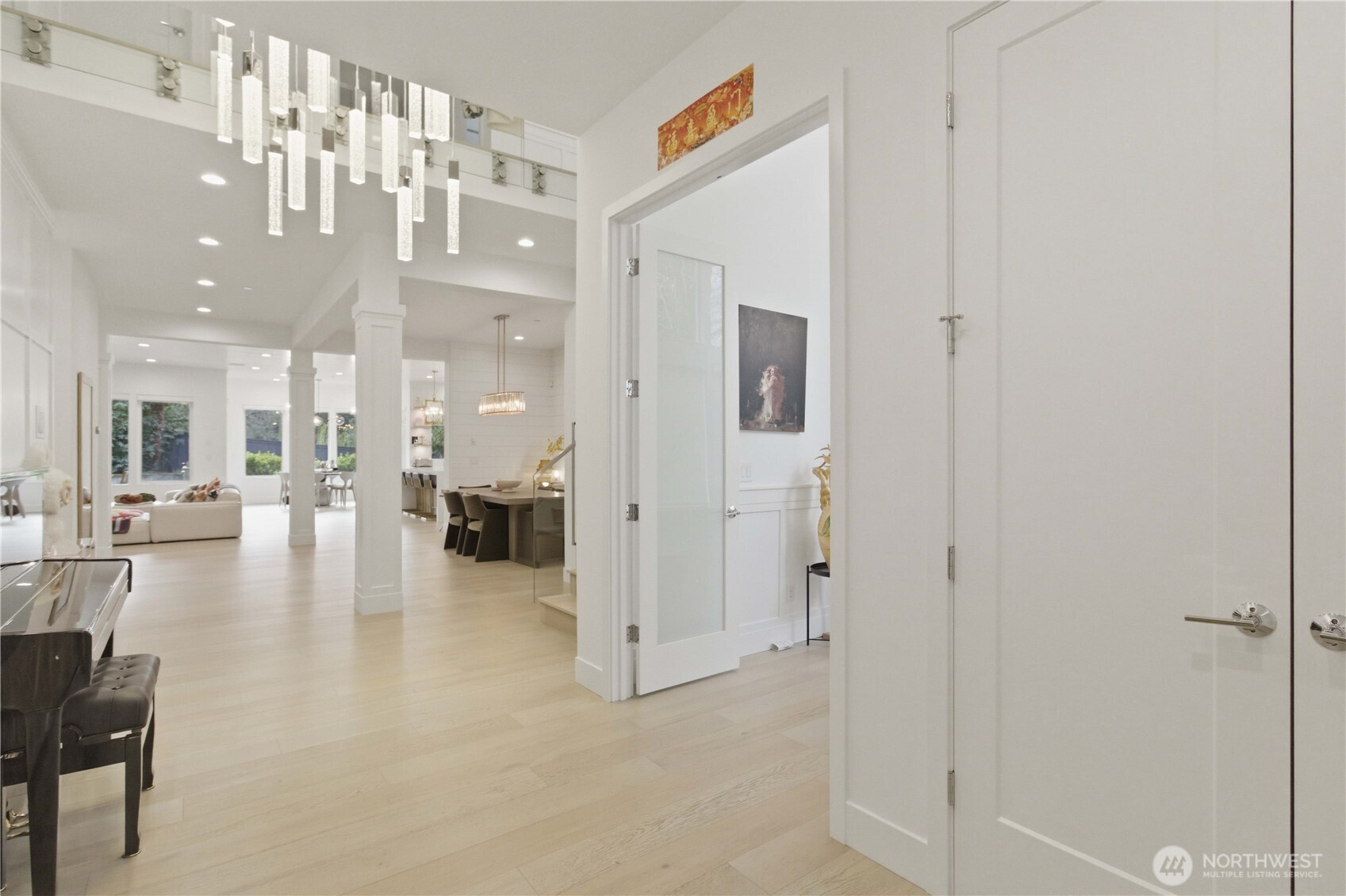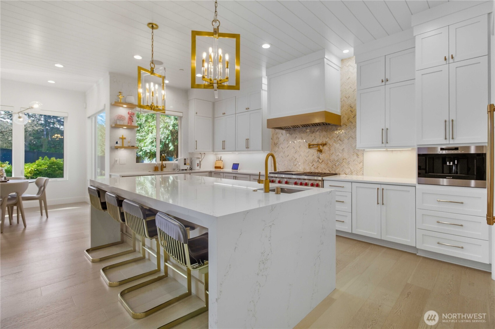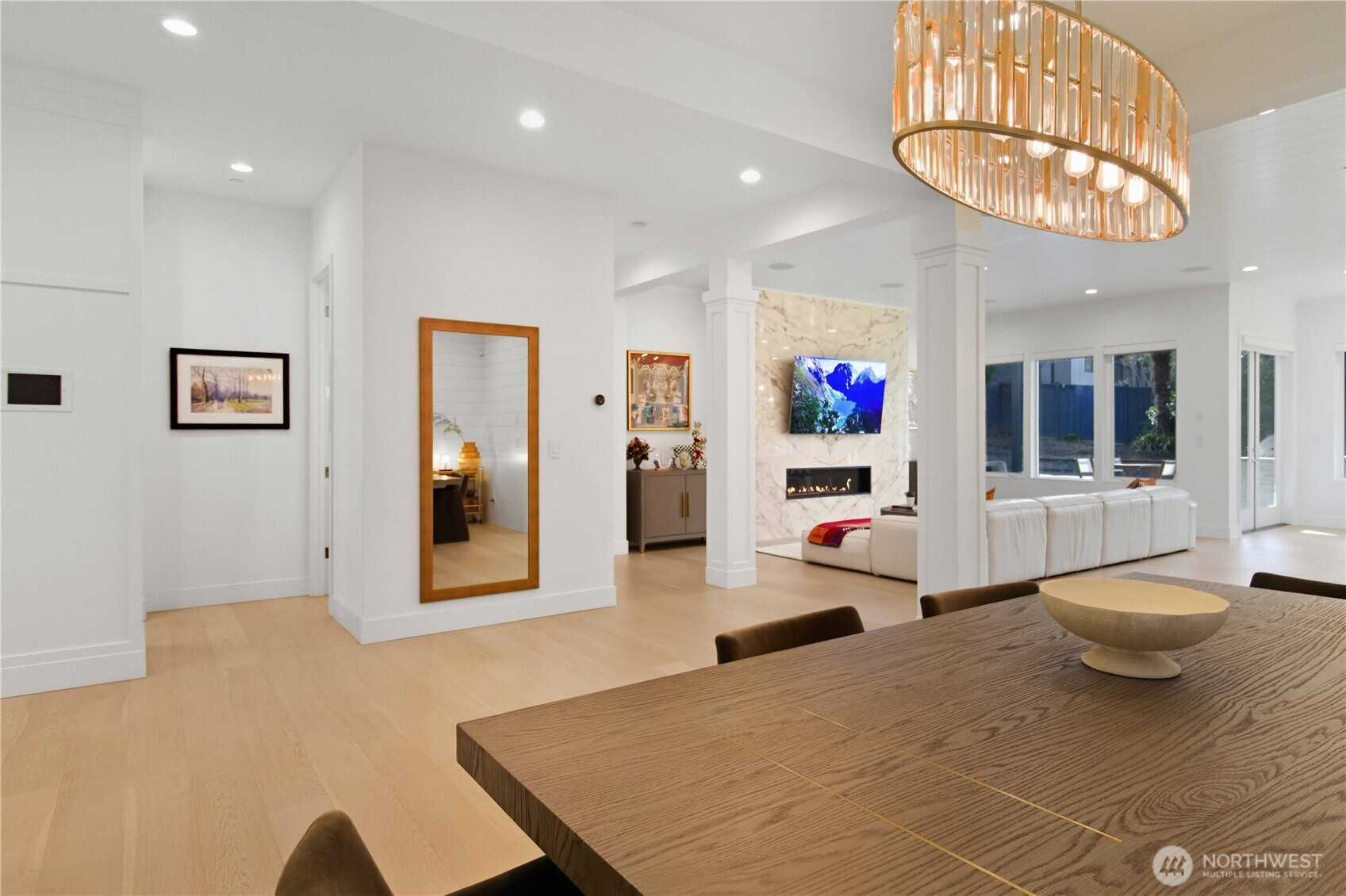 Nestled on a private driveway in a peaceful, tucked-away setting, this home offers exceptional privacy and surprising tranquility—shielded from nearby roadways for a truly serene living experience. This elegant 2019 Clyde Hill Northwest Contemporary by MN Custom Homes is where light, design, and livability converge. Sun-filled great room flows effortlessly to a chef’s kitchen, creating an inviting backdrop for both everyday moments and entertaining. Main-floor guest suite offers flexibility, while an expansive upstairs bonus room adapts to your lifestyle. The serene primary suite features a spa-inspired bath, complemented by three additional bedrooms. Over $300K in upgrades enhance every detail, including custom glass stair railings, an upgraded Ortal fireplace, Hunter Douglas automated shades, and full-home window treatments. Smart home with Green features, hardwood floors upstairs, and professionally landscaped grounds with turf and retaining wall. Located in coveted West Bellevue schools with easy access to SR-520 and downtown Bellevue.