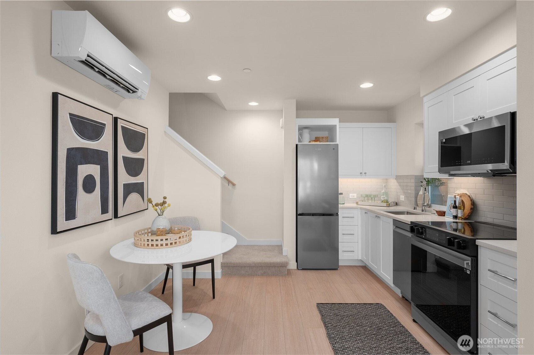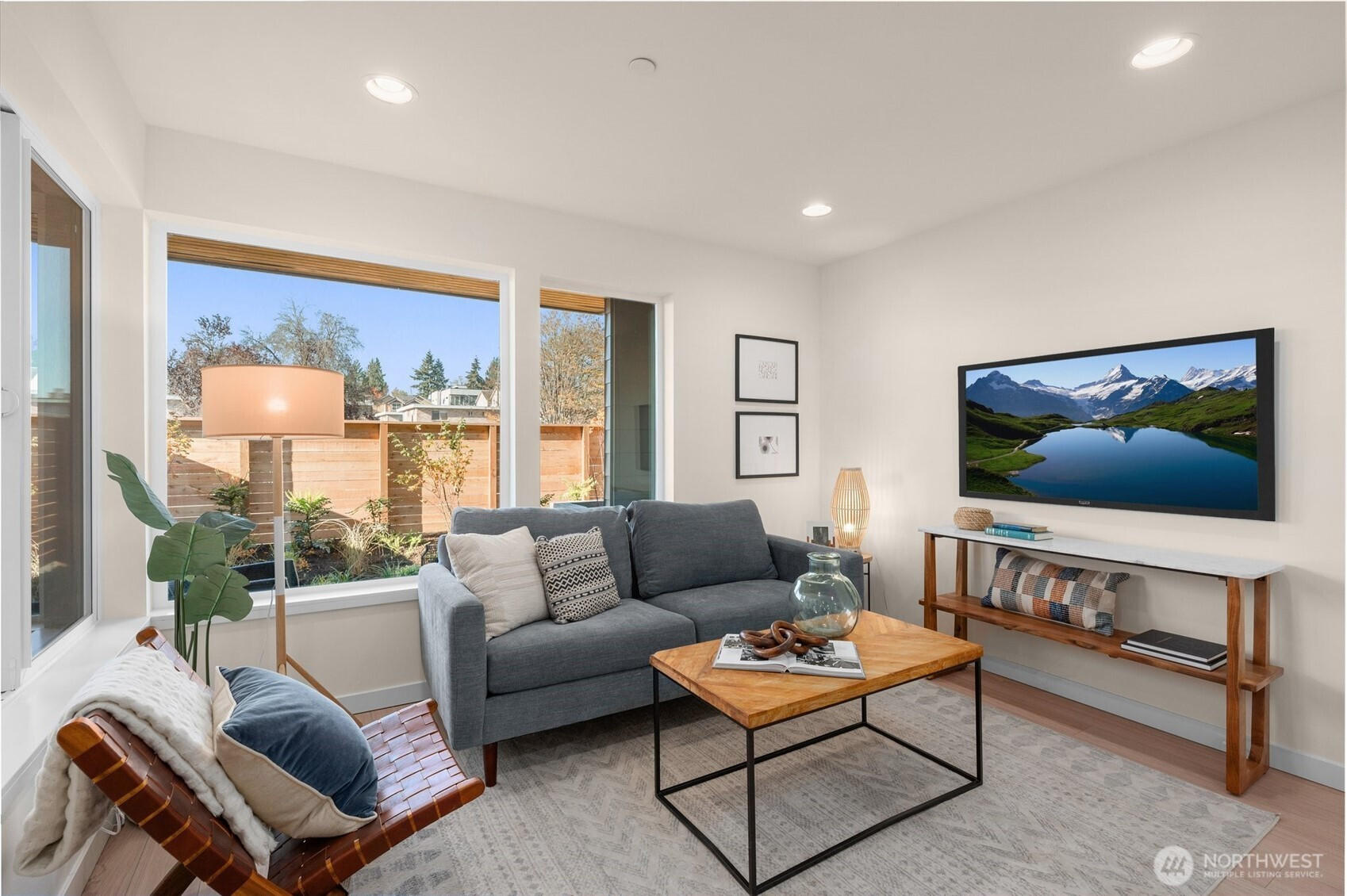 Thoughtfully designed as an alternative to traditional condo living, this two-bedroom residence balances modern efficiency with the freedom of real outdoor space. The entry level unfolds into an inviting open-concept living and dining area—bright, comfortable, and perfectly scaled for everyday life or casual entertaining. The kitchen anchors the space with premium appliances, clean-lined cabinetry, and smart storage that keeps everything within reach without clutter. From here, a standout feature waits just outside in the form of a covered patio and expansive garden space. Upstairs, the home continues to impress with well-proportioned bedrooms, including a rear bedroom with its own private balcony—an ideal retreat for fresh air, reading, or a quiet reset at the end of the day. Mini-split heating and cooling, an integrated ERV air filtration system, and energy-conscious construction support healthier, more efficient living year-round. Set in the heart of Licton Springs, you’re moments from Green Lake, neighborhood parks, schools, and convenient commute routes—close to everything, yet tucked into a calm residential pocket. This is a home that adapts with you, offering independence, comfort, and space to breathe in one of Seattle’s most connected communities. (Call to learn about rate incentives)***