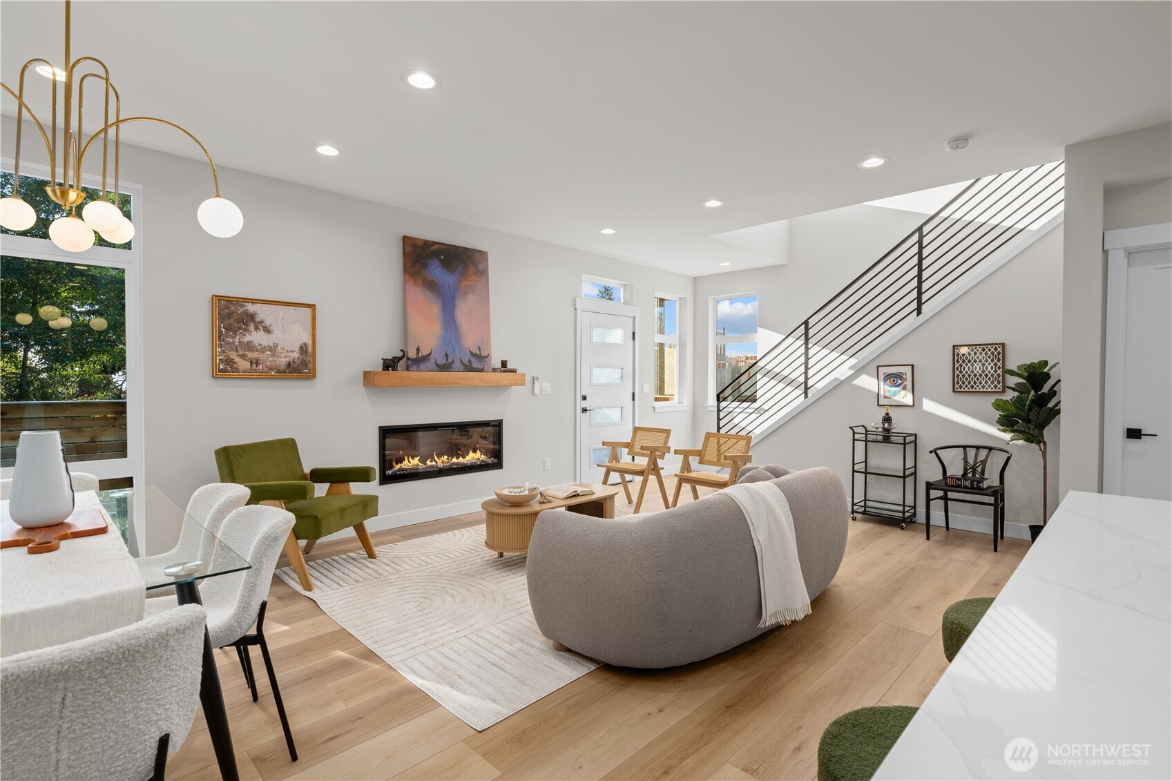 **BRAND NEW | Luxury Finishes!** This modern, stand-alone home features a bright, airy open-concept living and dining area on the main floor, complete with a convenient guest powder room. A sliding glass door opens to a private, fully fenced patio. The kitchen boasts a stunning full-height backsplash, pantry, ample counter space, soft-close cabinets, LED lighting, pop-up counter outlets, and an LG appliance package. Upstairs, you will find a luxurious primary suite with a walk-in closet, dual sinks, LED lighting, and heated tile flooring. An additional two bedrooms, a well-designed full bath, and a laundry room. Enjoy high-quality LVP flooring throughout, year-round comfort mini-split heating/cooling system, and dedicated EV-ready parking. Welcome home!