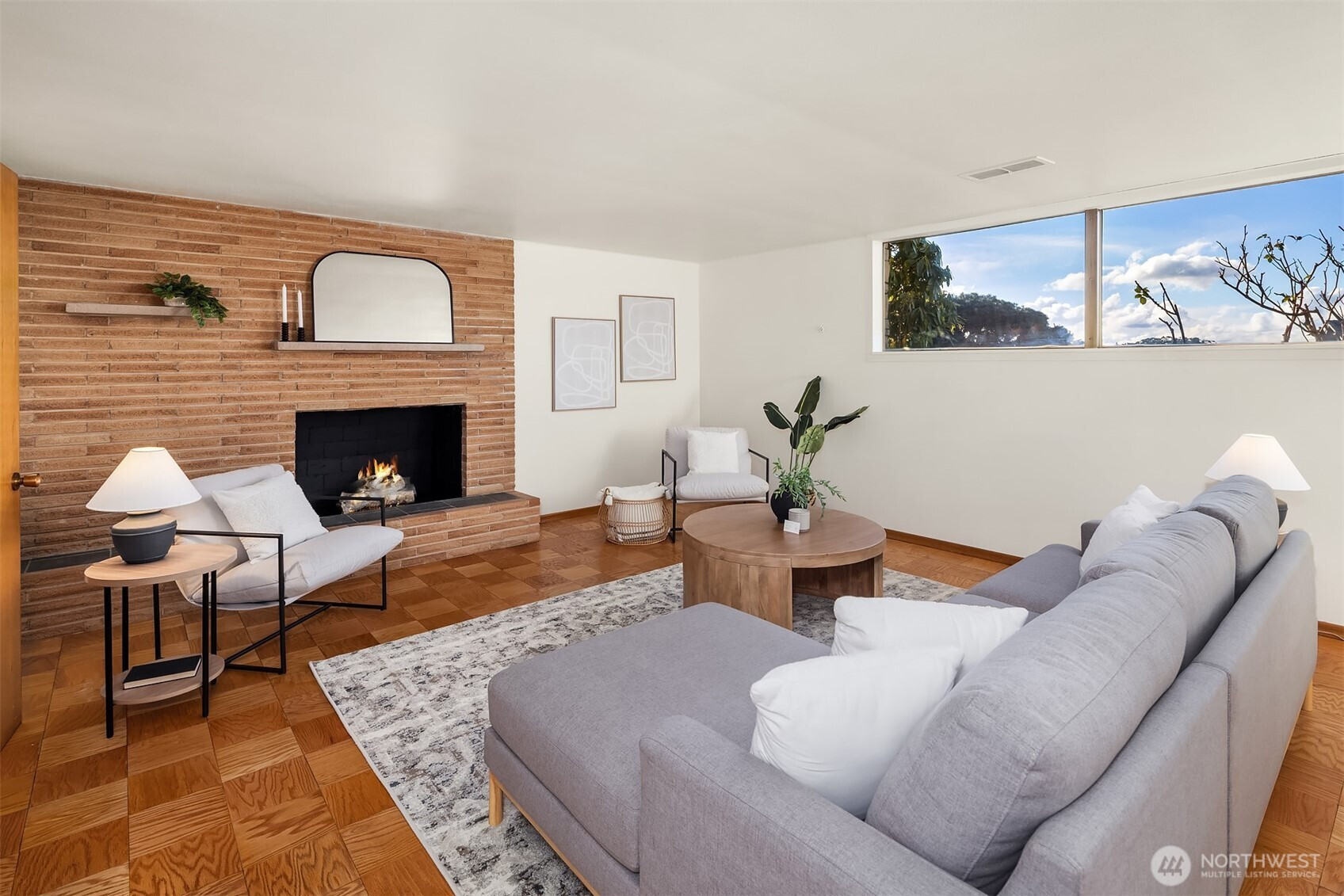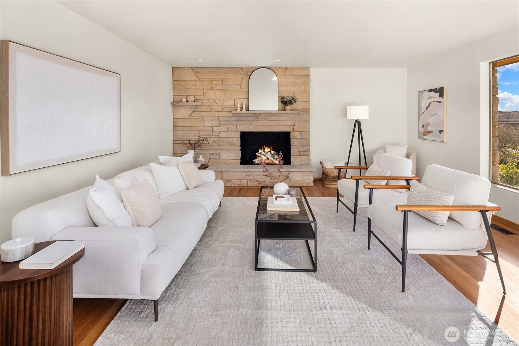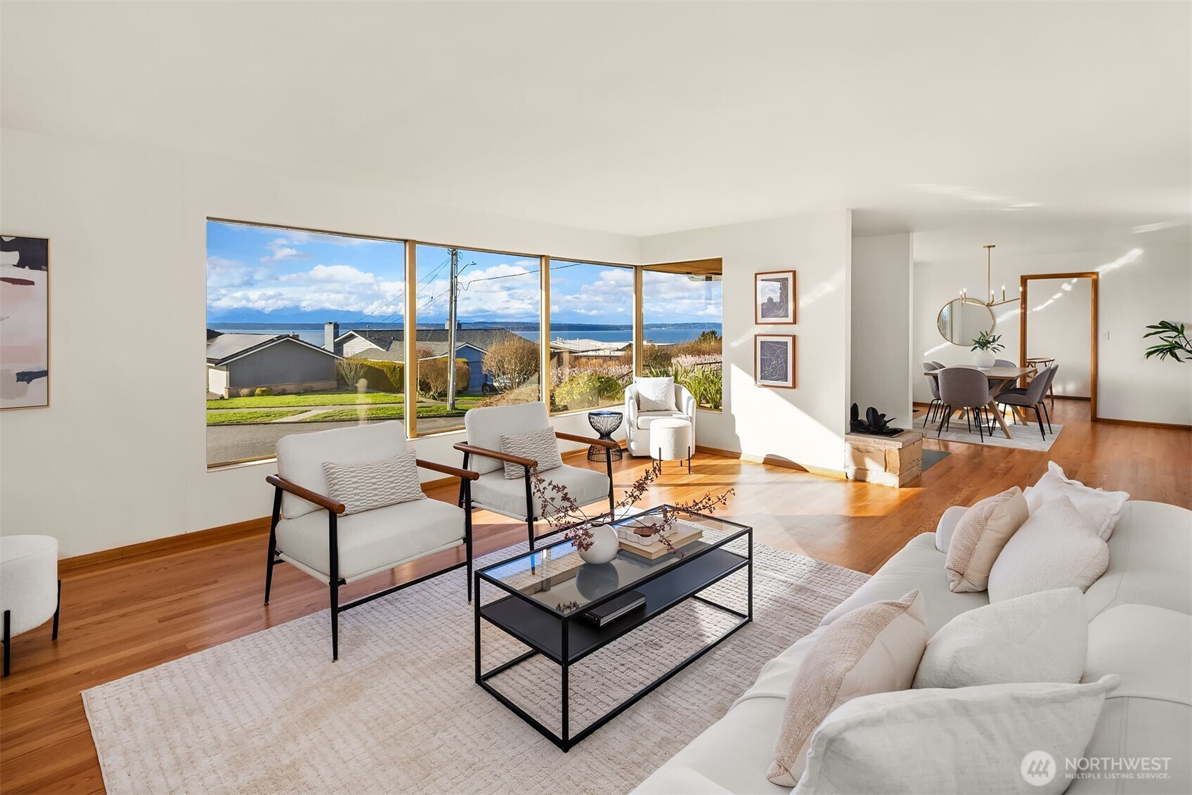 Welcome to Olympic Manor! Seattle's premier and best-preserved Mid-Century neighborhood! Walls of west-facing windows provide sweeping views of the Olympic Mountains, Puget Sound, ever-changing skies, and marine activity! The natural light and openness connect you to the outside world all year long! Entertaining here is a breeze - guests can enjoy sunsets on the spacious covered slate front deck or gather in the back yard retreat. Thoughtful design offers desirable 3-bed/1.75-bath on the main floor, gorgeous period details, convenient laundry off kitchen, loads of closets and storage, plus large basement w/2 additional BR's, family room, shop space & access to huge 2-car garage. This home is super solid, super clean & built to last! Updates - int/ext paint, electrical panel, refinished hardwoods, assorted lighting & more! You’ll love the festive community spirit & involvement. Superior location in desirable NW schools cluster, with both elementary and middle schools just blocks away. Close to parks, the beach, wonderful markets and downtown Ballard. What an amazing place to call home!