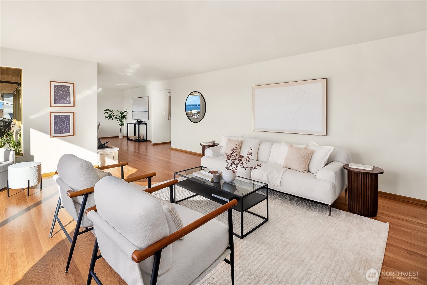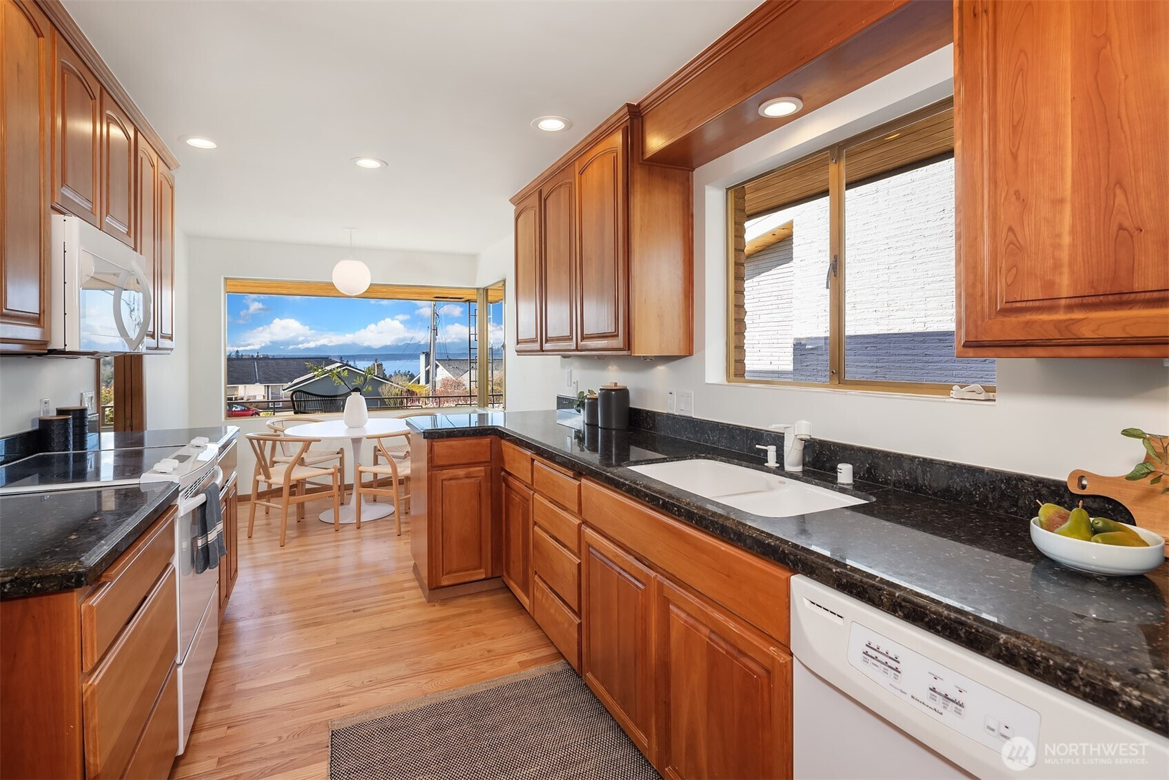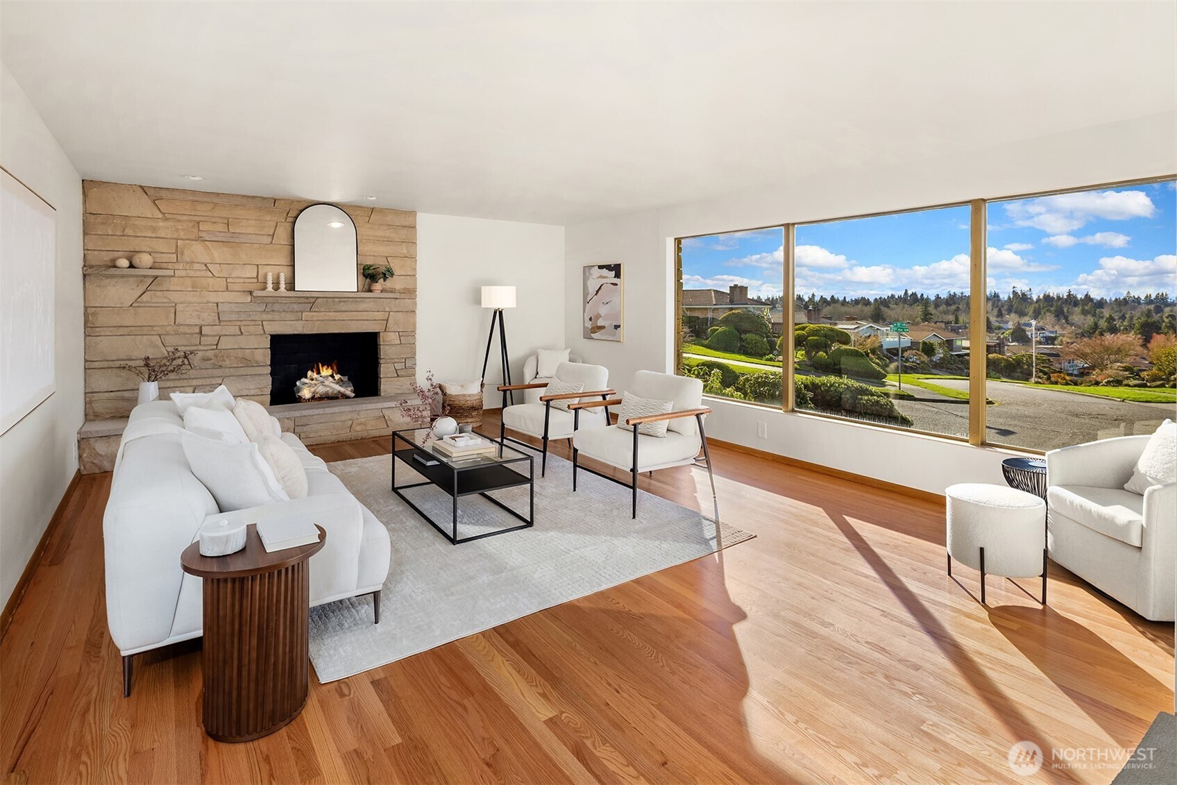 Welcome to Olympic Manor! Seattle's premier and best-preserved Mid-Century neighborhood! Walls of west-facing windows provide sweeping views of the Olympic Mountains, Puget Sound, ever-changing skies, and marine activity! The natural light and openness connect you to the outside world all year long! Entertaining here is a breeze - guests can enjoy sunsets on the spacious covered slate front deck or gather in the back yard retreat. Thoughtful design offers desirable 3-bed/1.75-bath on the main floor, gorgeous period details, convenient laundry off kitchen, loads of closets and storage, plus large basement w/2 additional BR's, family room, shop space & access to huge 2-car garage. This home is super solid, super clean & built to last! Updates - int/ext paint, electrical panel, refinished hardwoods, assorted lighting & more! You’ll love the festive community spirit & involvement. Superior location in desirable NW schools cluster, with both elementary and middle schools just blocks away. Close to parks, the beach, wonderful markets and downtown Ballard. What an amazing place to call home!