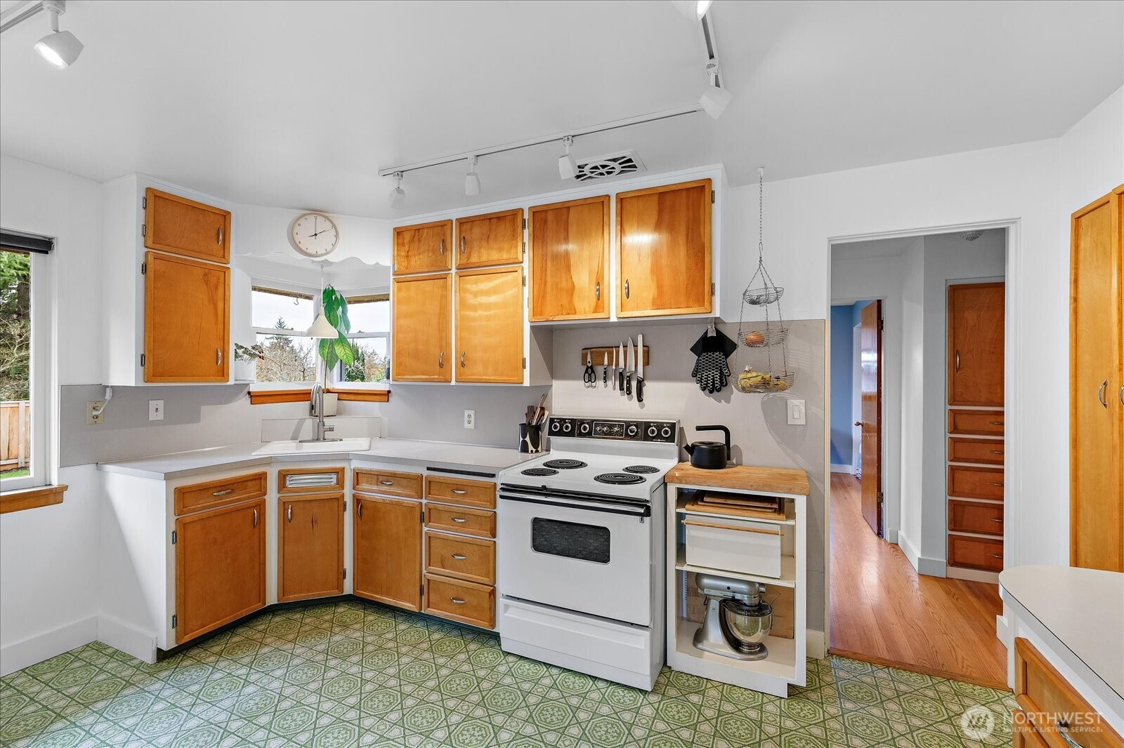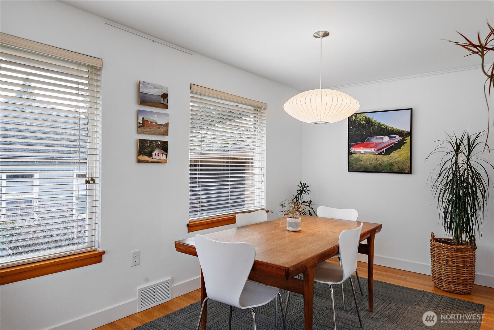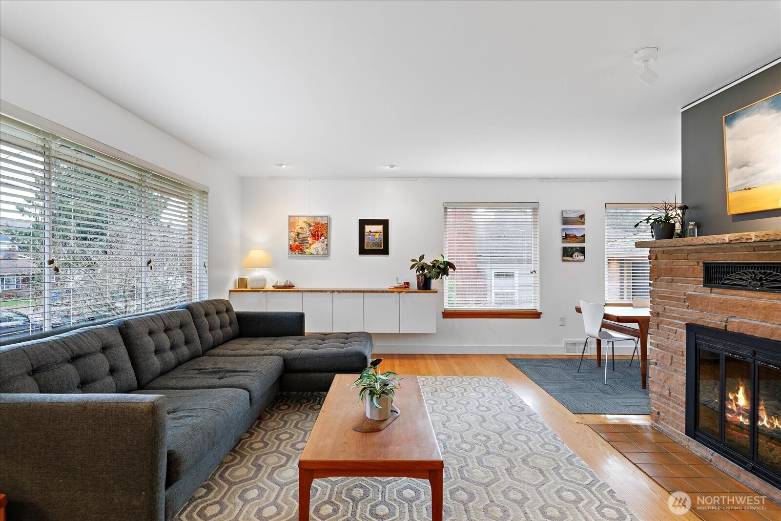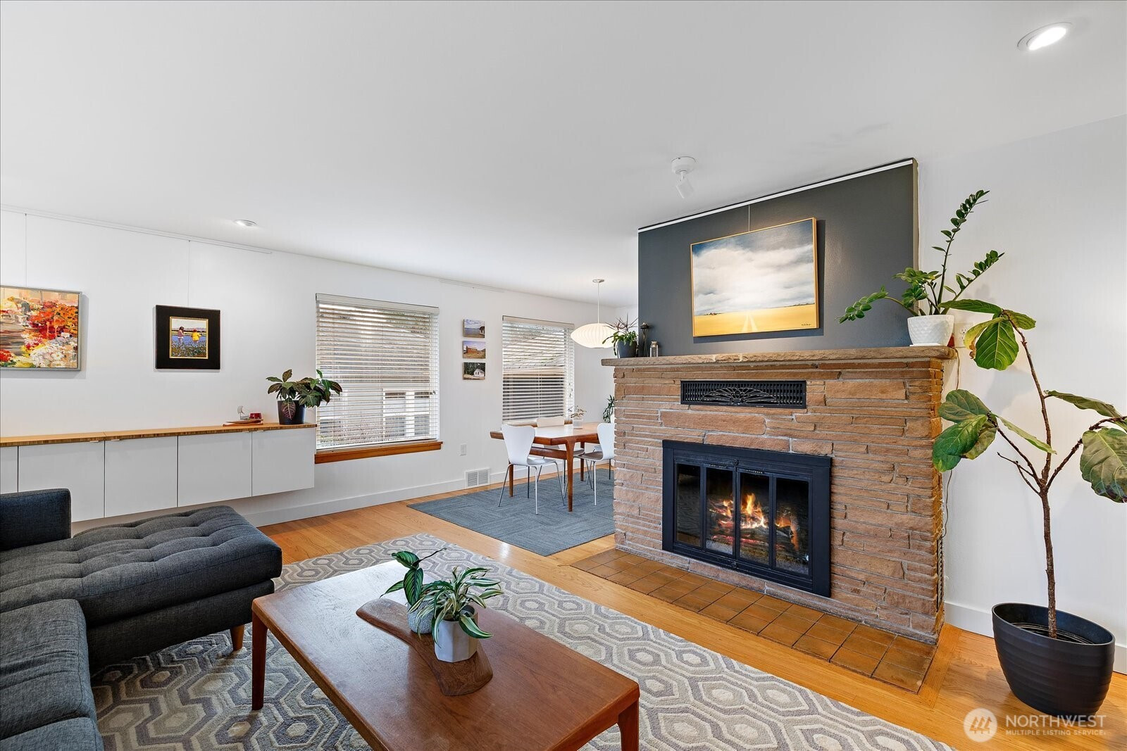 Second time ever on the market! This fabulous, well-maintained 4 bed 2 bath mid-century home on a level 6000SF lot has a great circular floor plan, newly finished basement, and great taste! The inviting entry area flows into a large living room w/ gas fireplace and dining rm. The spacious kitchen, built-ins & full bath retain original charm, while 2 bedrooms round out the main floor. Downstairs you’ll find a laundry closet wi/utility sink, flex space, family room with 2nd gas fireplace and custom built-in bookcase, a 2nd bathroom and 2 more bedrooms - all with radiant floor heat. The large backyard is great for entertaining, with a new storage shed, and the garage is wired for level 2 EV charging. Take advantage of a great time to purchase!