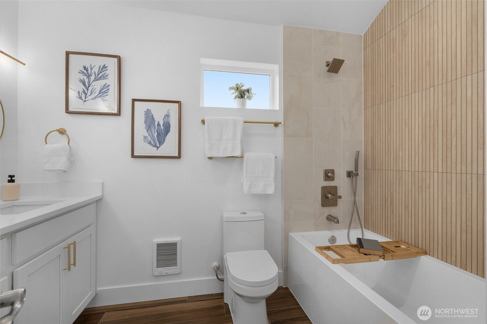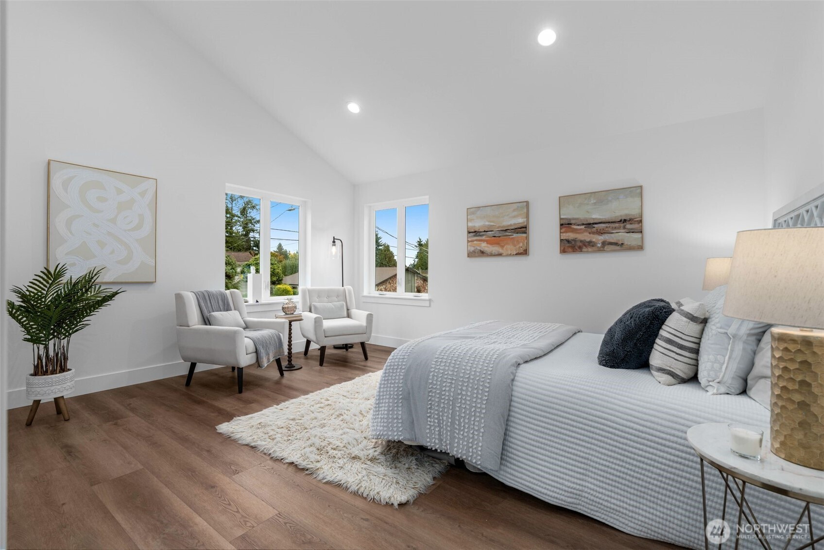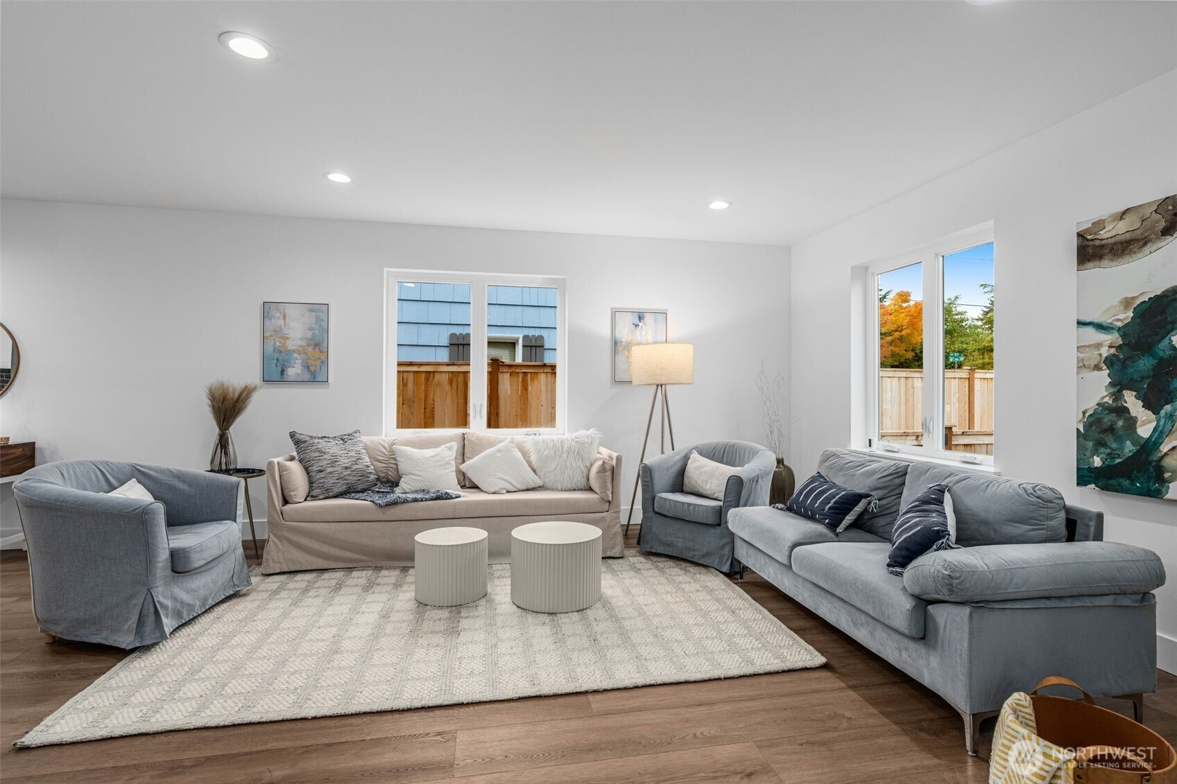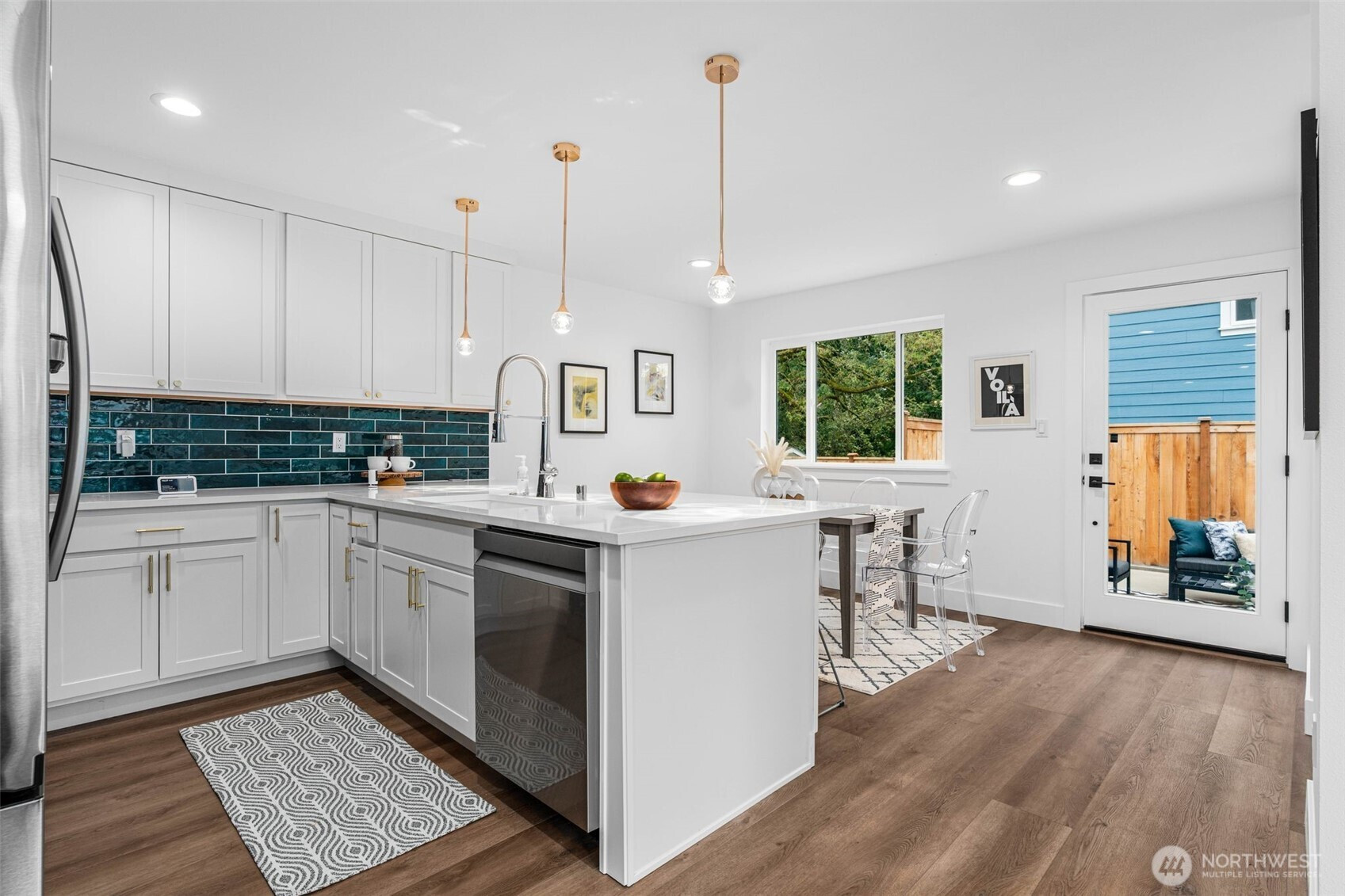 Discover this stunning 3BR, 2.25BA home featuring an open-concept kitchen with a stylish horseshoe island, perfect for entertaining. Vaulted ceilings add elegance, and mini-splits in each bedroom ensure year-round comfort. The primary bathroom features heated floors for a touch of luxury. Enjoy a fully fenced, generous front yard with off-street parking that can accommodate up to three midsize cars. Ideally located near a top-rated school (98% math, 97% reading) and just blocks from a Kiddie Academy. The rear unit (998 sq ft) sold for $775,000; 2 of 3 new construction homes remain. Prime location—don’t miss out!