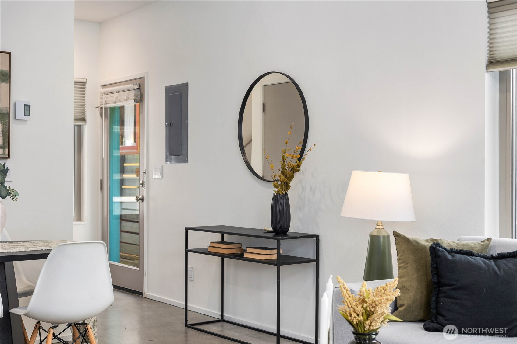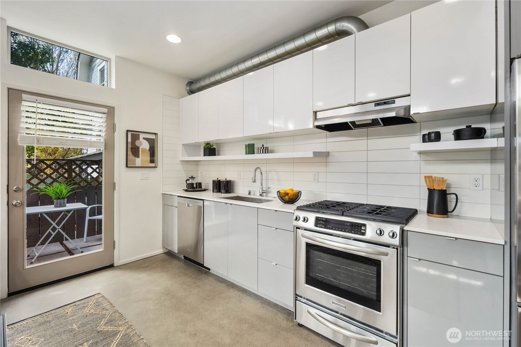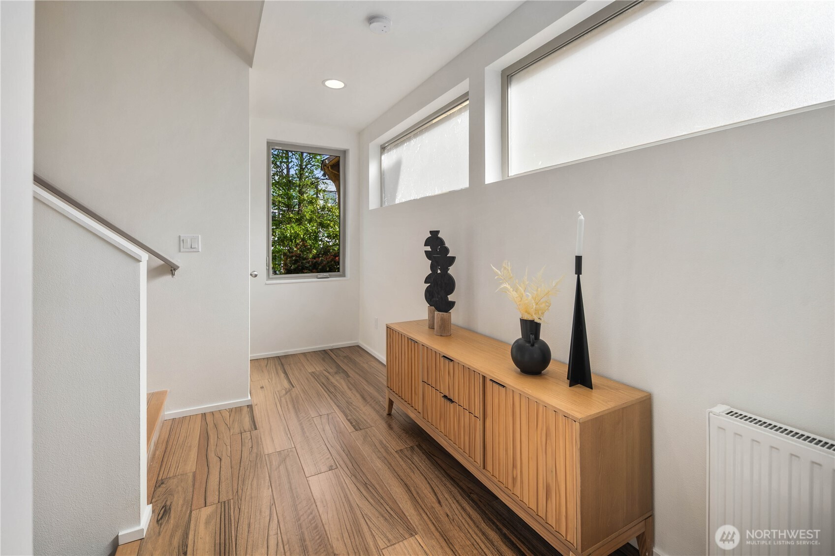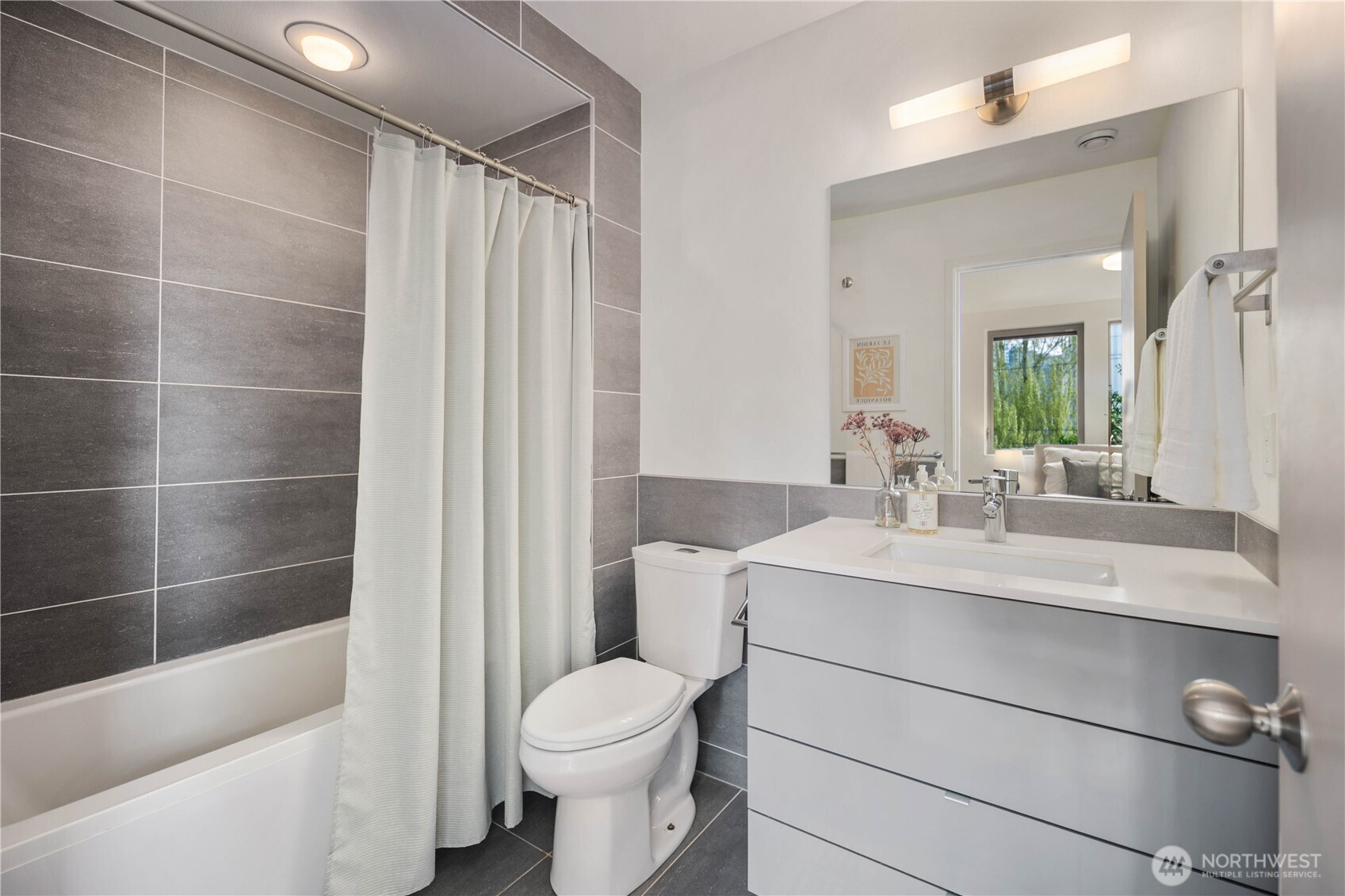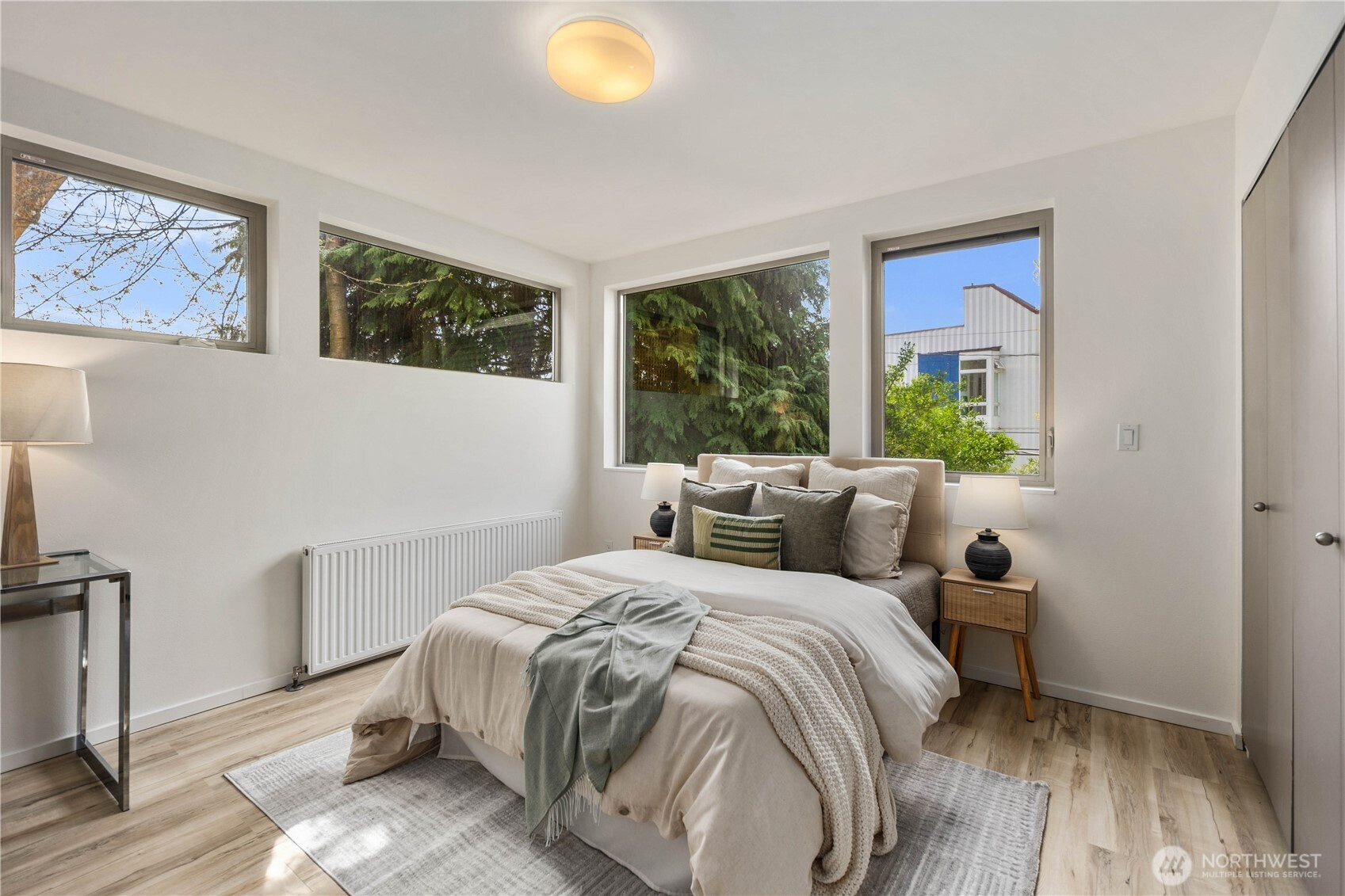 Tucked within a quiet courtyard, this thoughtfully designed 2-bedroom townhome offers a rare blend of peaceful privacy and exceptional urban access. Just moments from Seattle University and nearby restaurants, coffee shops, and boutiques, it delivers a true walkable city lifestyle with a Walk Score of 96. Built to exceed 4-Star Built Green standards, the home features a modern aesthetic with clean lines, open-concept living, and fresh interior/exterior paint for a move-in-ready finish. Expansive windows fill the space with natural light, creating a bright and welcoming atmosphere throughout. The flexible layout includes a bedroom and bathroom on each level, ideal for guests, roommates, or a dedicated home office. Comfort and efficiency are prioritized with radiant hydronic heating, HRV system, and upgraded insulation for year-round climate control and reduced energy use. The main level flows to a private patio off the kitchen—perfect for morning coffee or outdoor dining—while the rooftop deck offers city views and an inviting space for relaxing or entertaining. The primary suite provides a quiet retreat with a walk-in closet and well-appointed bath featuring a walk-in shower. Additional highlights include off-street parking, no HOA, and short-term rental potential, offering flexibility for both homeowners and investors. Pre-inspected for peace of mind, this low-maintenance home presents a rare opportunity in the heart of Seattle.