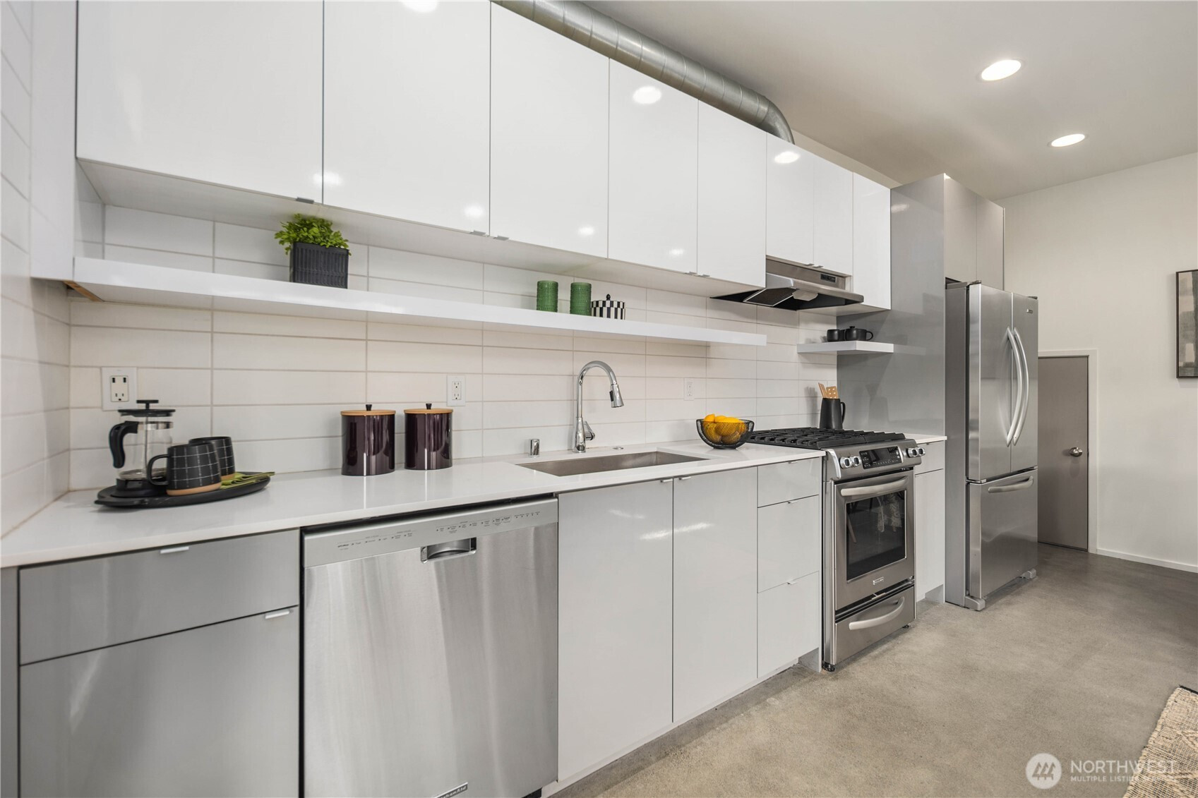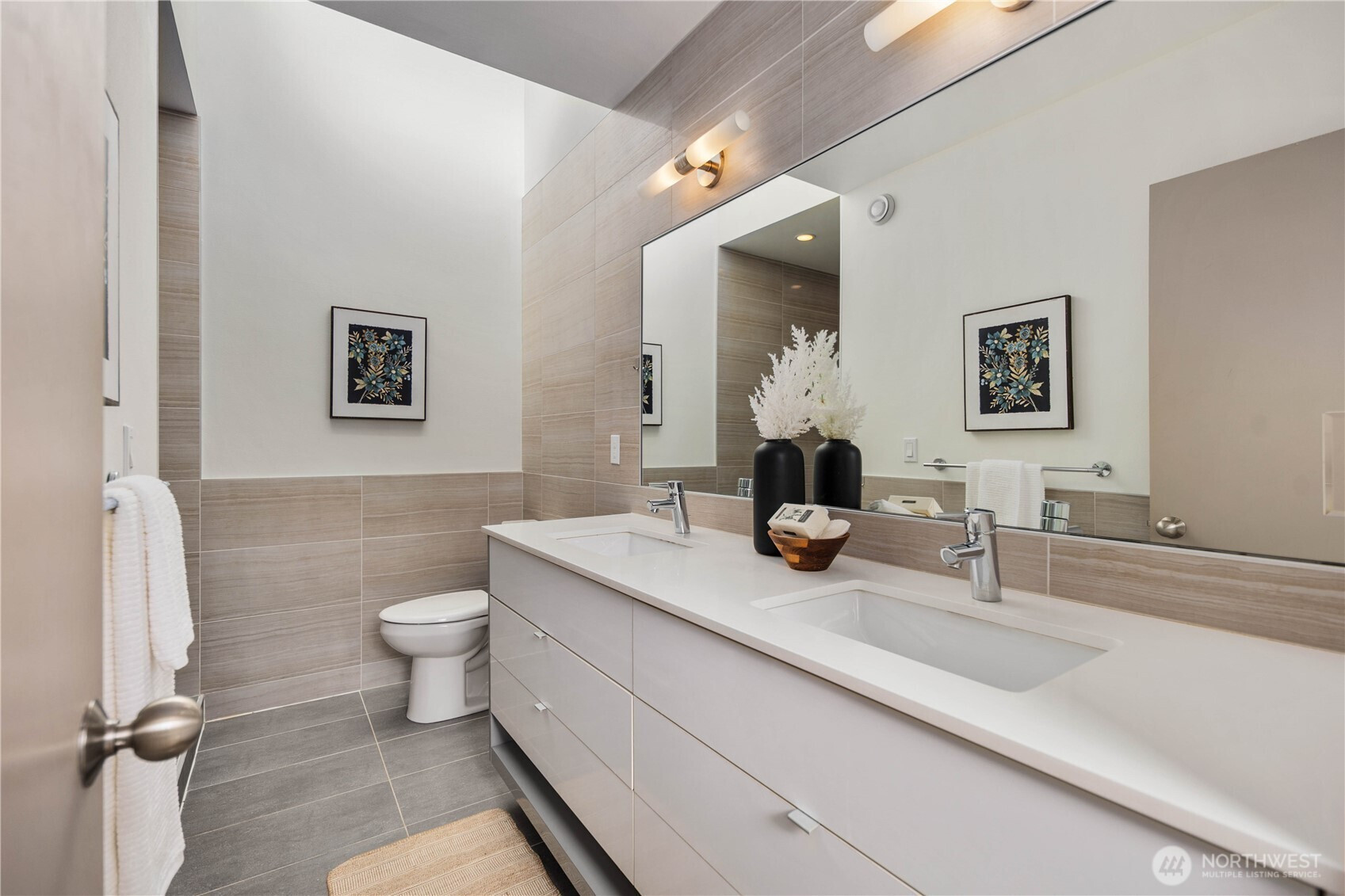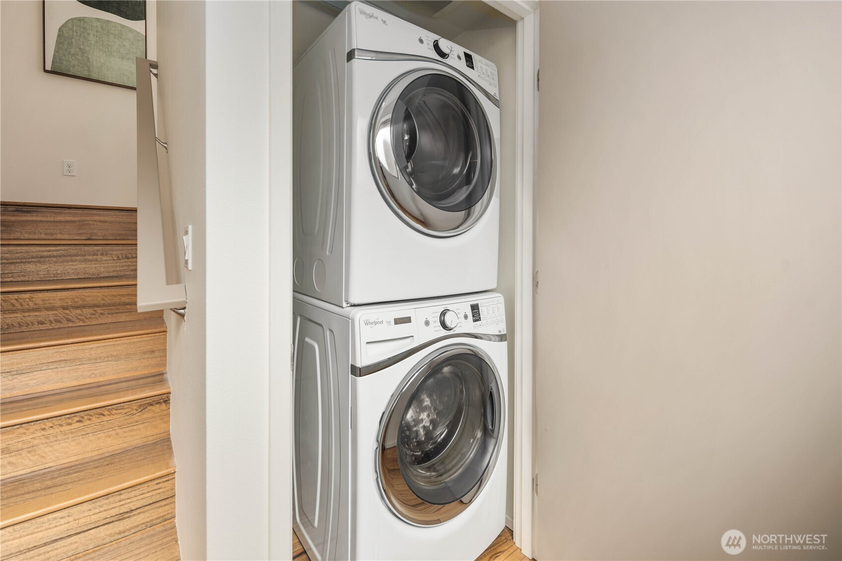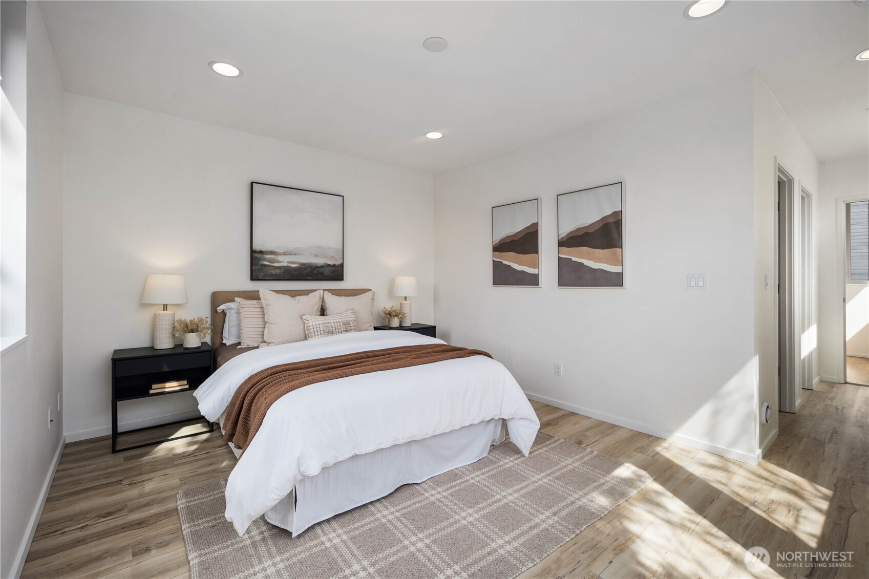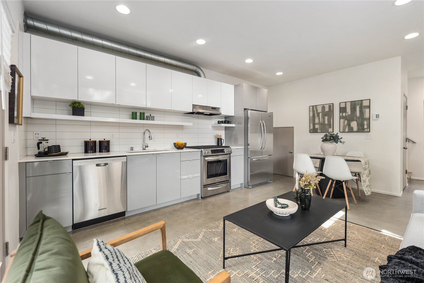 Tucked within a quiet courtyard, this thoughtfully designed 2-bedroom townhome offers a rare blend of peaceful privacy and exceptional urban access. Just moments from Seattle University and nearby restaurants, coffee shops, and boutiques, it delivers a true walkable city lifestyle with a Walk Score of 96. Built to exceed 4-Star Built Green standards, the home features a modern aesthetic with clean lines, open-concept living, and fresh interior/exterior paint for a move-in-ready finish. Expansive windows fill the space with natural light, creating a bright and welcoming atmosphere throughout. The flexible layout includes a bedroom and bathroom on each level, ideal for guests, roommates, or a dedicated home office. Comfort and efficiency are prioritized with radiant hydronic heating, HRV system, and upgraded insulation for year-round climate control and reduced energy use. The main level flows to a private patio off the kitchen—perfect for morning coffee or outdoor dining—while the rooftop deck offers city views and an inviting space for relaxing or entertaining. The primary suite provides a quiet retreat with a walk-in closet and well-appointed bath featuring a walk-in shower. Additional highlights include off-street parking, no HOA, and short-term rental potential, offering flexibility for both homeowners and investors. Pre-inspected for peace of mind, this low-maintenance home presents a rare opportunity in the heart of Seattle.