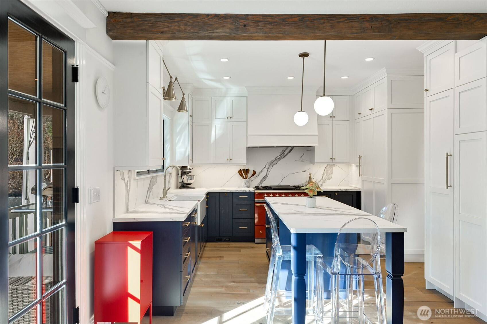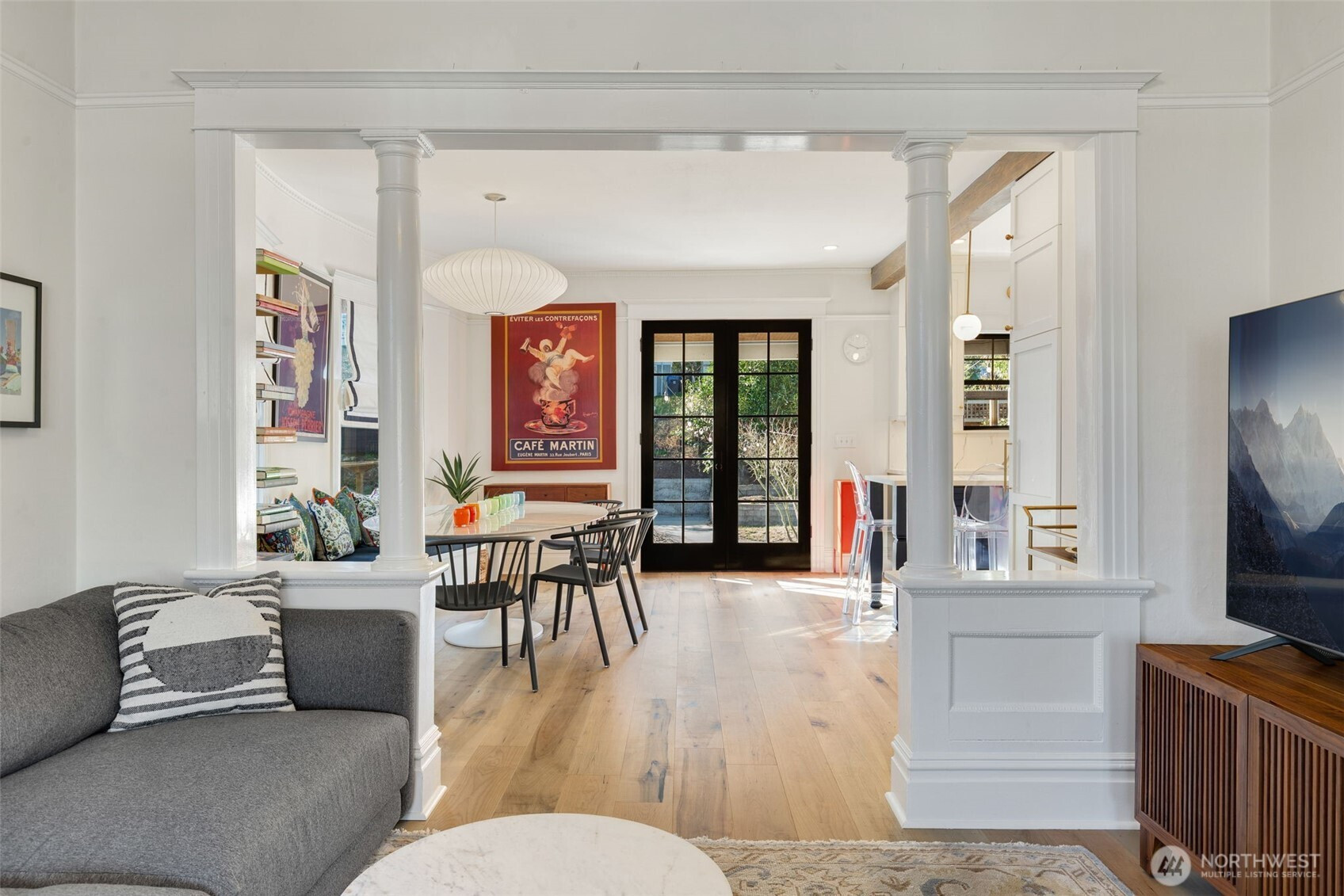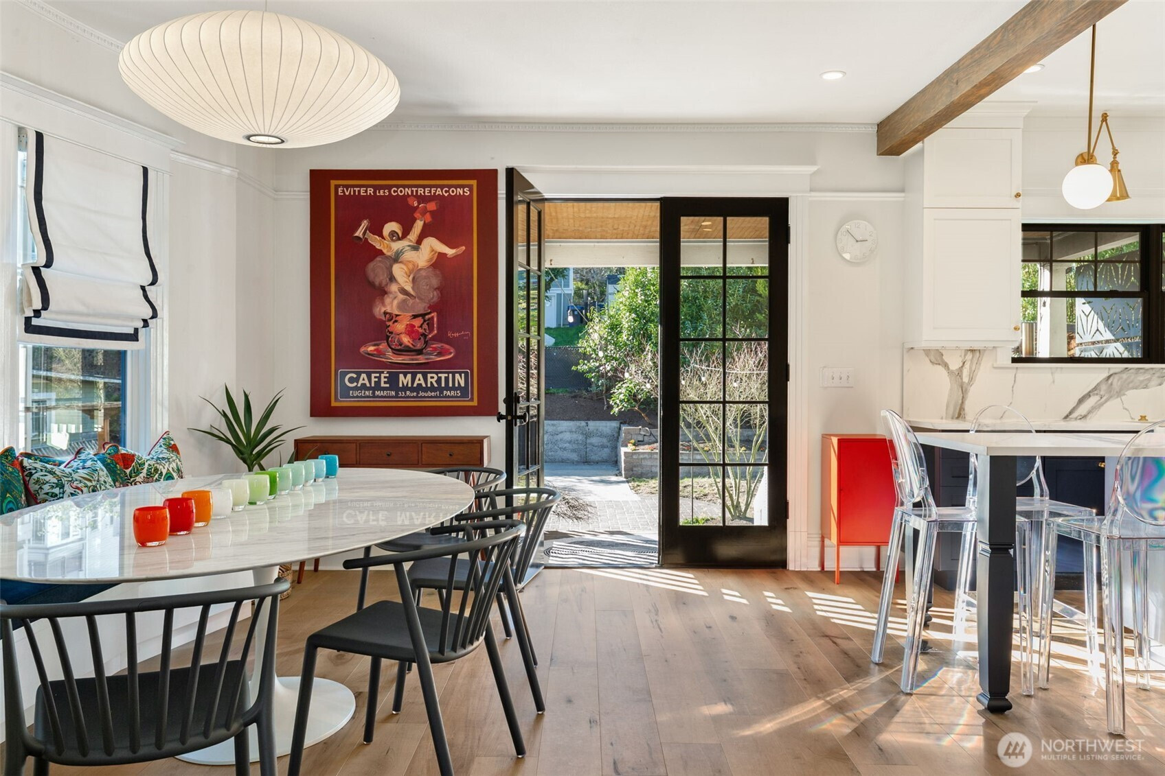 Enjoy the finer things in life. Exquisitely renovated by CRD Design Build in 2021, this exceptional Foursquare in Cherry Hill is a masterclass in timeless design and modern luxury. Rich period millwork sets an elegant tone, while tall ceilings and warm maple floors carry you through the main level. The dining room delights with a Herman Miller pendant and a bay window featuring a custom built-in storage bench. The showstopping kitchen offers porcelain counters, an eat-in bar, custom Belmont cabinetry, Waterstone faucets, and a suite of luxury appliances, including a professional-grade Lacanche range and premium Liebherr refrigerator and freezer. Glass French doors open to a covered back deck with a heat lamp, overlooking a private patio, gardens, and play space. Upstairs, three bedrooms and two baths include a serene primary suite with a bay window, built-in closet organizers, and an impeccably finished ensuite bath with subway tile and hex mosaic heated floors. A flexible fourth bedroom on the top level is equally suited as a home office or workout room. A ducted heat pump provides efficient forced-air heating and cooling, complemented by updated plumbing and electrical systems. An unfinished basement offers generous storage, laundry, and outdoor access. The home is just steps from PCC, local cafés, fitness studios, Chuck’s Hop Shop, and the dining and retail at 23rd and Union, plus easy access to Swedish Cherry Hill, Seattle University, Madison Valley, and Capitol Hill.