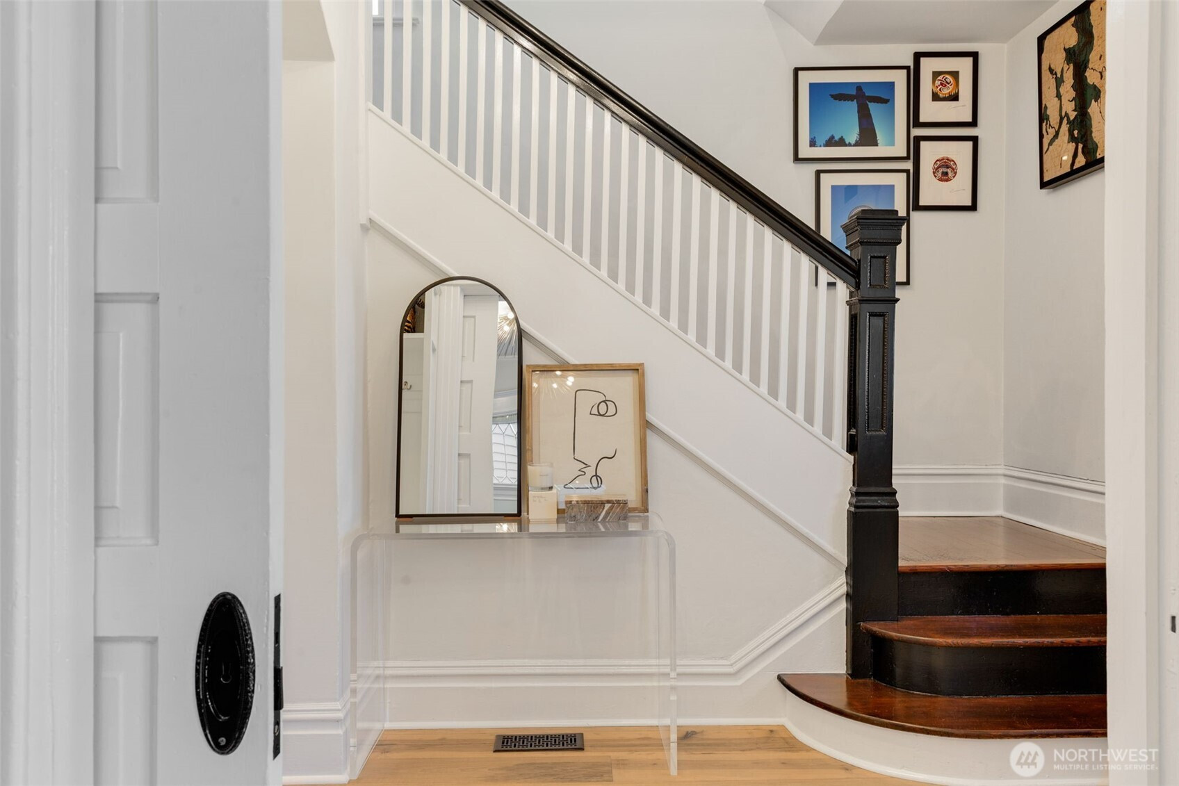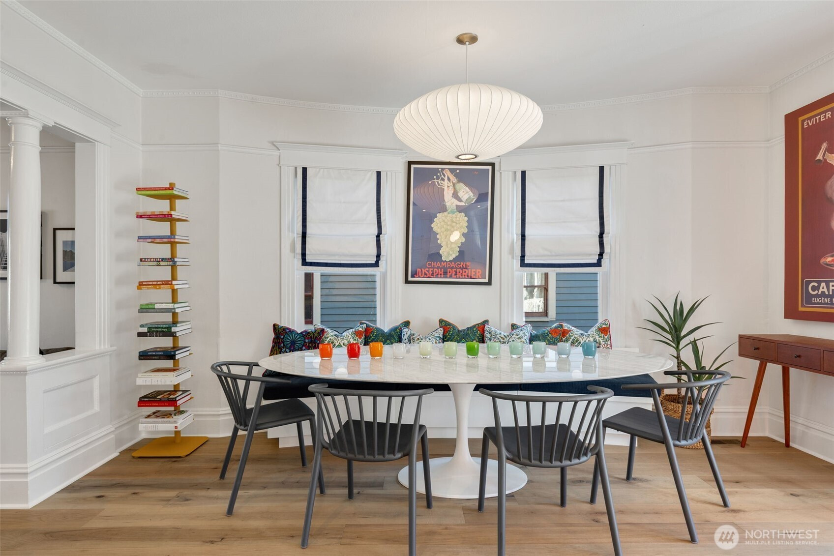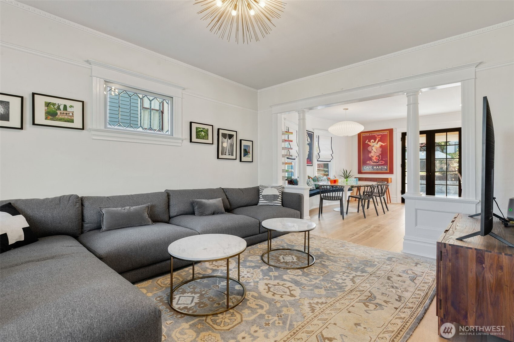 Enjoy the finer things in life. Exquisitely renovated by CRD Design Build in 2021, this exceptional Foursquare in Cherry Hill is a masterclass in timeless design and modern luxury. Rich period millwork sets an elegant tone, while tall ceilings and warm maple floors carry you through the main level. The dining room delights with a Herman Miller pendant and a bay window featuring a custom built-in storage bench. The showstopping kitchen offers porcelain counters, an eat-in bar, custom Belmont cabinetry, Waterstone faucets, and a suite of luxury appliances, including a professional-grade Lacanche range and premium Liebherr refrigerator and freezer. Glass French doors open to a covered back deck with a heat lamp, overlooking a private patio, gardens, and play space. Upstairs, three bedrooms and two baths include a serene primary suite with a bay window, built-in closet organizers, and an impeccably finished ensuite bath with subway tile and hex mosaic heated floors. A flexible fourth bedroom on the top level is equally suited as a home office or workout room. A ducted heat pump provides efficient forced-air heating and cooling, complemented by updated plumbing and electrical systems. An unfinished basement offers generous storage, laundry, and outdoor access. The home is just steps from PCC, local cafés, fitness studios, Chuck’s Hop Shop, and the dining and retail at 23rd and Union, plus easy access to Swedish Cherry Hill, Seattle University, Madison Valley, and Capitol Hill.