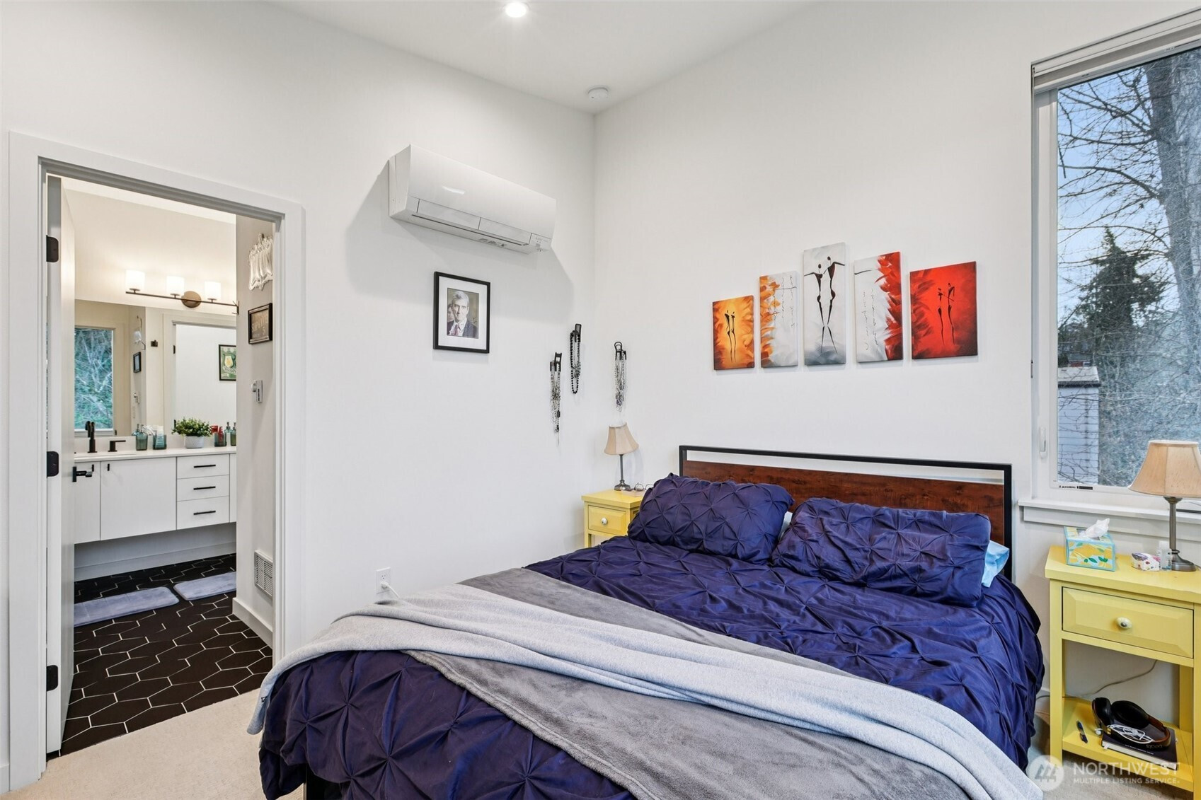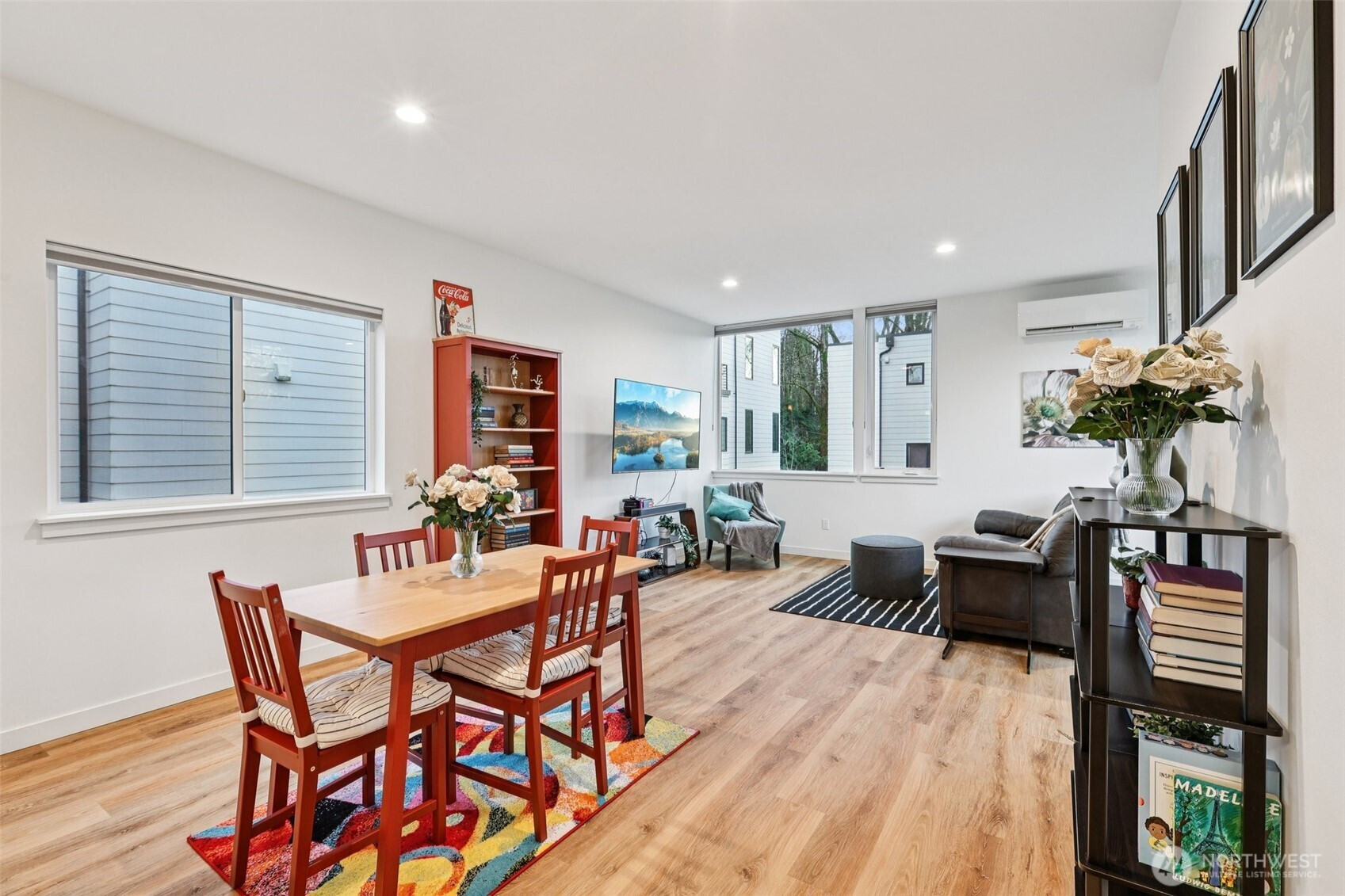 Welcome to this move in ready modern home located in a cozy six unit community. Designed with clean lines and thoughtful finishes, the kitchen features quartz countertops and a spacious island ideal for cooking and entertaining. The bright and open living area is filled with natural light from expansive windows throughout. The primary suite offers a relaxing retreat with designer tile finishes, while the exceptionally large bedrooms provide flexibility for guests or a home office. Enjoy a private deck just off the kitchen, efficient ductless heating and air conditioning, and a rare attached garage. Minutes from Lake Washington, transit, light rail, shopping, and recreation. No HOA dues. Truly a convenient place to call home.
