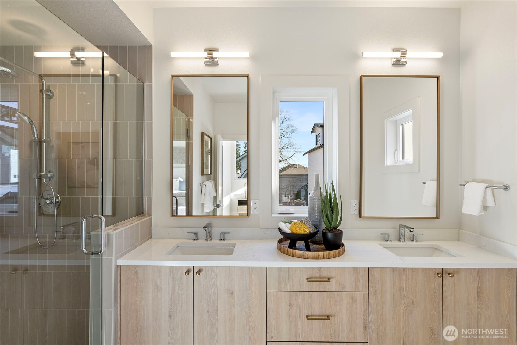 Discover elevated living in this stunning new construction home by Jake'sD, perfectly situated on a dead-end street in Rose Hill. Designed with both sophistication and comfort in mind, this 3-bedroom, 2.75-bath residence offers a seamless open-concept layout ideal for modern lifestyles. Showcasing distinctive Northwest Contemporary design, the home is appointed with refined finishes and expansive windows that invite abundant natural light throughout. The main level is anchored by a chef-inspired kitchen featuring a generous island and high-end appliances, creating a natural gathering space for entertaining and everyday living. Upstairs, the spacious primary suite offers a serene escape, complete with a walk-in closet and a spa-like bath designed for relaxation. One more floor up, there is a great sized bonus room, perfect for hanging out or working out, that also includes a half-bathroom. Outside, enjoy a beautiful fully fenced yard with great landscaping. Home comes equipped with solar panels. Just minutes from downtown Kirkland’s shops, dining, and waterfront, this exceptional home has it all and also includes a one-car garage equipped with EV charging!