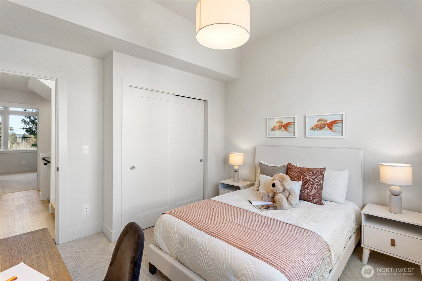 Experience refined modern living in this beautifully crafted new home by Jake’sD, tucked away on a quiet dead-end street in Rose Hill. Thoughtfully designed to balance style and everyday comfort, this 3-bedroom, 2.75-bath residence features a bright, open layout tailored to today’s lifestyle. Striking Northwest Contemporary architecture is complemented by upscale finishes and oversized windows that flood the home with natural light. The main level centers around a gourmet kitchen with a large island and premium appliances—an inviting hub for gatherings or casual nights in. Upstairs, the generous primary suite serves as a private retreat, complete with a walk-in closet and a spa-inspired bath. The top floor offers a versatile bonus room with its own half bath—ideal for a media space, home office, or fitness area. Step outside to a fully fenced yard with thoughtfully designed landscaping, perfect for relaxing or entertaining. Solar panels add energy efficiency, while the one-car garage with EV charging and an additional parking space provide everyday convenience. Located just minutes from downtown Kirkland’s vibrant shops, restaurants, and waterfront, this exceptional home truly checks every box.