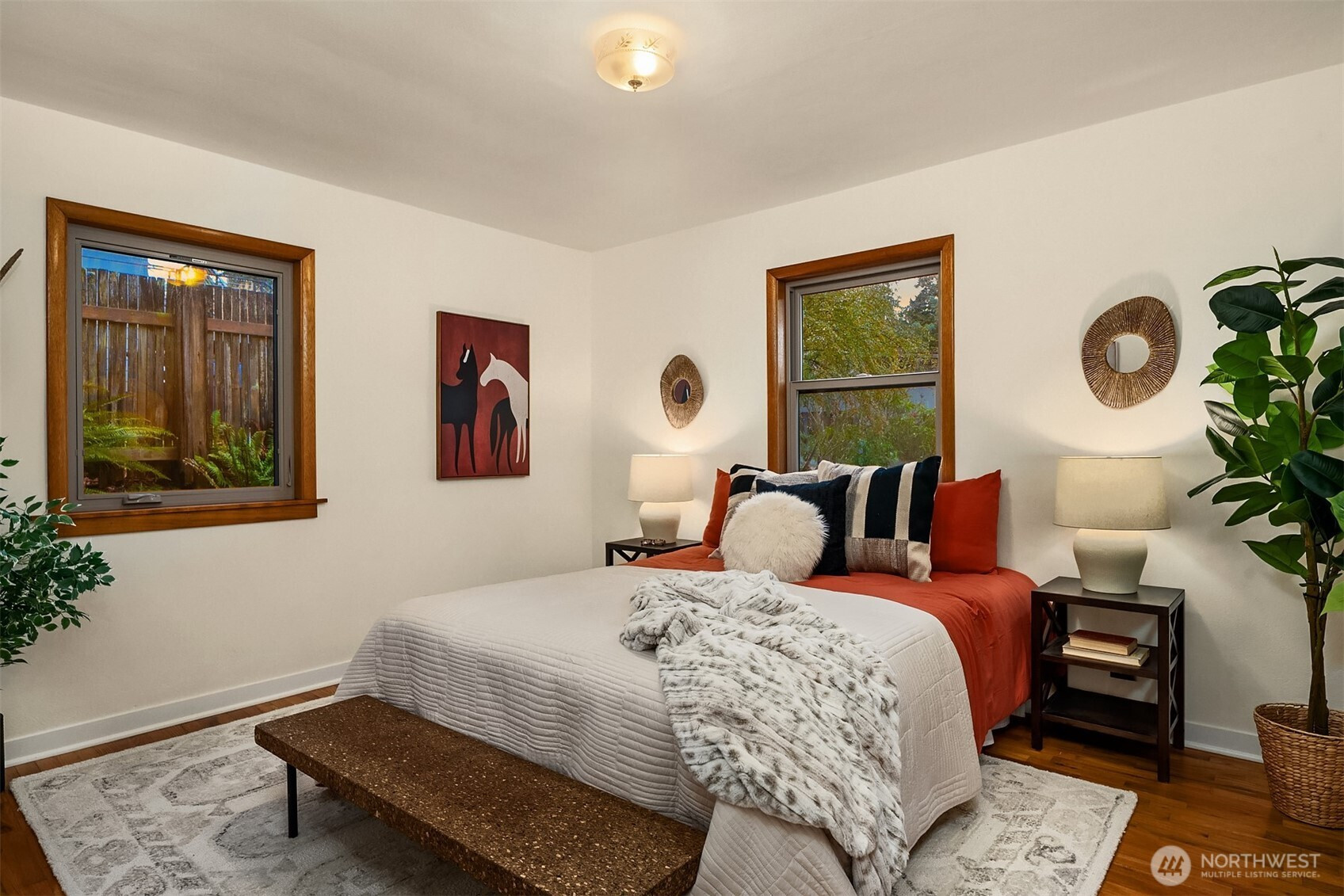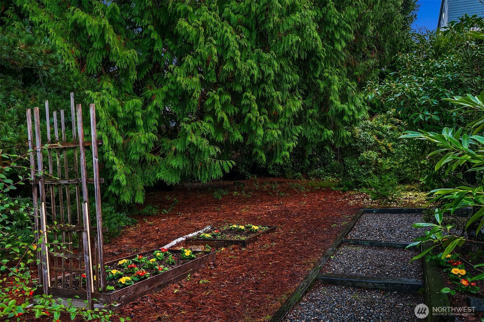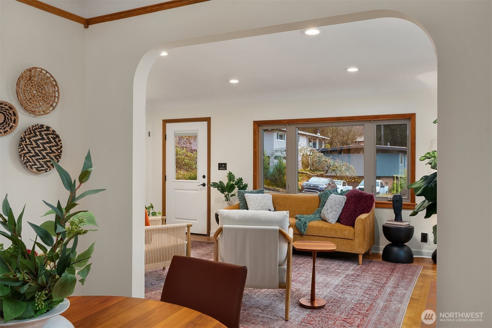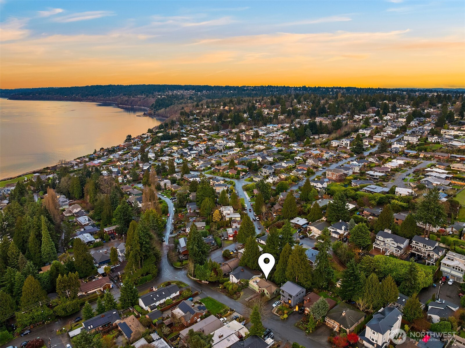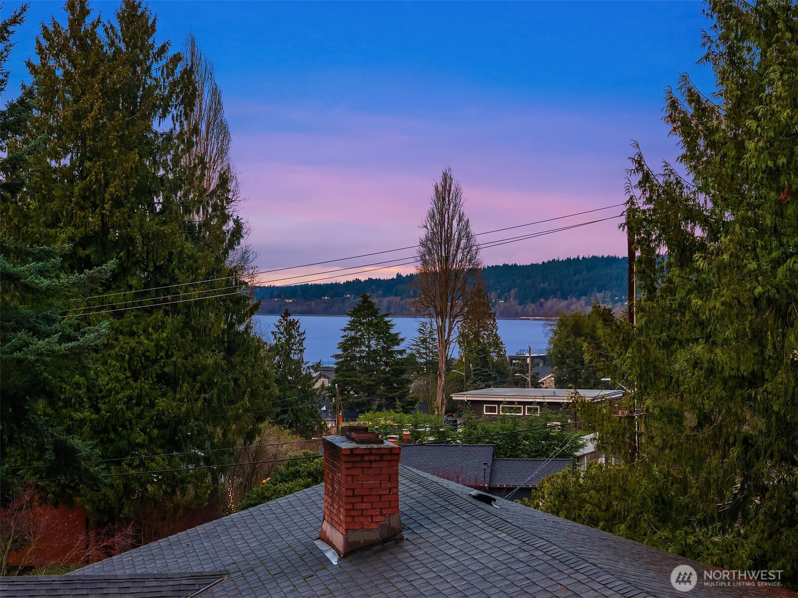 North Beach Gem with 3 BD, 1 BA. Enter the light filled living area with coved ceilings, beautiful hardwood floors, and French doors leading to large deck with amazing territorial and Sound views. Formal dining room off updated kitchen with induction Miele stove, dishwasher, Liebherr refrigerator, custom fir cabinets. Updated systems include: heat pump, H2O heater, electrical, plumbing, windows, doors, roof. Extra-large heated 2 car garage with shop space and partially finished basement with separate entrance for projects or finish for instant equity. Front load LG washer and dryer. Mature pollinator garden and lots of off-street parking. In the North Beach community with paid keyed beach access 5 minute stroll away. Quiet dead end street.