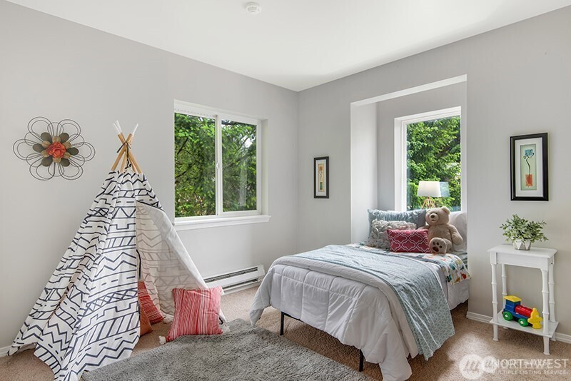 Enjoy your morning or evening beverages in your peaceful patio w/private green spaces on both sides! This end-unit townhome feels expansive and warm like a single-family home. Functional kitchen w/granite countertops & cozy eating nook. Owner's suite offers vaulted ceilings, walk-in closet, & 5-piece bath. Other wow features include beautiful hardwoods, tall ceilings, cozy living room w/fireplace, large great room, dining, sunlit windows, private patio, & two-car attached garage. Well maintained Ashford Park 2 neighborhood w/trails & hiking area nearby. Minutes from RTC, Marymoor Park, Perrigo Park, Park n Ride, New light Rail station, Costco, & other major stores. Close to MS and other employers. Award winning LWSD.