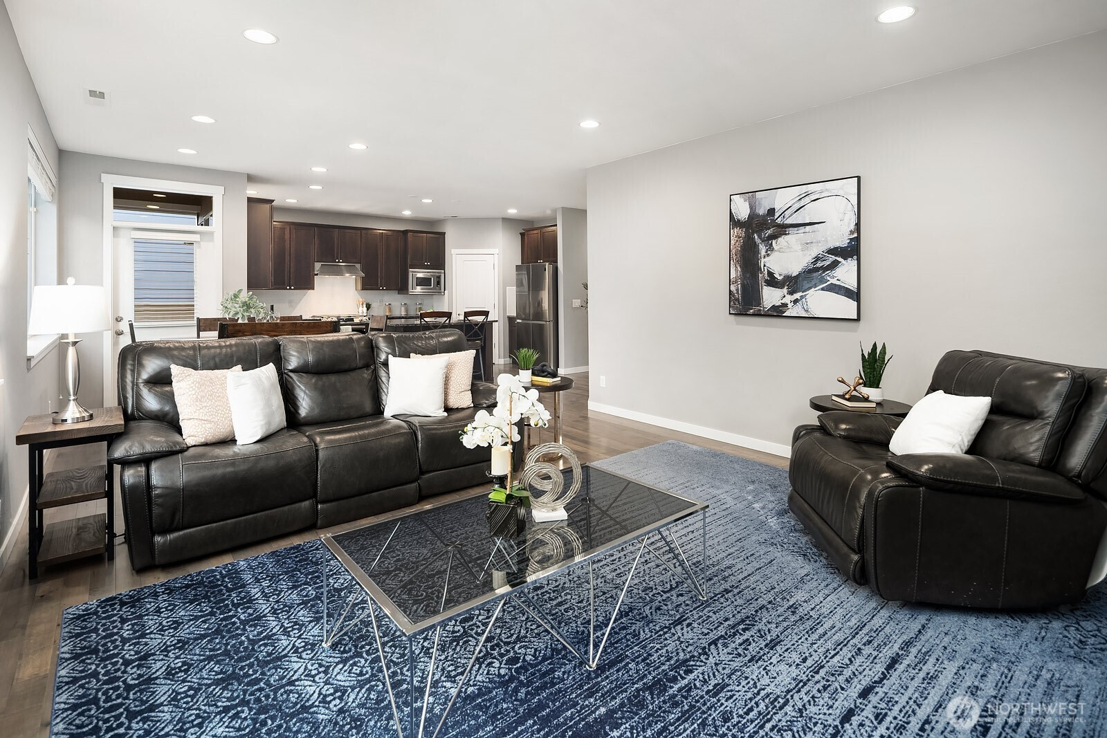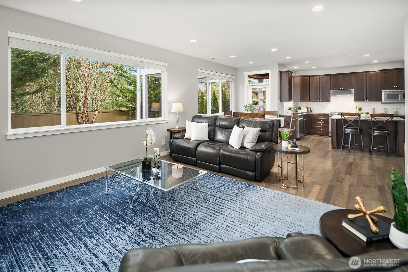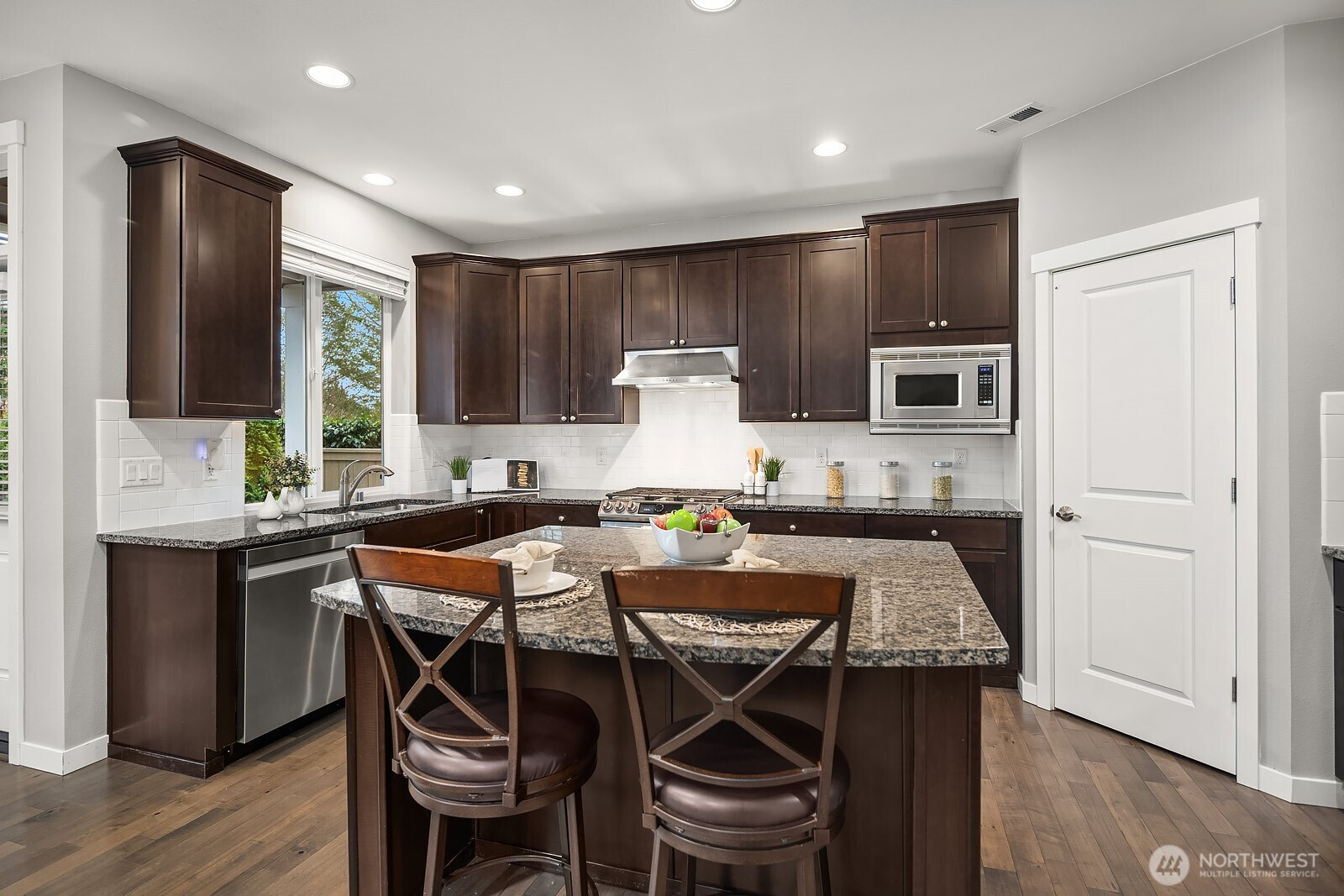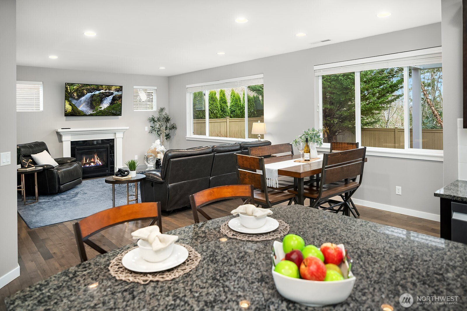 Immaculately maintained in the coveted Snoqualmie Ridge community, this home blends comfort, function, and scenic surroundings. Featuring 4 beds, 2.5 baths, and 2,567 sqft of thoughtfully designed living space. The heart of the home showcases beautiful hardwood floors and a chef’s kitchen with stainless steel appliances and a classic subway tile backsplash. It flows seamlessly into the dining area and spacious family room, creating an ideal layout for everyday living and entertaining, along with a dedicated main level office filled with natural light. Upstairs, the spacious primary suite serves as a private retreat with a luxurious five piece bath and large walk in closet. A generous loft offers versatile bonus space, while the additional bedrooms are well proportioned and thoughtfully situated. The fully fenced backyard backs to a serene greenbelt with mountain and territorial views, complete with low maintenance turf and a covered pergola for year round enjoyment. Just minutes to a 14-acre park with soccer fields and miles of trails, easy I-90 access, and award-winning Snoqualmie Valley schools.