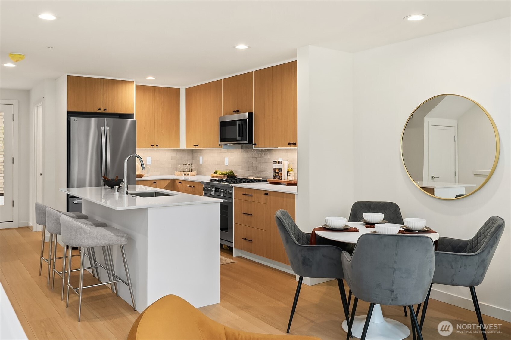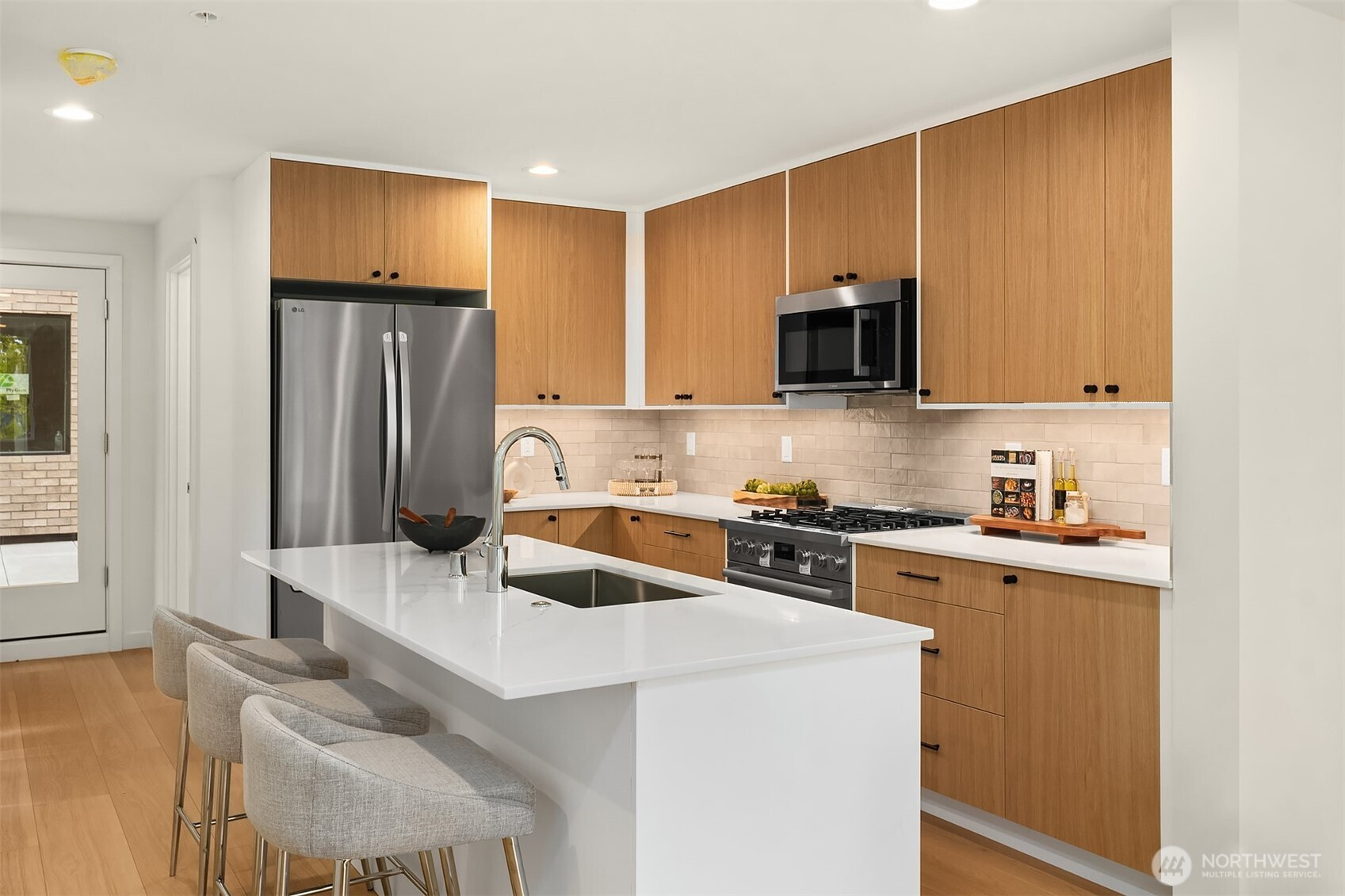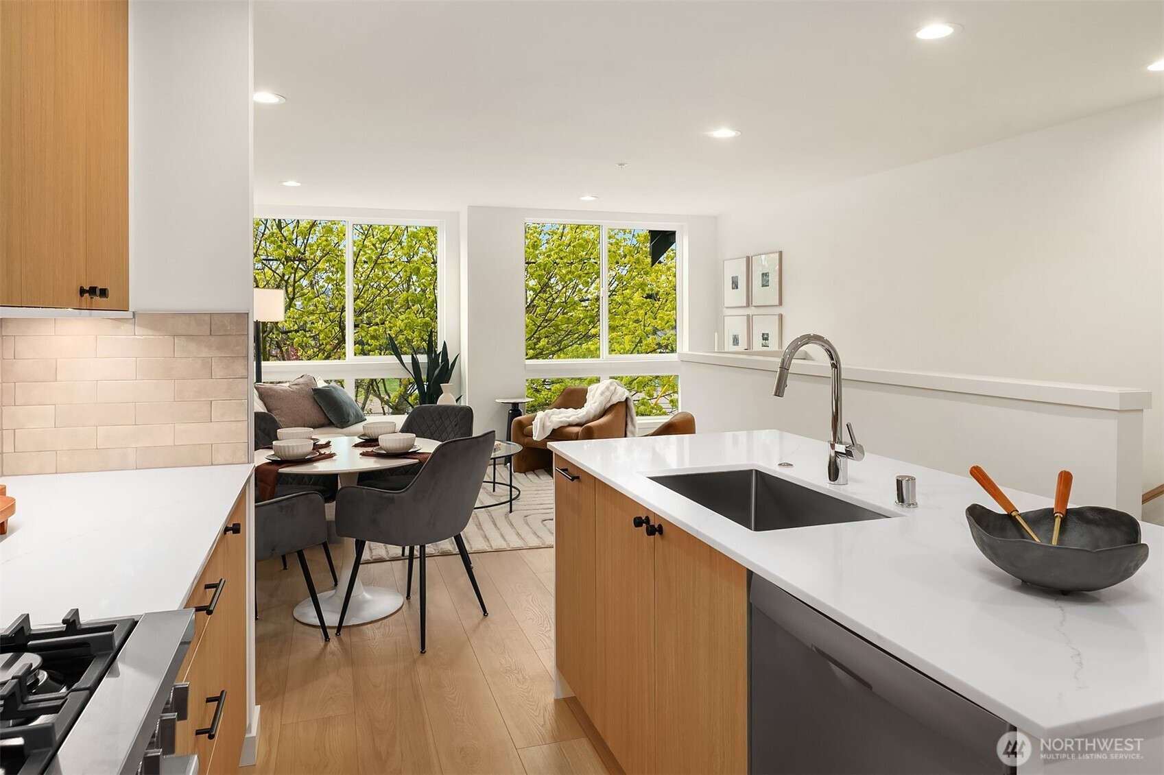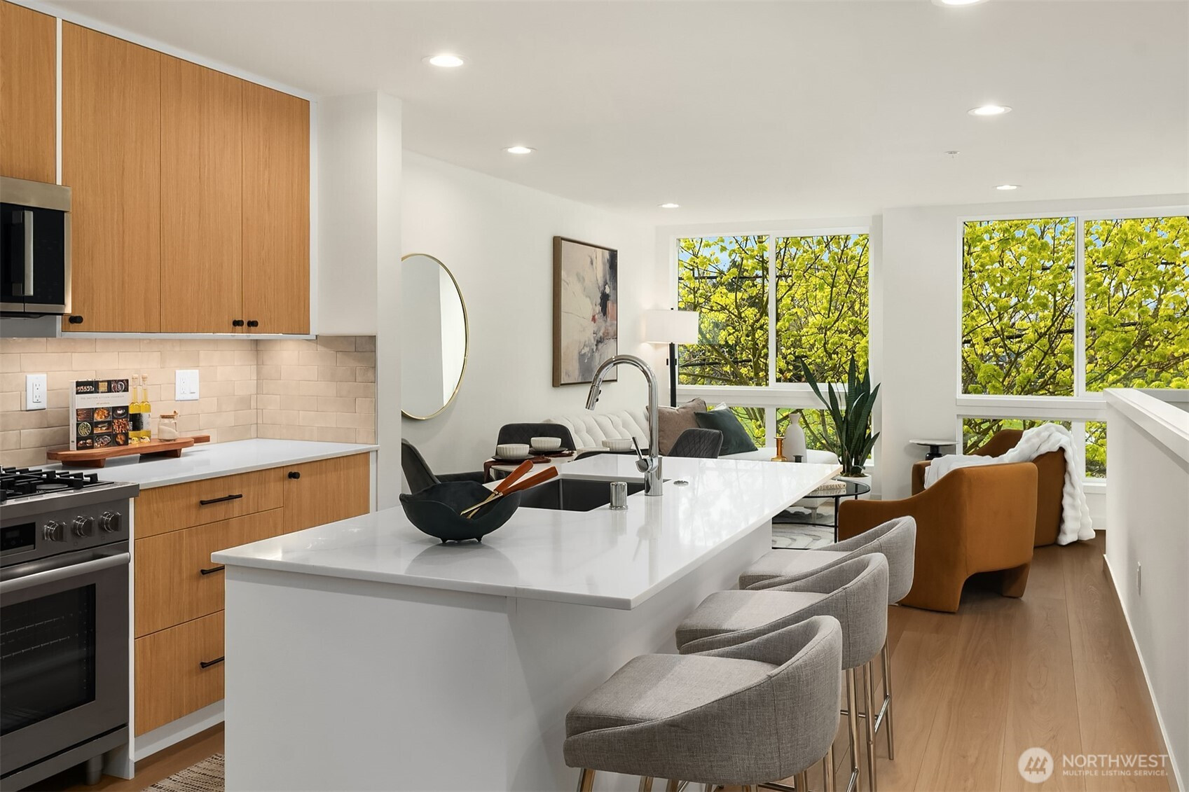 Welcome to Olive — an exceptional Ballard townhome set directly across from Gilman Park, offering the rare urban luxury of a green, open view right outside your front door. Four thoughtfully designed floors offer 3 bedrooms, a private den/office, and a fourth-floor sky lounge made for entertaining — opening to a rooftop deck with sweeping park and neighborhood views. A dedicated home office means work and life each have their proper place. The main level delivers a chef's kitchen with a generous island, Pro-Series appliances, custom cabinetry, and wide-plank flooring throughout. The third-floor primary suite is a serene retreat with a spa-inspired en-suite bath. One of just 24 curated homes by award-winning Shelter Homes, steps from the Ballard Farmers Market, restaurants, and boutiques. Urban living at its finest.