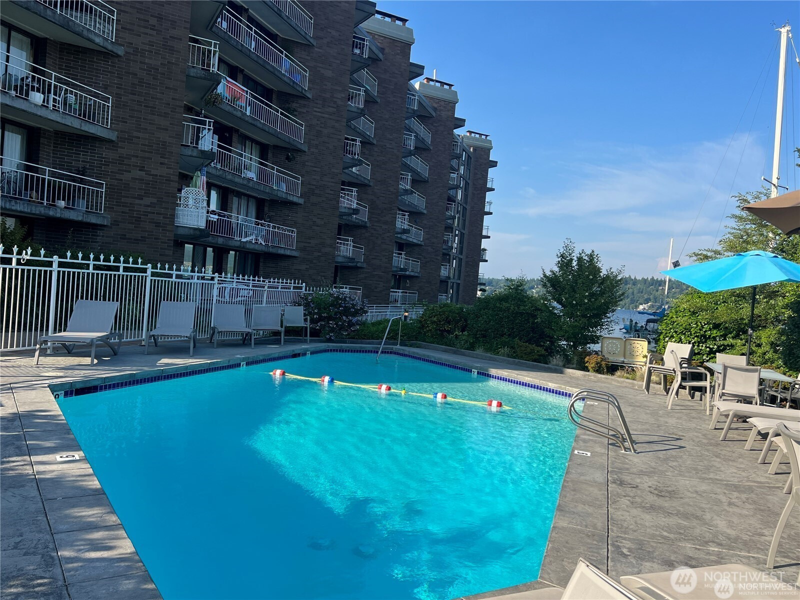 Step into a lifestyle of stunning waterfront views in this 2 bed 1.75 bath end unit Lake Washington condo! Wide opened kitchen wall window provides full lakeview relaxation through wall to ceiling glass doors. Newly renovated bathrooms paired with Quartz countertops, new cabinets, modern faucets and mirrors that add a touch of elegance. Fresh interior paint, brand new washer & dryer installed, remote-controlled wall heaters, and upgraded stylish light fixtures. This peaceful gated community with ample parking space offers a clubhouse, outdoor pool, and a welcoming atmosphere that perfectly blends luxury and comfortability! Easy access to several parks, Kubota Garden, Rainier Yacht Club, excellent dining, shopping, highways and light rail.