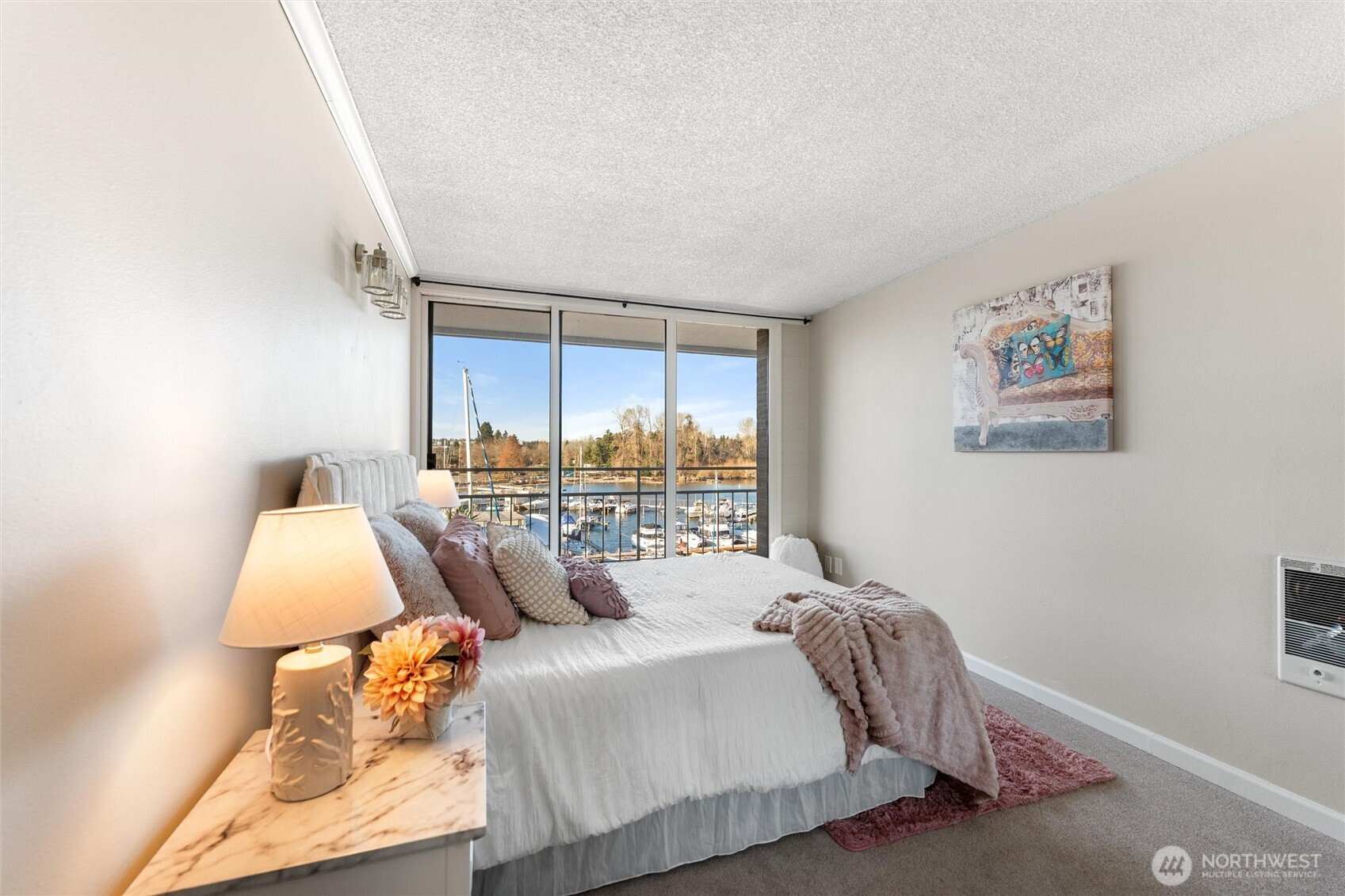Wake up to breathtaking, unobstructed views of Lake Washington in this beautifully refreshed waterfront condo offering true lakefront living in Seattle. This light-filled residence features expansive water and marina views enjoyed from the living space, bedrooms, and private balcony creating a serene backdrop for everyday living. Watch boats glide by, enjoy peaceful mornings, and unwind with stunning sunsets from the comfort of your home. The thoughtfully updated interior includes new lighting and modern faucets, enhancing the clean, contemporary feel. With 893 square feet, this home is perfectly sized and efficiently laid out with two bedrooms, one bathroom, plus a bonus vanity area. Ideal for added functionality and storage. Large windows throughout the home fill the space with natural light and highlight the ever-changing waterfront scenery. The well-maintained waterfront community offers desirable amenities including a pool, waterfront setting, and nearby marina access, delivering a relaxed, resort-like lifestyle just minutes from downtown Seattle. The unit includes one off-street designated parking space. Affordable HOA dues include water, sewer, and garbage, providing exceptional value for waterfront condo living. Enjoy easy access to I-5 and I-90 for commuting and travel throughout the region. A rare opportunity to own a true Lake Washington waterfront condo combining lifestyle, location, and low-maintenance living in one of Seattle’s most sought-after settings.