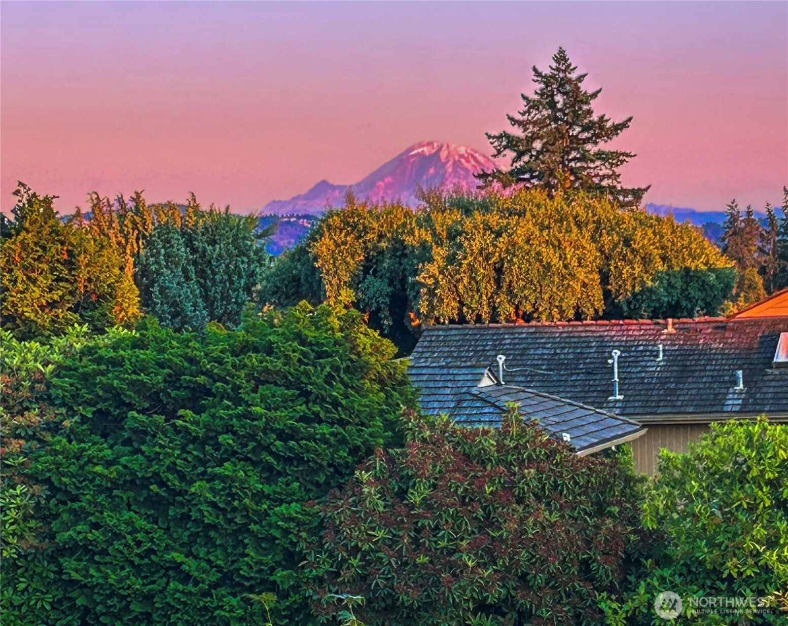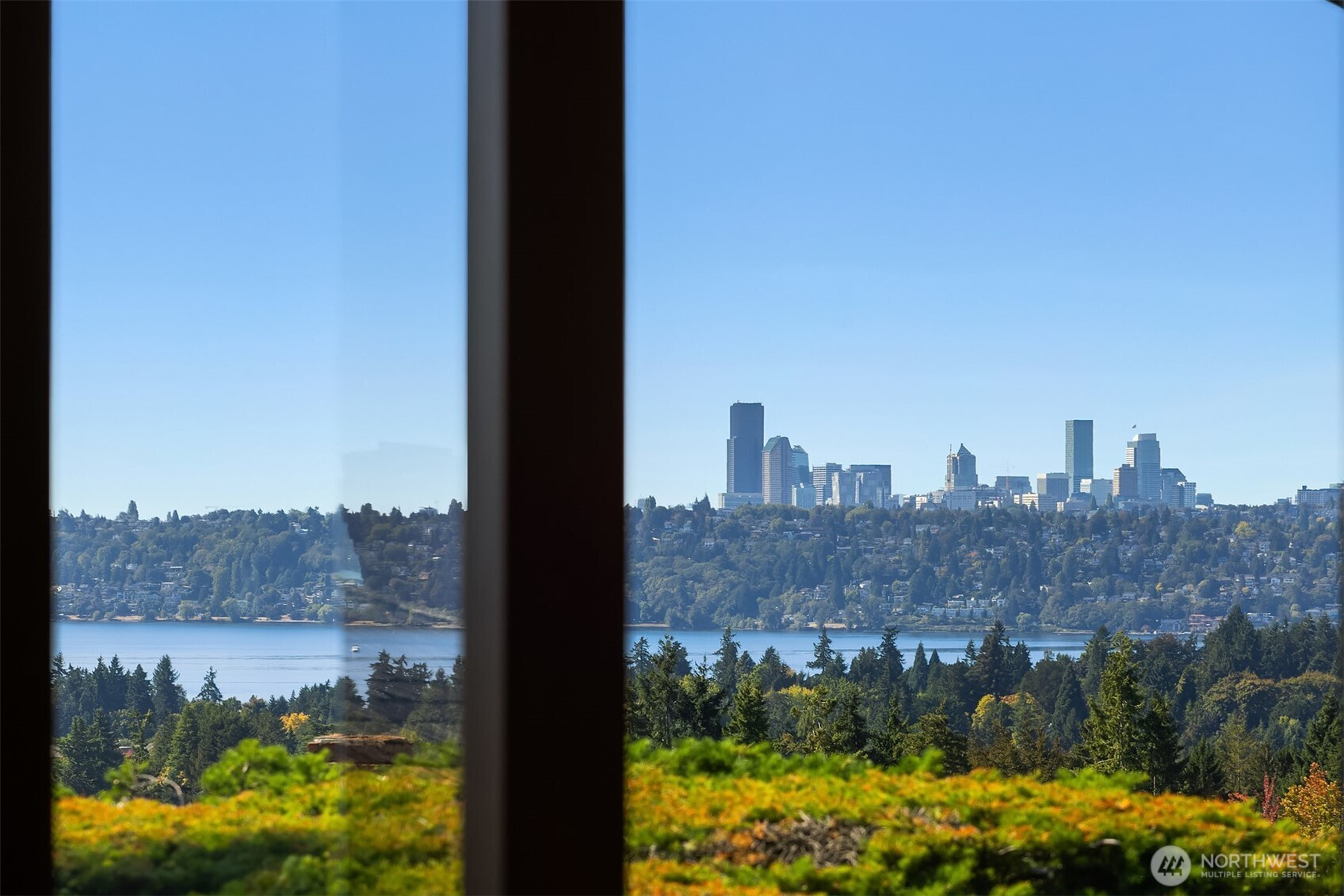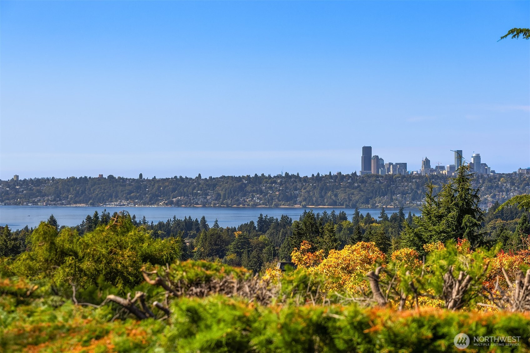 Northwest Modern Meets Panoramic Grandeur. First time to market architectural treasure in Clyde Hill, crafted by renowned Ralph Anderson, exemplifying modernist Northwest style. Situated in Clyde Hill's most private cul-de-sac, the home rests on a flat, oversized, secluded lot of 19,498 square feet, surrounded by mature landscaping. This custom-built residence offers 3,437 square feet of harmonious living with its extensive use of wood, exposed framing, and broad windows celebrating the natural beauty, framing captivating views of the Seattle skyline, Bellevue, Mount Rainier, and the Olympic Mountains. Enjoy seamless indoor-outdoor living, while taking in breathtaking grand sunset views…the perfect blend of sophistication and tranquility.