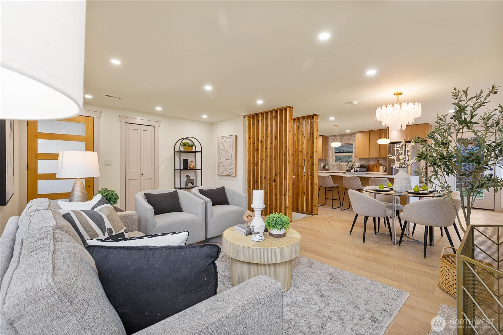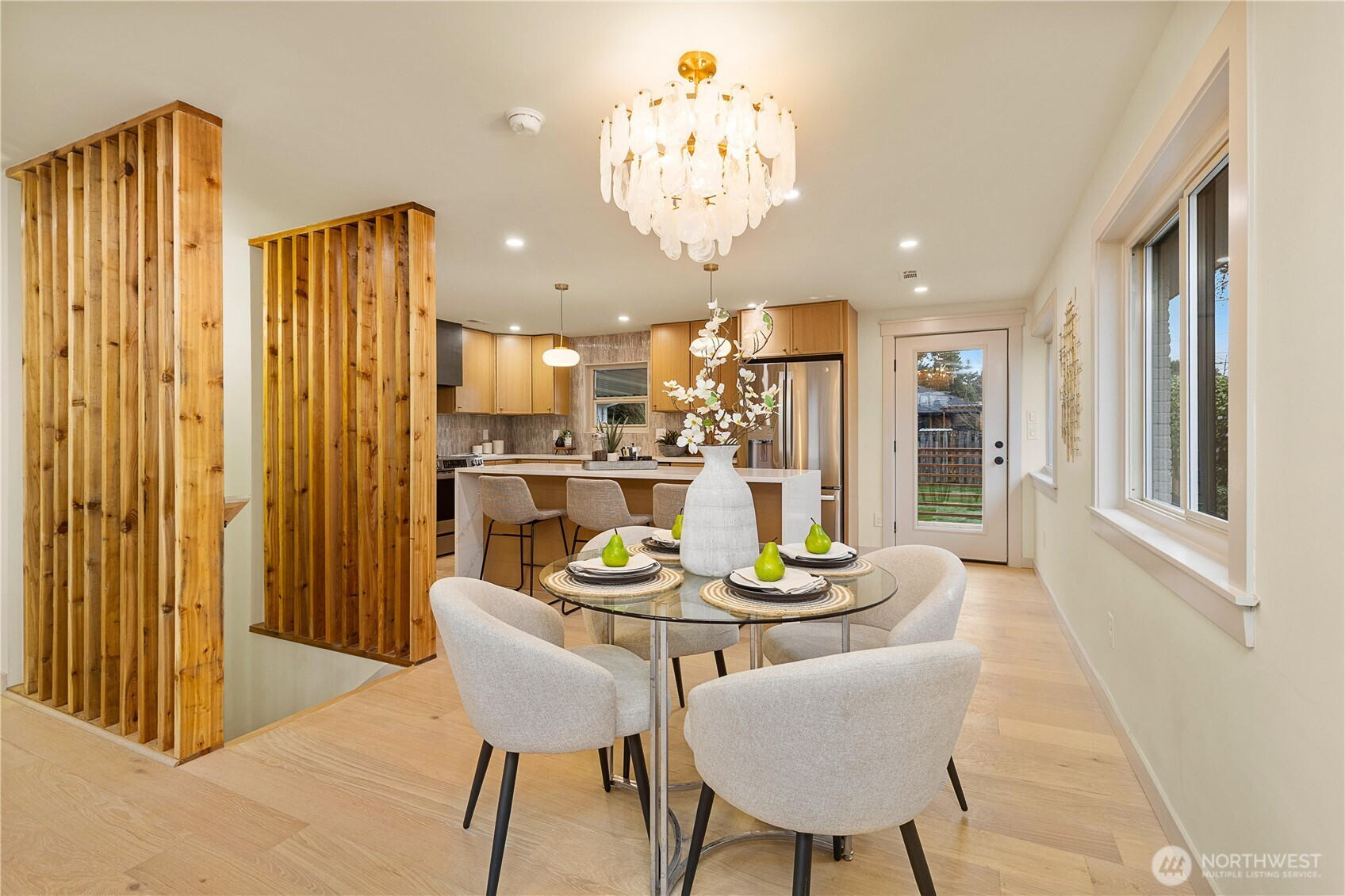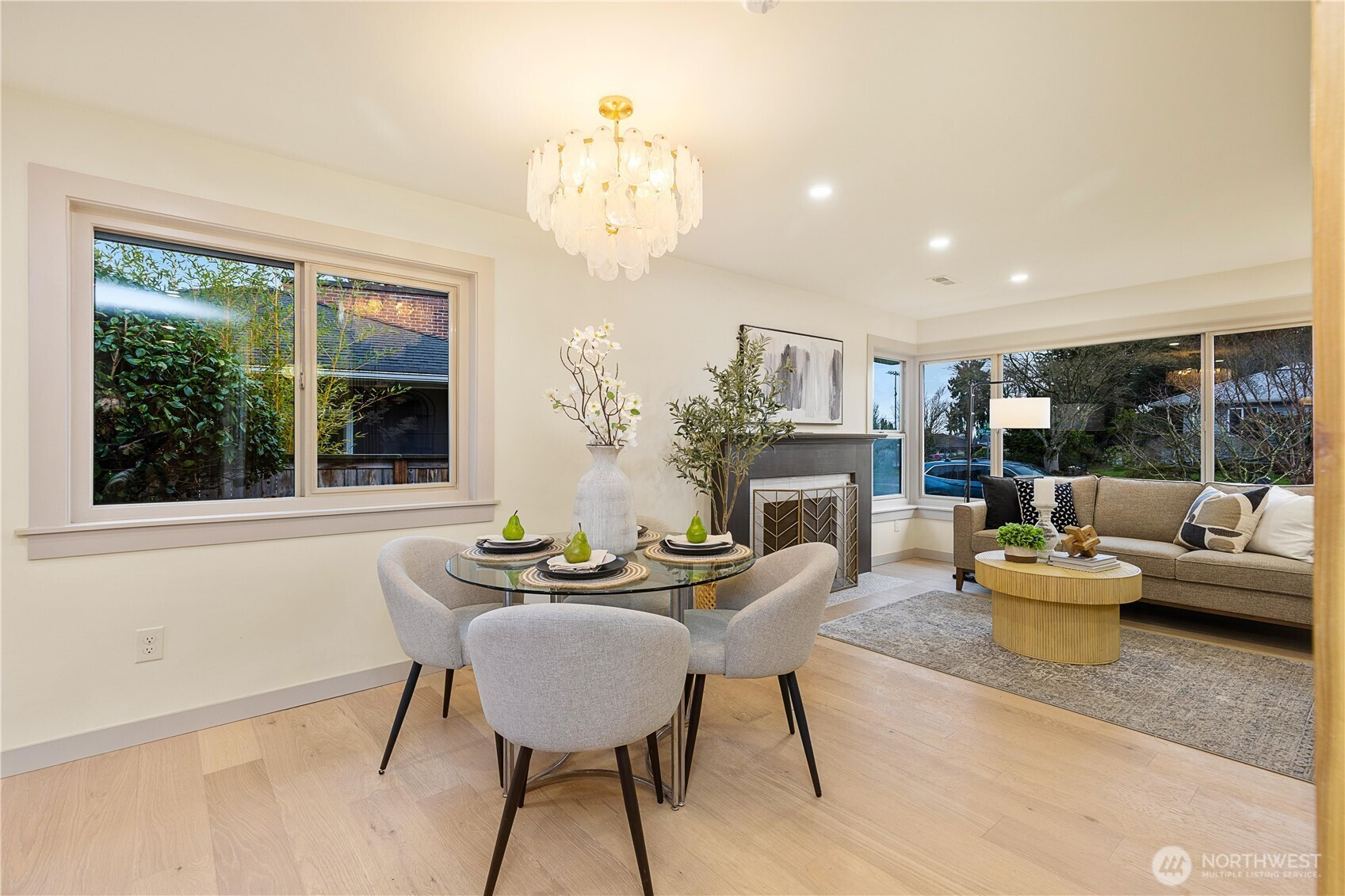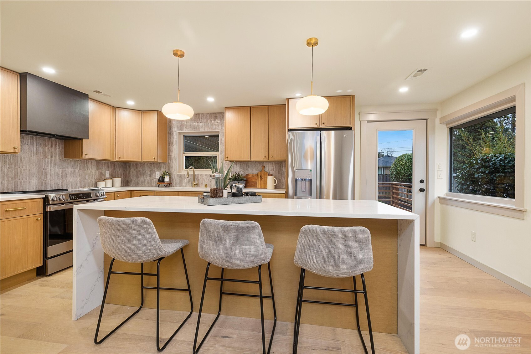 An idyllic setting rarely found in the coveted North Beach community, tucked along a quiet street lined with pristine homes—just moments to parks, schools, Swanson’s Nursery, and Blue Ridge Coffee House. Inside, discover a completely reimagined and fully updated home designed to feel warm, inviting, and effortlessly livable. The sun-filled living room with cozy fireplace flows seamlessly into the dining area and stunning brand-new kitchen, featuring warm oak cabinetry, a textured timeless tile backsplash, stainless steel appliances, and direct access to the new deck overlooking the spacious, level, freshly manicured yard. The primary retreat is thoughtfully tucked away, offering a spa-like ¾ bath that exudes elegance. A secondary bedroom and gorgeous new full bath complete the main level. Downstairs, enjoy exceptional flexibility with a large bonus room featuring a second fireplace and chic new wet bar—perfect for entertaining—plus two generous bedrooms, a full bath, and additional flex space. Extensively updated with new electrical, plumbing, roof, finishes, fixtures, and more. A sweet location paired with a gorgeous home!