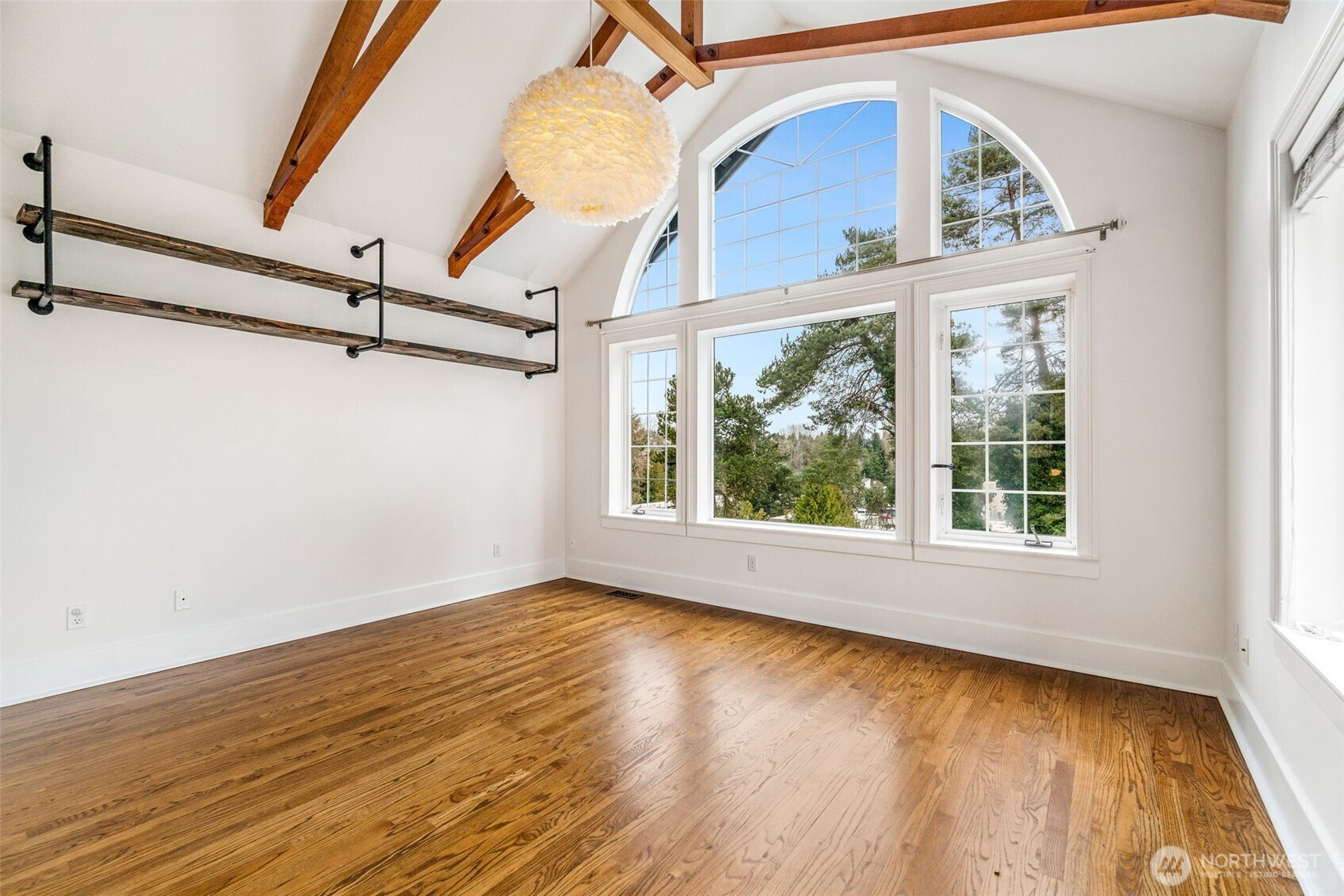 (503) 893-8874Upper condo in beautifully renovated two-unit Craftsman located in Crown Hill. This light-filled home features vaulted, exposed wood-beam ceilings and hardwood floors. Thoughtfully designed chef’s kitchen includes a wine fridge, pantry, farmhouse sink, and opens seamlessly to living and dining areas, and a sun-filled deck—ideal for entertaining. Serene primary offers soaring ceilings and a luxury bath with jetted tub. With 5 bedrooms & 3.5 baths, there is exceptional space and flexibility. Additional highlights include 2 gas fireplaces, mudroom with built-ins, and central A/C. Detached 2-car garage, plus off-street parking. Enjoy access to shared gated pool, all just minutes from Met Market, Trader Joe’s, QFC, parks, and top-rated schools.