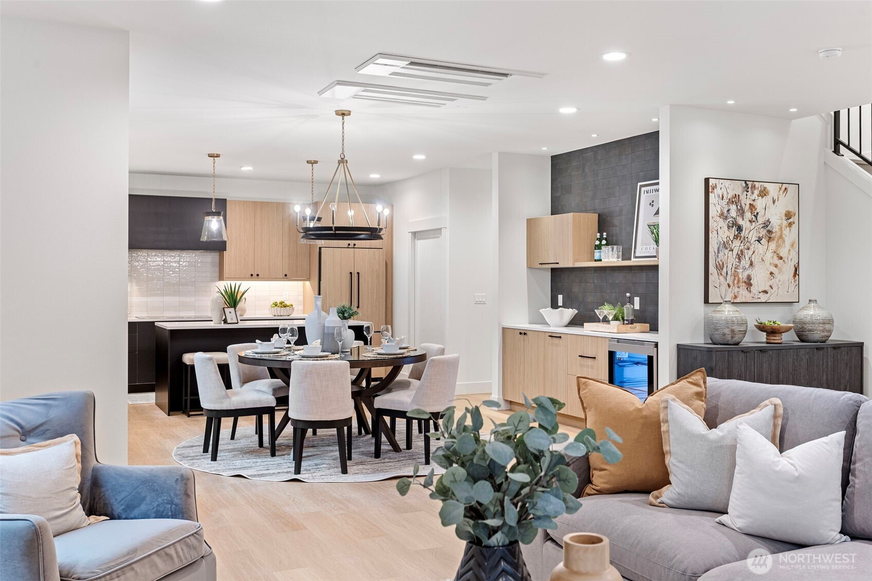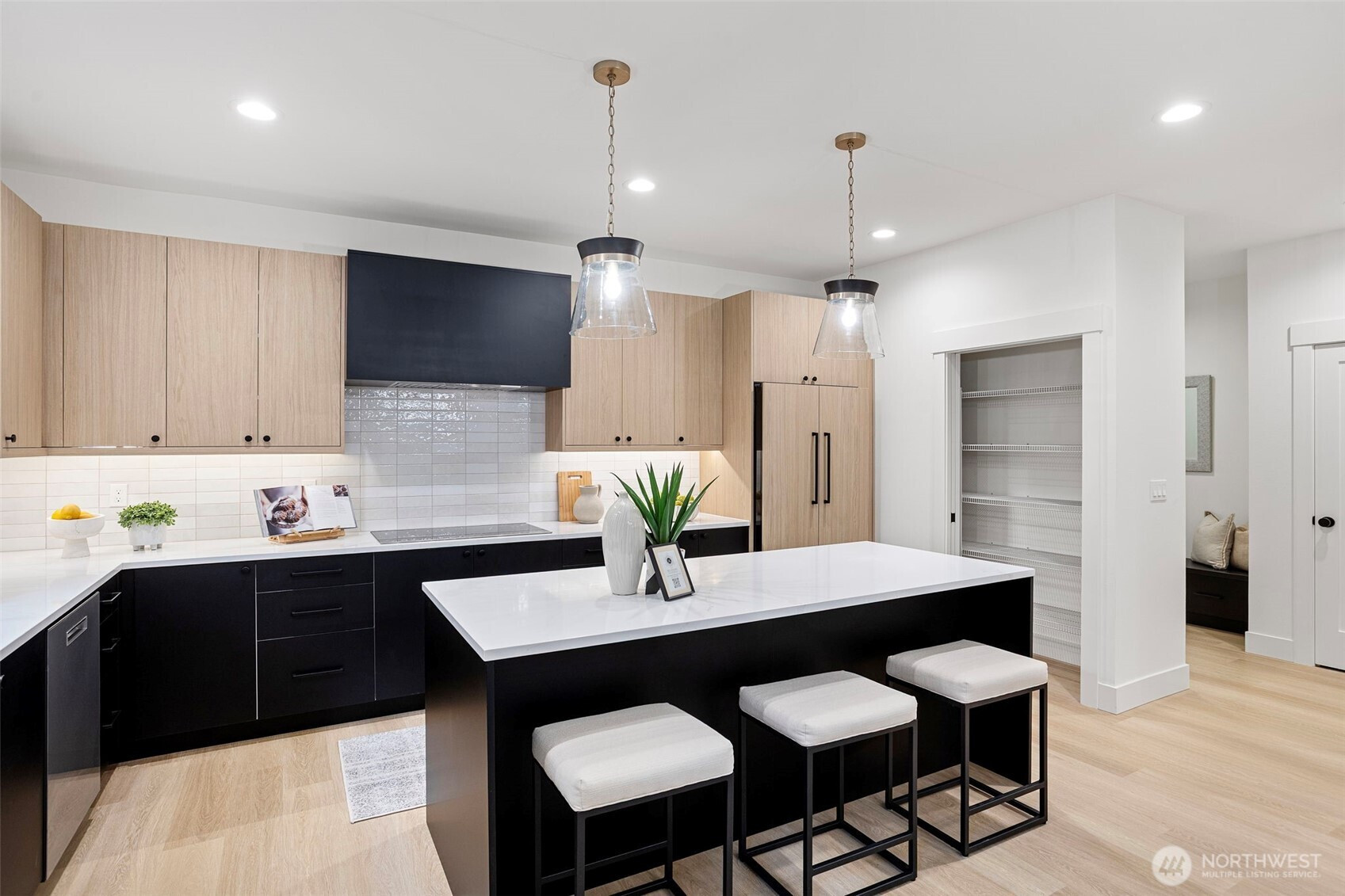 Discover refined modern living in this exceptional new home by TCL Construction, perfectly positioned in the desirable Rose Hill neighborhood. Featuring 4 bedrooms and 2.25 baths, the home offers a bright and inviting open-concept layout designed for both comfortable daily living and effortless entertaining. Showcasing striking Northwest Contemporary design, the residence is highlighted by upscale finishes and expansive windows that flood the interiors with natural light. The main level is anchored by a chef-inspired kitchen with a generous island and premium appliances—ideal for preparing meals and gathering with friends. Upstairs, the serene primary suite serves as a private retreat, complete with a spacious walk-in closet and a spa-like ensuite bath. Just minutes from the vibrant shops and restaurants of downtown Kirkland, this home also features a two-car garage equipped with EV charging.