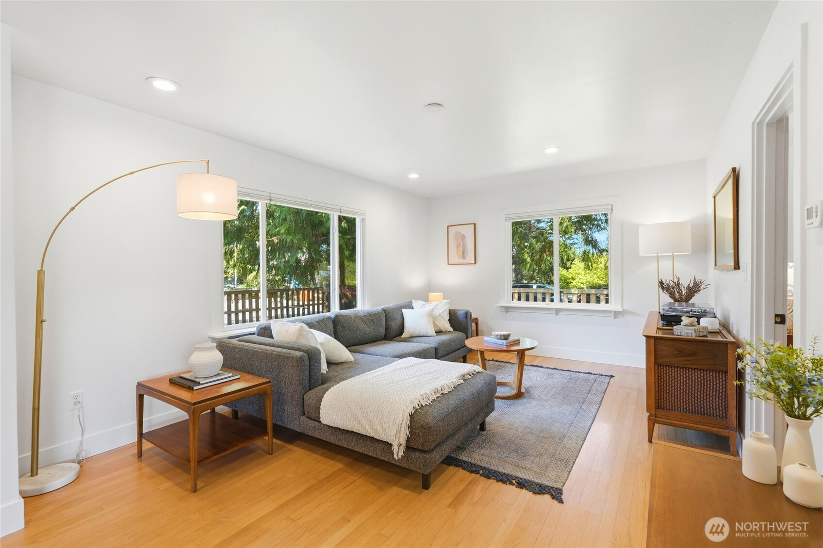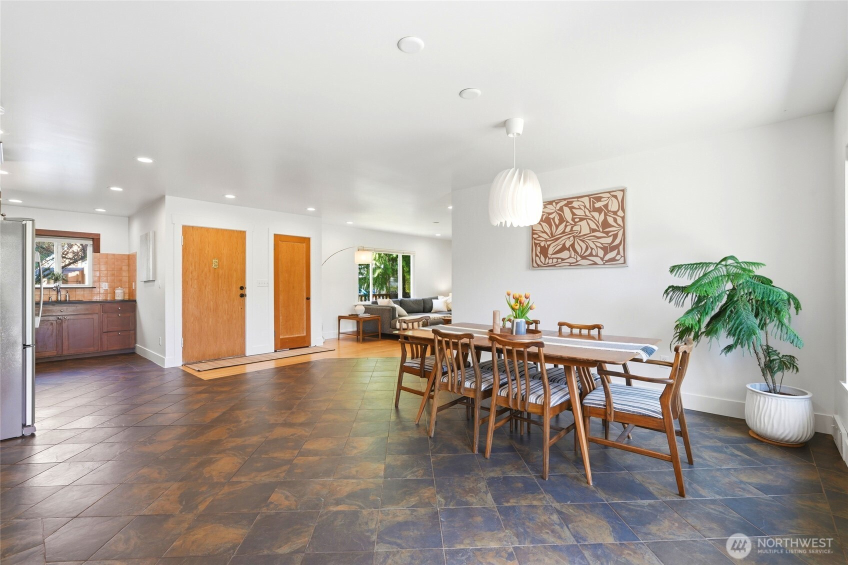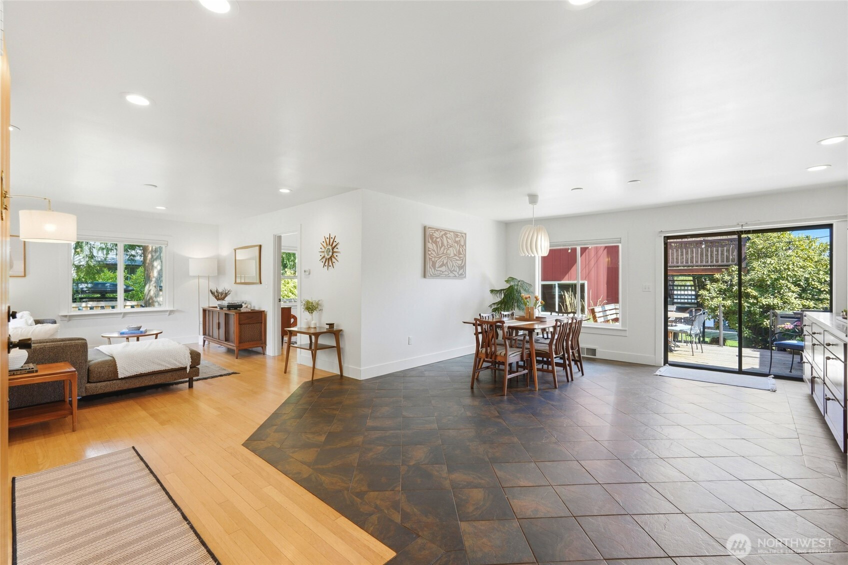 Beautifully maintained Maple Leaf rambler offering exceptional flexibility, income potential, and space on a large corner lot. The main home features 2 bedrooms, 1.75 bathrooms, and an open layout with the kitchen flowing seamlessly into the expansive dining and living areas - the true heart of the home. A generous flex space offers endless possibilities - perfect as a sunroom, playroom, or potentially converted into a bedroom. Great investment with the updated 600 sq ft non-conforming studio DADU with a full bath, ideal for friends, short or long term rental income. Two-car garage with new epoxy flooring offering additional gym/work/shop space. Nearly a quarter-acre lot with fruit trees, raised garden beds, and a deck creating a plant lover’s dream. Move-in ready with updated bathrooms, new roof, paint, and carpet. Commuter friendly with easy access to bus routes and light rail.