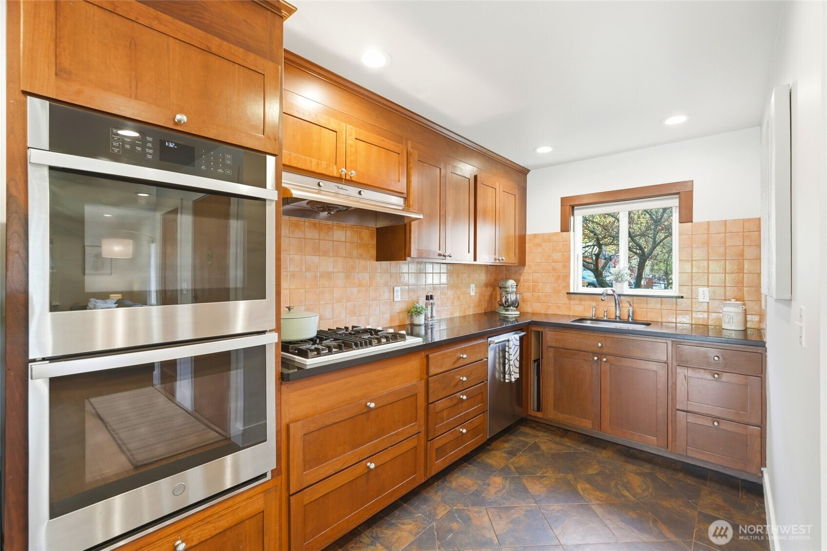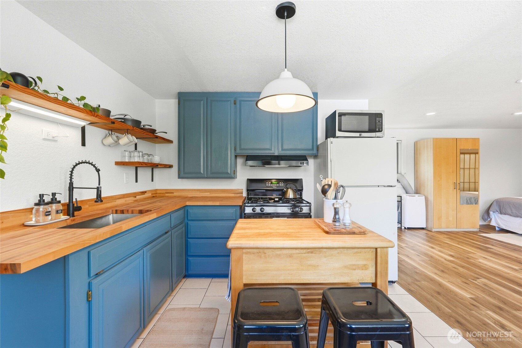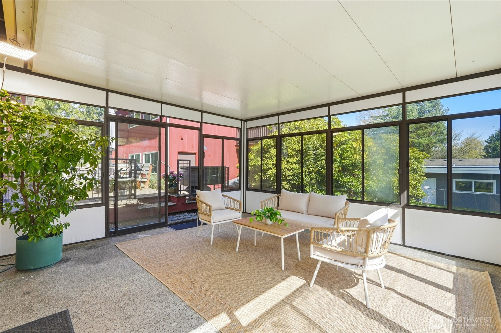 Beautifully maintained Maple Leaf rambler offering exceptional flexibility, income potential, and space on a large corner lot. The main home features 2 bedrooms, 1.75 bathrooms, and an open layout with the kitchen flowing seamlessly into the expansive dining and living areas - the true heart of the home. A generous flex space offers endless possibilities - perfect as a sunroom, playroom, or potentially converted into a bedroom. Great investment with the updated 600 sq ft non-conforming studio DADU with a full bath, ideal for friends, short or long term rental income. Two-car garage with new epoxy flooring offering additional gym/work/shop space. Nearly a quarter-acre lot with fruit trees, raised garden beds, and a deck creating a plant lover’s dream. Move-in ready with updated bathrooms, new roof, paint, and carpet. Commuter friendly with easy access to bus routes and light rail.