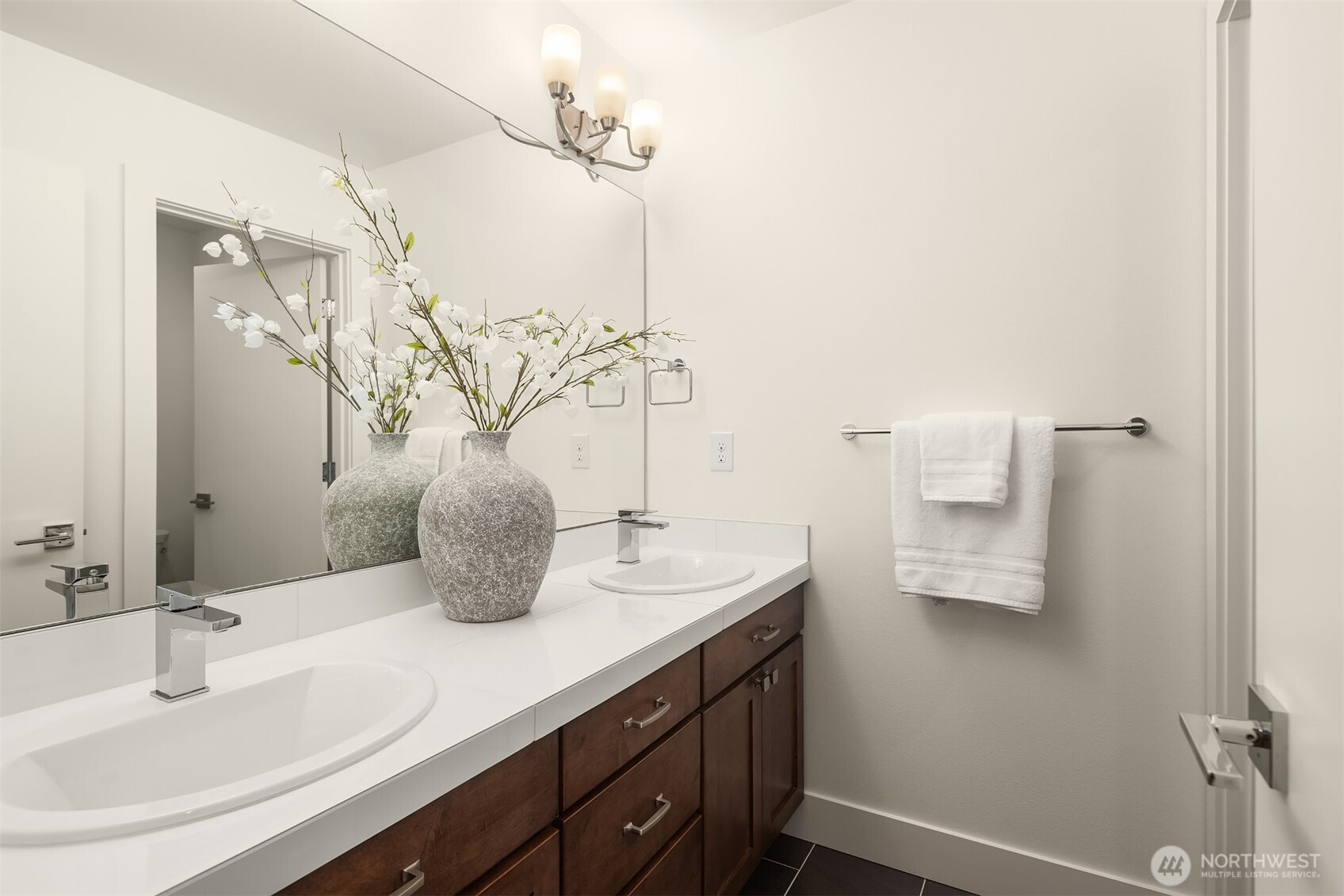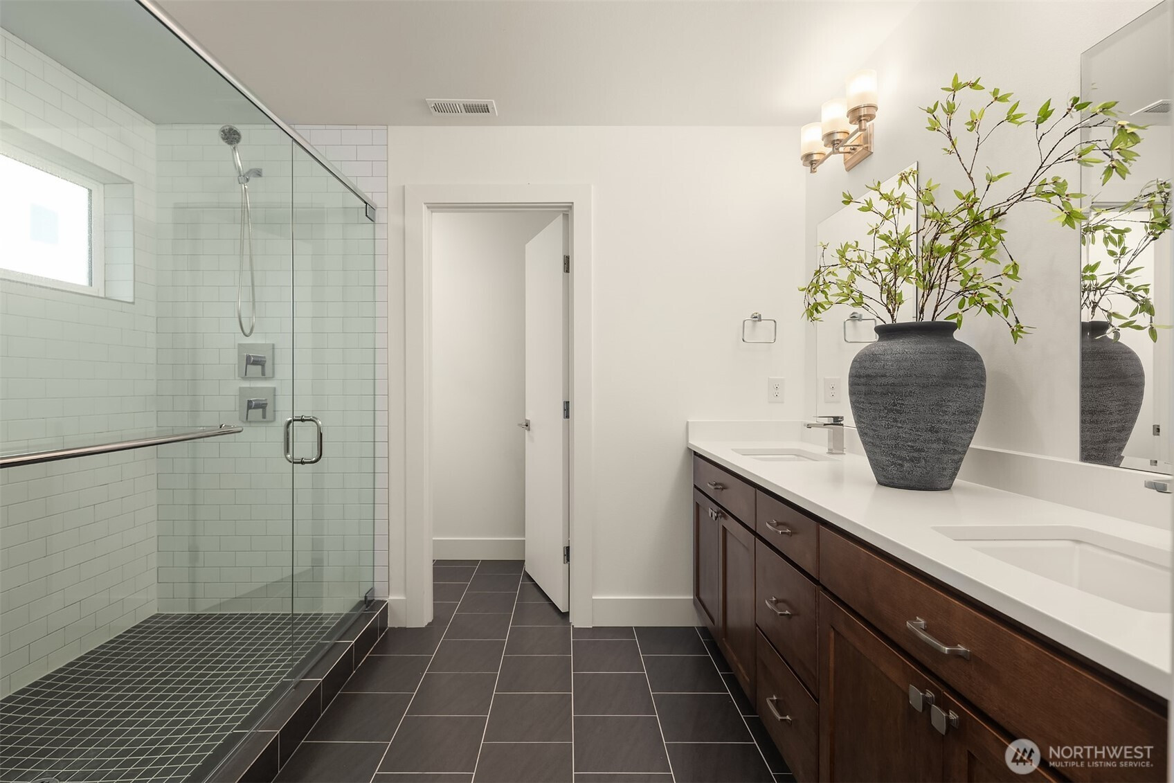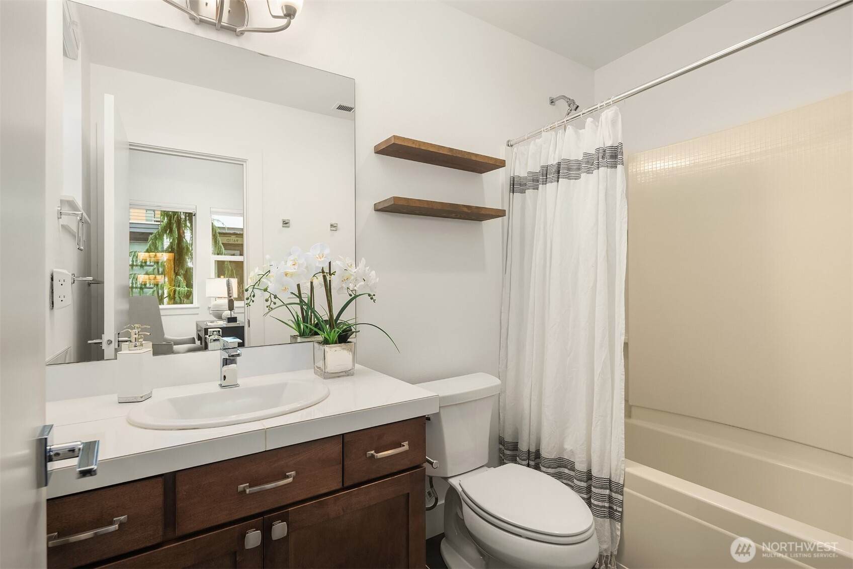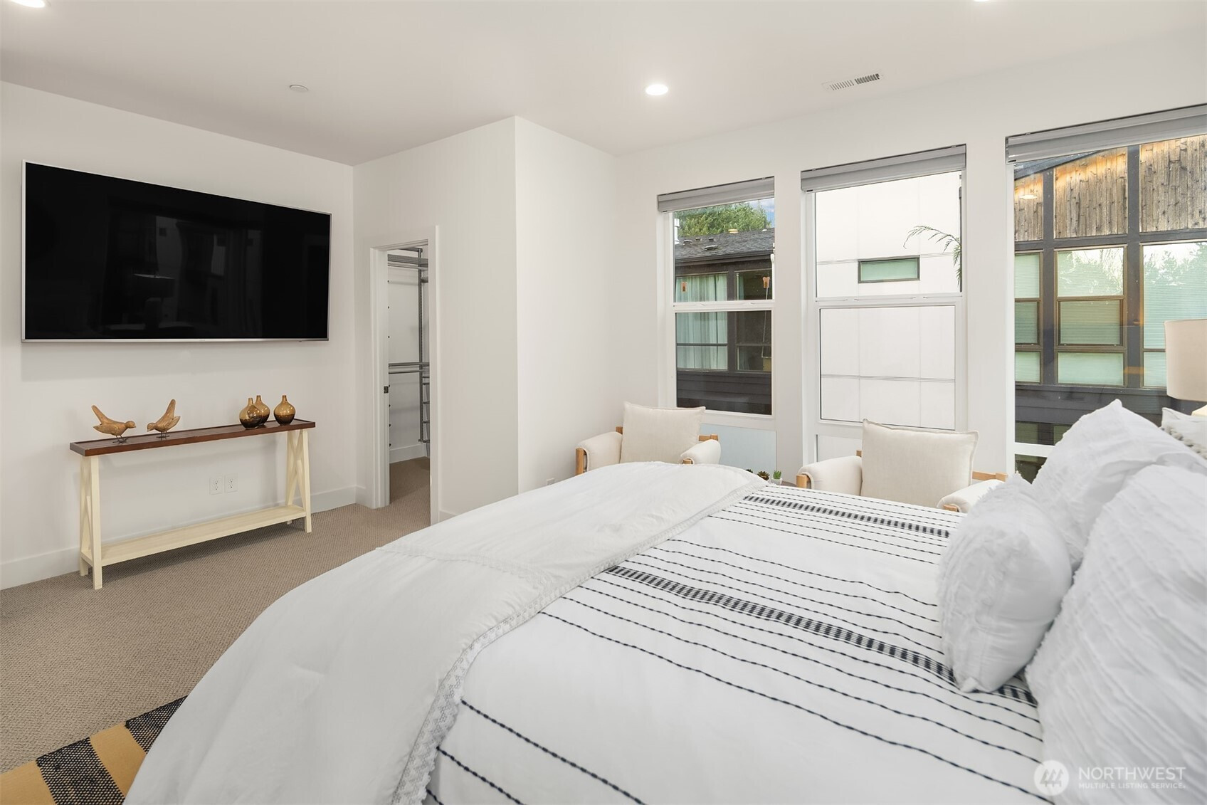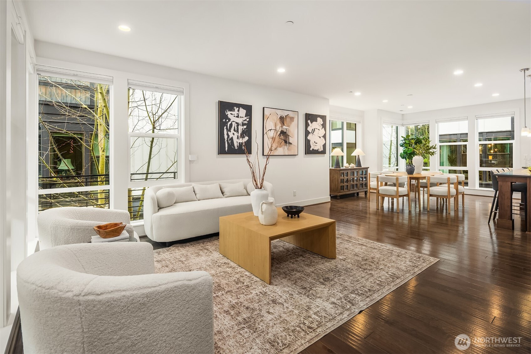 Contemporary corner unit urban townhome w/luxury finishes in vibrant Downtown Bothell. Expansive floor-to-ceiling windows & Toll Brothers signature 9-ft ceilings flood the home w/natural light. Open-concept main floor showcases a chef's kitchen w/abundant cabinetry, a large island & SS appliances, a sleek tiled gas fireplace & a covered balcony. Spacious primary suite offers a spa-like bath & walk-in closet. A versatile flex office/guest bedroom w/en-suite bath on lower level. Additional highlights include laundry room & 2nd W/D set on top level, central A/C, custom Elfa closet system throughout, smart Lutron shades & fresh paint. Coveted Northshore SD. Minutes to I-405 & UW Bothell. Steps away to restaurants, shops, parks & trails.