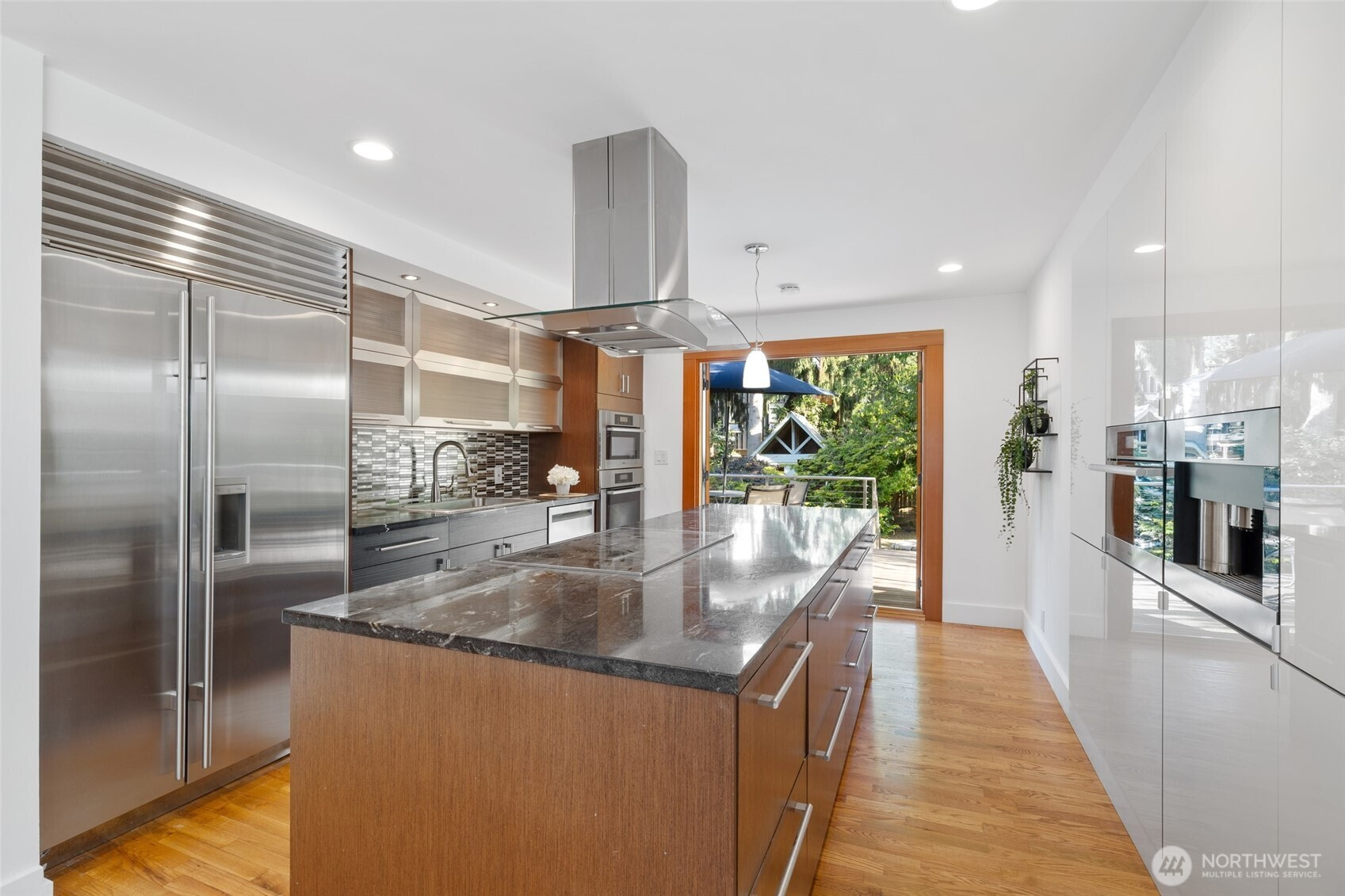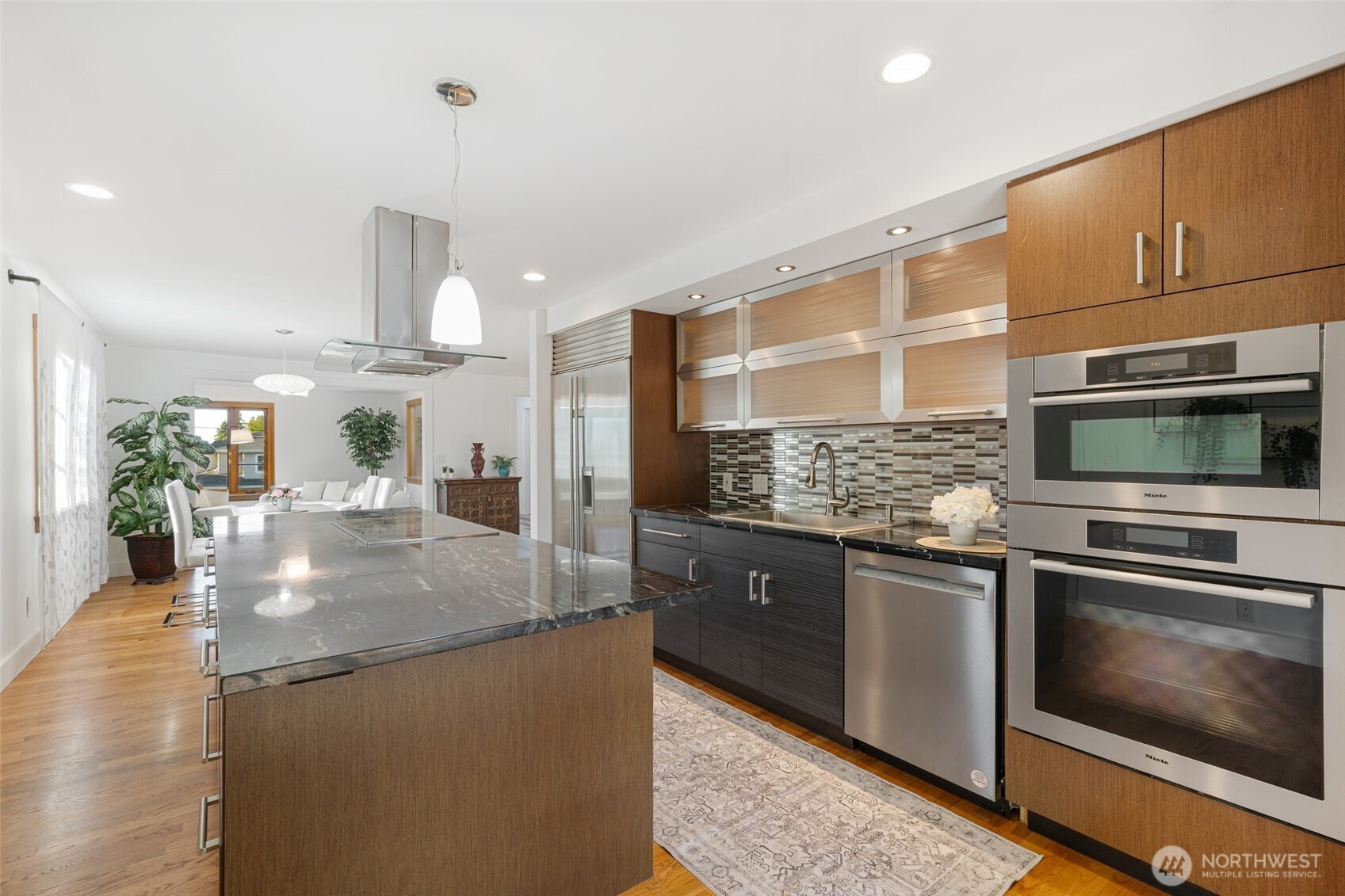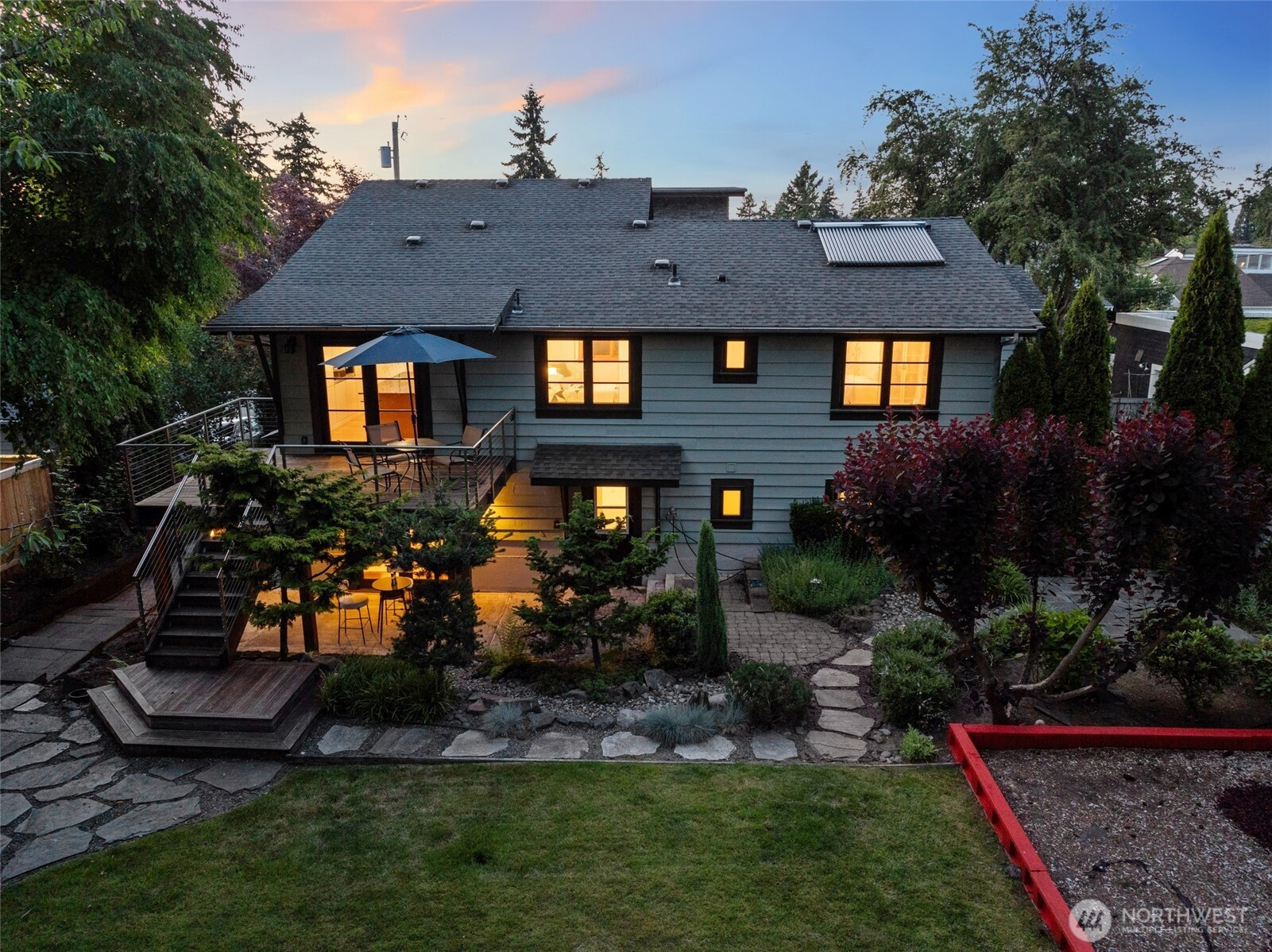 This stunning Clyde Hill residence, beautifully remodeled in 2014, blends contemporary design with architecturally inspired details. The main level features three bedrooms, two full bathrooms, and a powder room. The above-ground lower level offers exceptional flexibility with its own locked exterior entrance, a full bathroom, one bedroom, a media room, a large office/multipurpose room, and an additional office currently used as a bedroom. Thoughtfully curated finishes include Kolbe aluminum/wood-clad windows framed in custom Douglas Fir, an Apricus solar water system, and designer selections such as Artemide lighting, Italian tile, and Miele appliances. The Ipe deck with stainless steel cable railing creates a sleek, modern outdoor retreat. Nestled in a quiet oasis just two blocks from top-rated schools, this prime location offers quick access to downtown Bellevue, 405 and 520, and an easy commute to Seattle, Redmond, and South Lake Union. Drought-resistant landscaping completes this exceptional package. Pre-inspected.
