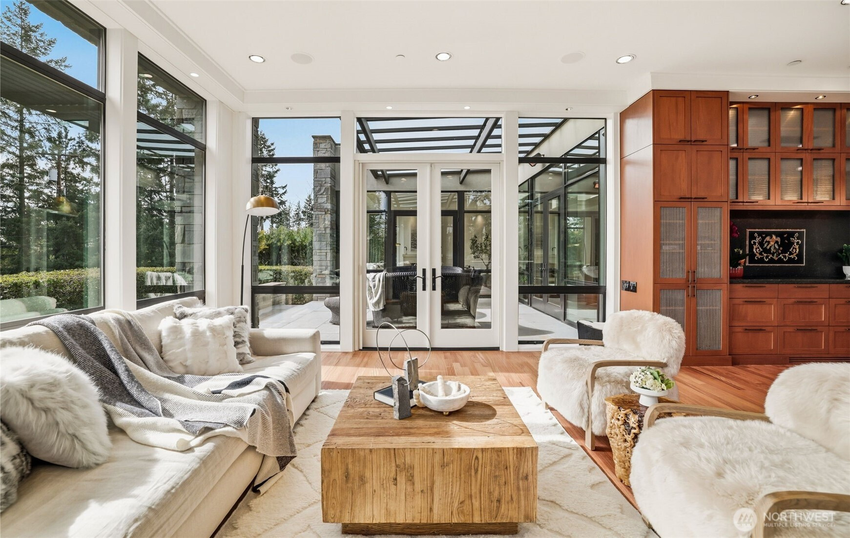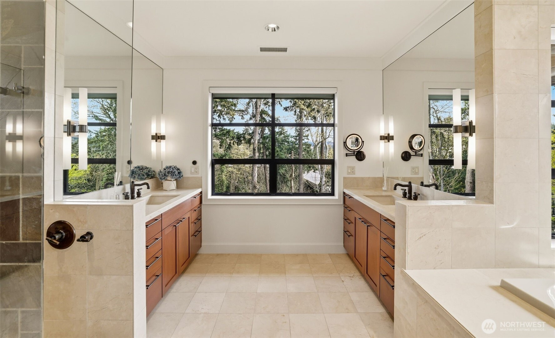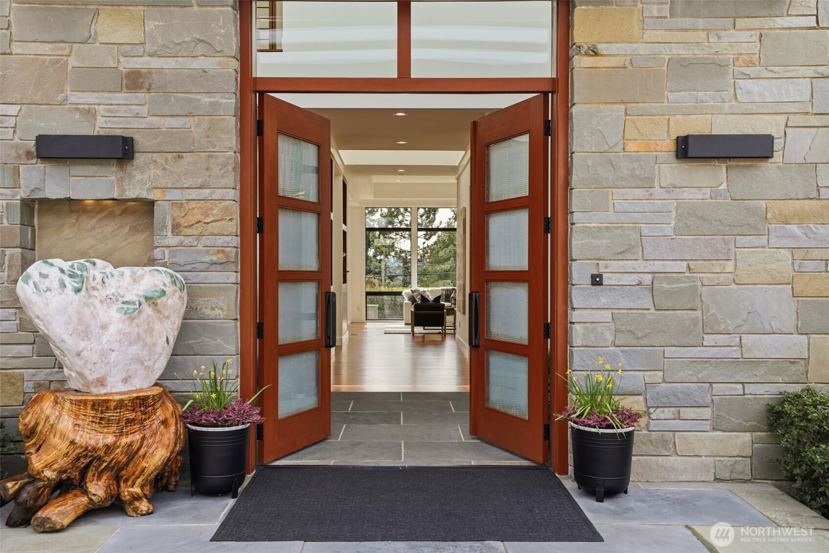 Experience a world of refined luxury and timeless sophistication in the heart of West Bellevue. Masterfully crafted by Bender Custom Homes, this architecturally striking estate is gracefully sited on over three-quarters of an acre, offering an extraordinary sense of privacy, scale, and presence. A curated palette of bluestone, metal, cherry wood, and mahogany creates a rich interplay of warmth and modernity, while dramatic walls of glass capture breathtaking western sunsets and bathe the interiors in natural light. Designed for both grand entertaining and elevated everyday living, the home seamlessly extends outdoors to a spectacular covered living pavilion complete with a fireplace and overhead heaters, delivering a true year-round indoor-outdoor lifestyle. The grounds are equally captivating—lush, serene, and beautifully composed with a private garden and a detached guest house that offers exceptional flexibility for guests, multigenerational living, or a private retreat. Every detail reflects craftsmanship, intention, and understated global elegance. Perfectly positioned in one of Bellevue’s most coveted enclaves, this exceptional estate is just moments from world-class dining, luxury shopping, premier amenities, and top-rated schools. A rare offering that embodies architectural distinction, resort-inspired comfort, and uncompromising luxury.