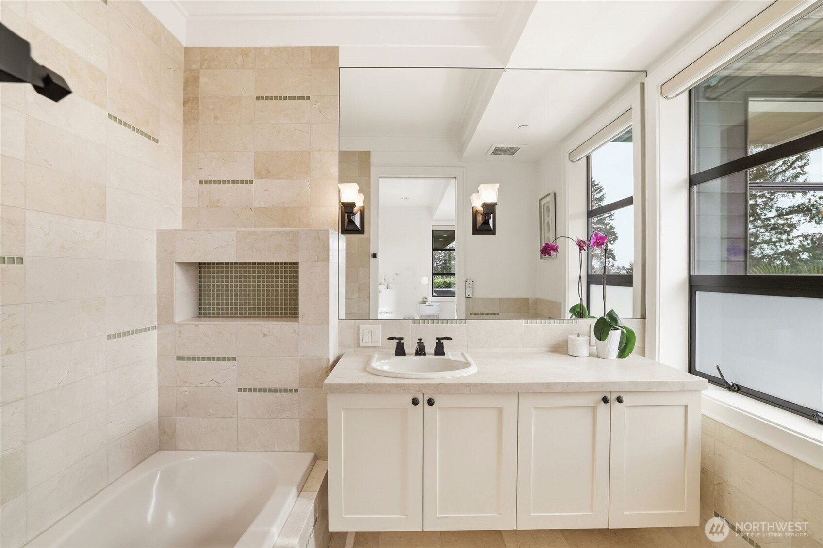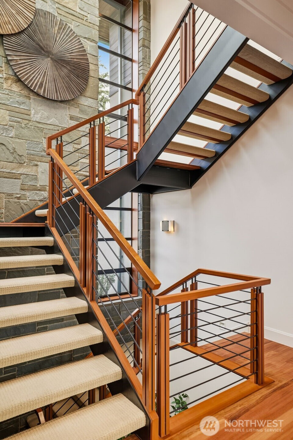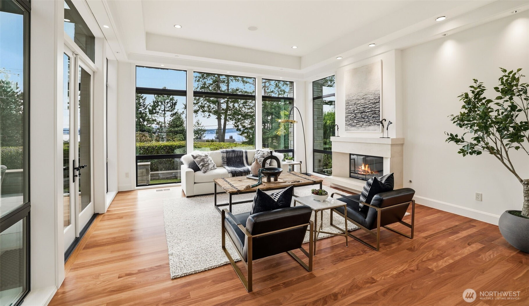 Experience a world of refined luxury and timeless sophistication in the heart of West Bellevue. Masterfully crafted by Bender Custom Homes, this architecturally striking estate is gracefully sited on over three-quarters of an acre, offering an extraordinary sense of privacy, scale, and presence. A curated palette of bluestone, metal, cherry wood, and mahogany creates a rich interplay of warmth and modernity, while dramatic walls of glass capture breathtaking western sunsets and bathe the interiors in natural light. Designed for both grand entertaining and elevated everyday living, the home seamlessly extends outdoors to a spectacular covered living pavilion complete with a fireplace and overhead heaters, delivering a true year-round indoor-outdoor lifestyle. The grounds are equally captivating—lush, serene, and beautifully composed with a private garden and a detached guest house that offers exceptional flexibility for guests, multigenerational living, or a private retreat. Every detail reflects craftsmanship, intention, and understated global elegance. Perfectly positioned in one of Bellevue’s most coveted enclaves, this exceptional estate is just moments from world-class dining, luxury shopping, premier amenities, and top-rated schools. A rare offering that embodies architectural distinction, resort-inspired comfort, and uncompromising luxury.