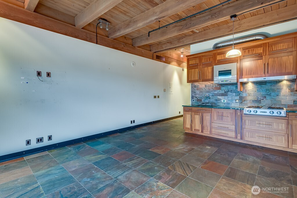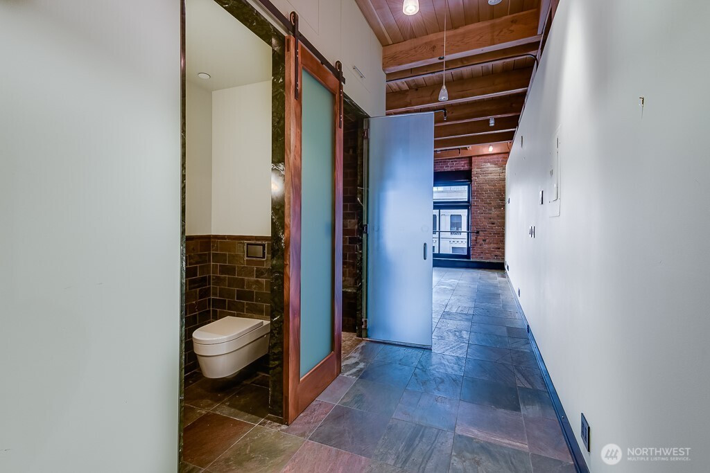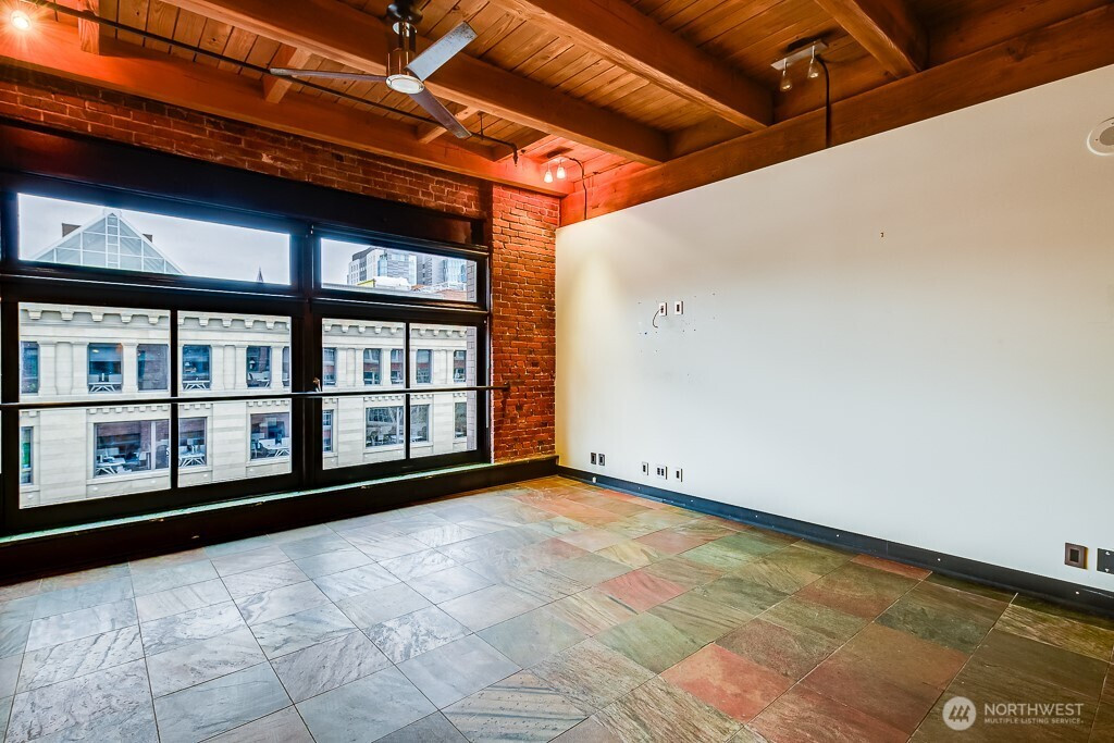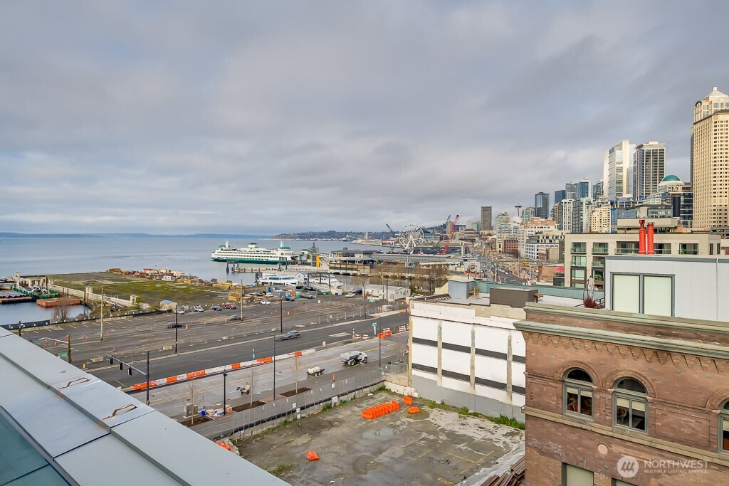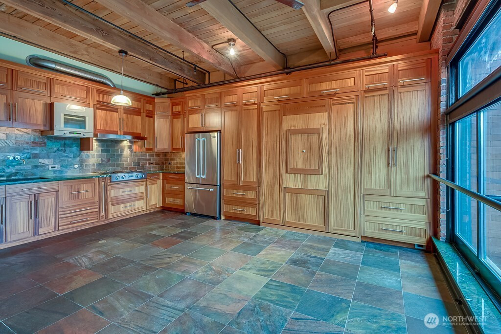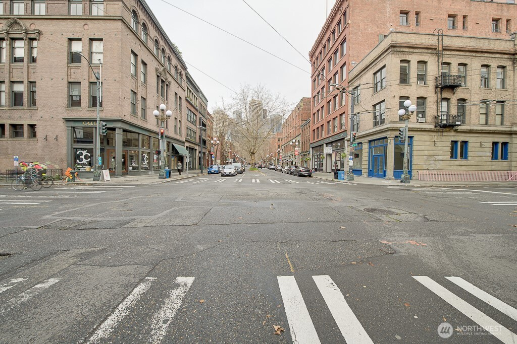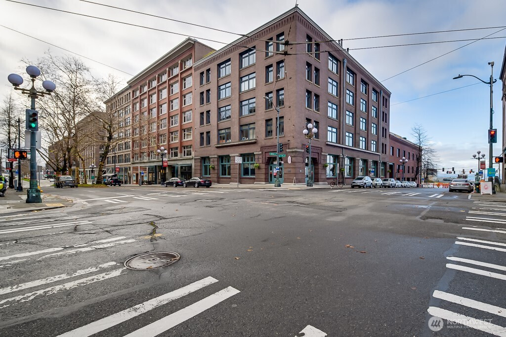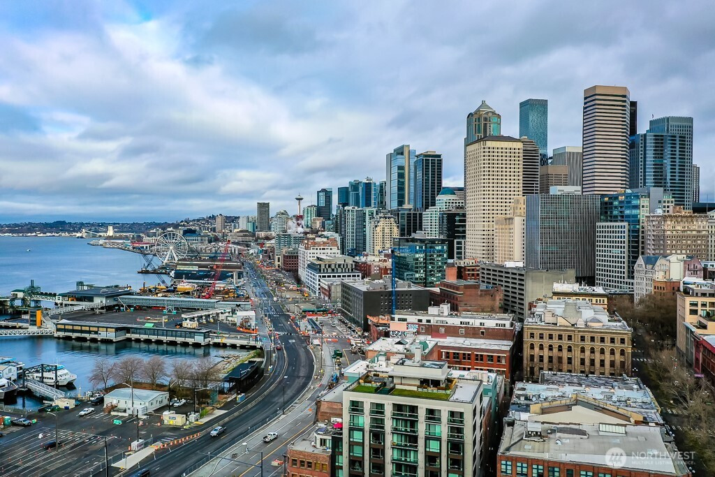 Perfectly positioned near premier galleries, iconic stadiums, and acclaimed restaurants, with a very fast elevator to the 5th floor, this home is a refined showpiece in Seattle’s most sought-after urban district. A stunning top-floor condominium in the heart of historic Pioneer Square, in a very secure building that also boasts a private parking space in a secure garage, while offering sweeping city views and an exceptional, fully reimagined pied-à -terre. Over $300,000 has been invested in premium, high-end craftsmanship, thoughtfully designed to maximize every inch of space. The residence features gorgeous granite countertops, rare mahogany cabinetry, and a spa-inspired steam shower. A hidden Murphy bed enhances functionality, while custom stainless-steel appliances—including a Gaggenau Lift Oven, gas cooktop, and cabinet-integrated dishwasher—deliver both style and performance. Vaulted ceilings showcase reclaimed old-growth beams from Bainbridge Island, complemented by heated slate flooring throughout. Additional highlights include extensive concealed storage, a built-in wall-mounted tank toilet, floating sink, and in-unit washer and dryer. Ideally located just blocks from stadiums, renowned dining, cafés, and vibrant nightlife, with easy access to mass transit, ferries, and major highways. Situated near the revitalized Seattle waterfront, large picture windows that open for that perfect sea breeze, & having a private secure downtown covered parking garage is ideal.