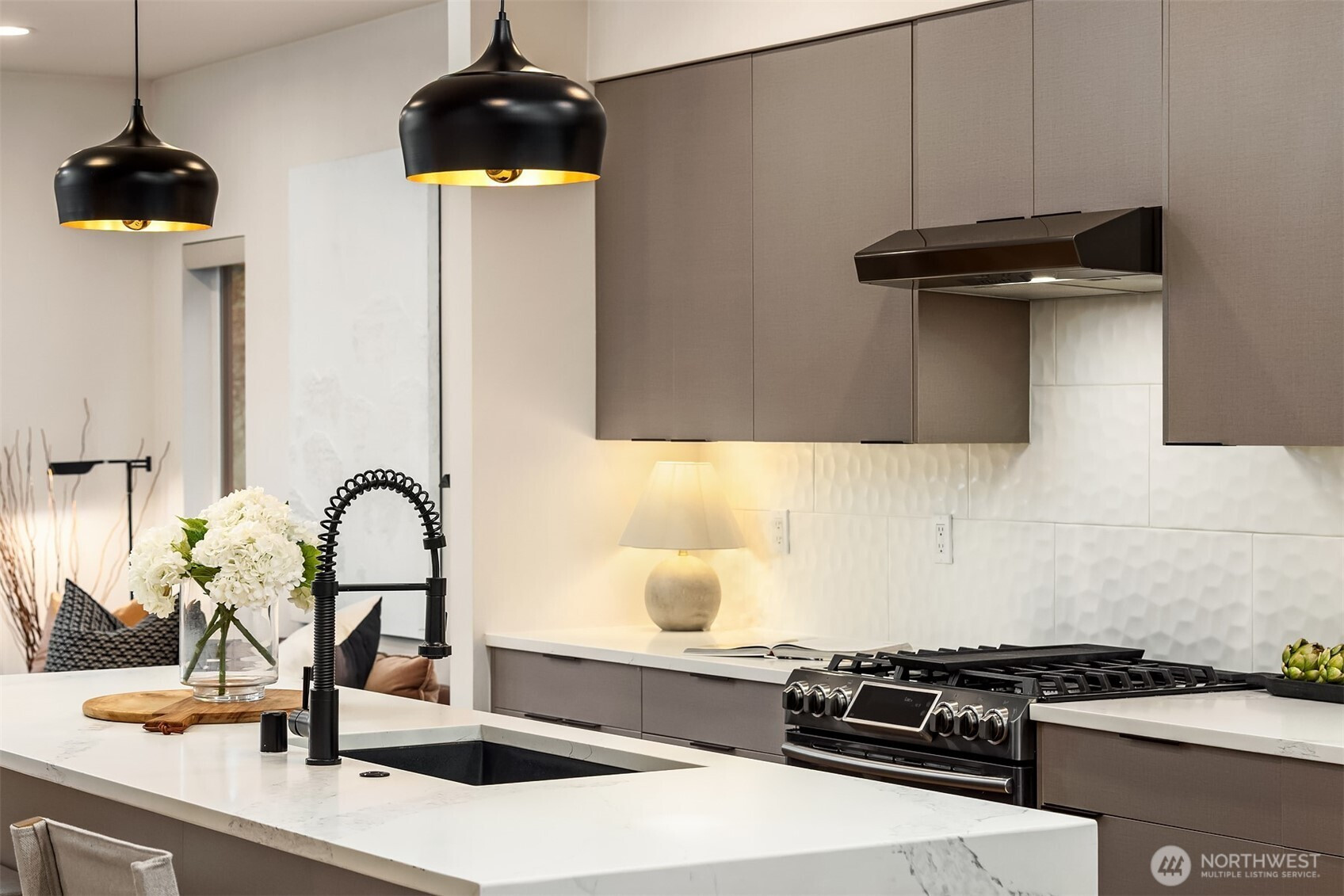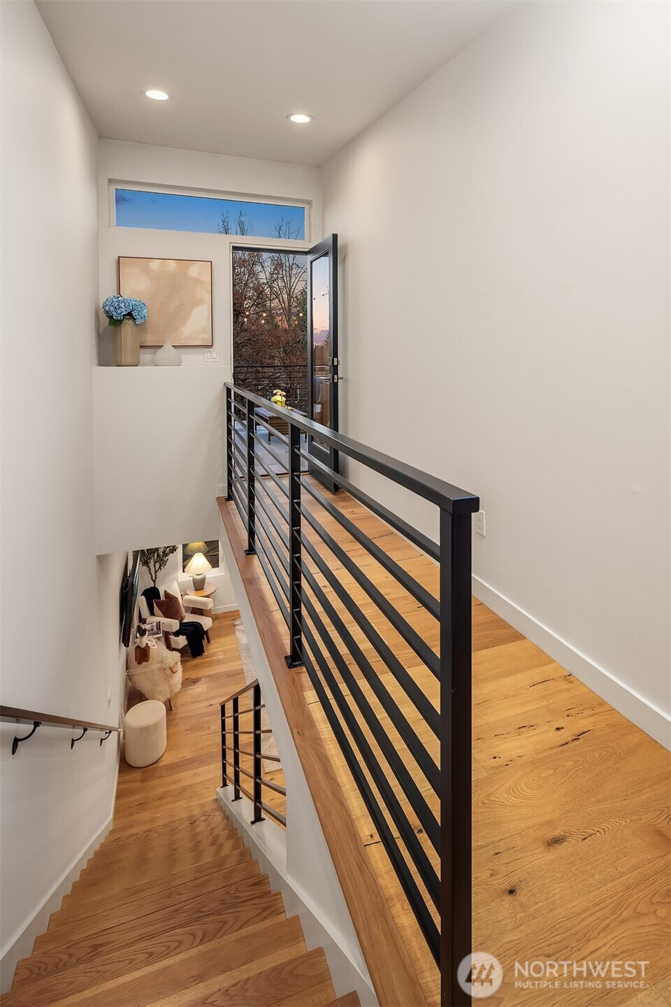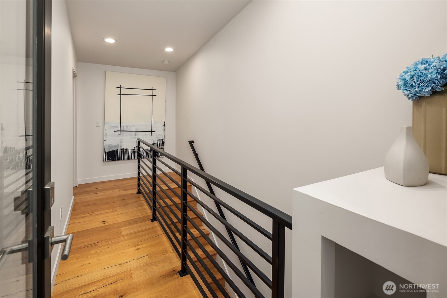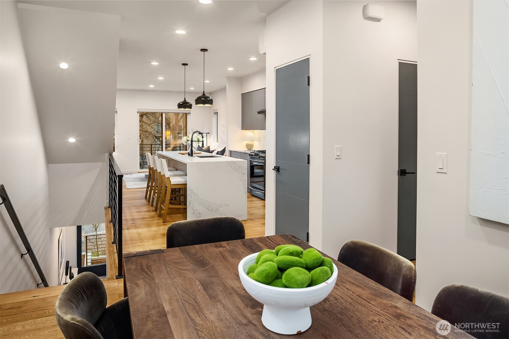 A rare Seattle find, this Medici Architects–designed Maple Leaf home lives far larger than expected. A bright, south-facing end unit, it’s drenched in natural light and designed for effortless entertaining. The open floor plan is anchored by a chef’s kitchen with quartz counters, gas range, stainless appliances, and a true entertainer’s island. A chic powder room off the main living area adds a level of ease and polish rarely found in homes like this. The entry-level second bedroom offers ideal guest or office flexibility, while upstairs the primary suite feels like a quiet retreat, complete with a luxurious bathroom and custom Elfa walk-in closet. Both bedrooms are ensuite. Hardwood floors, custom blinds, on-demand tankless hot water, and efficient ductless heating and A/C elevate everyday living. An oversized one-car garage easily doubles as a gym or flex space, and the **rooftop deck, just one level from the living space**creates seamless indoor-outdoor flow. Enjoy excellent proximity to Maple Leaf shops, I-5, Green Lake, light rail, Maple Leaf Park, dining, and transit. Big living. Sun-filled. Truly rare.