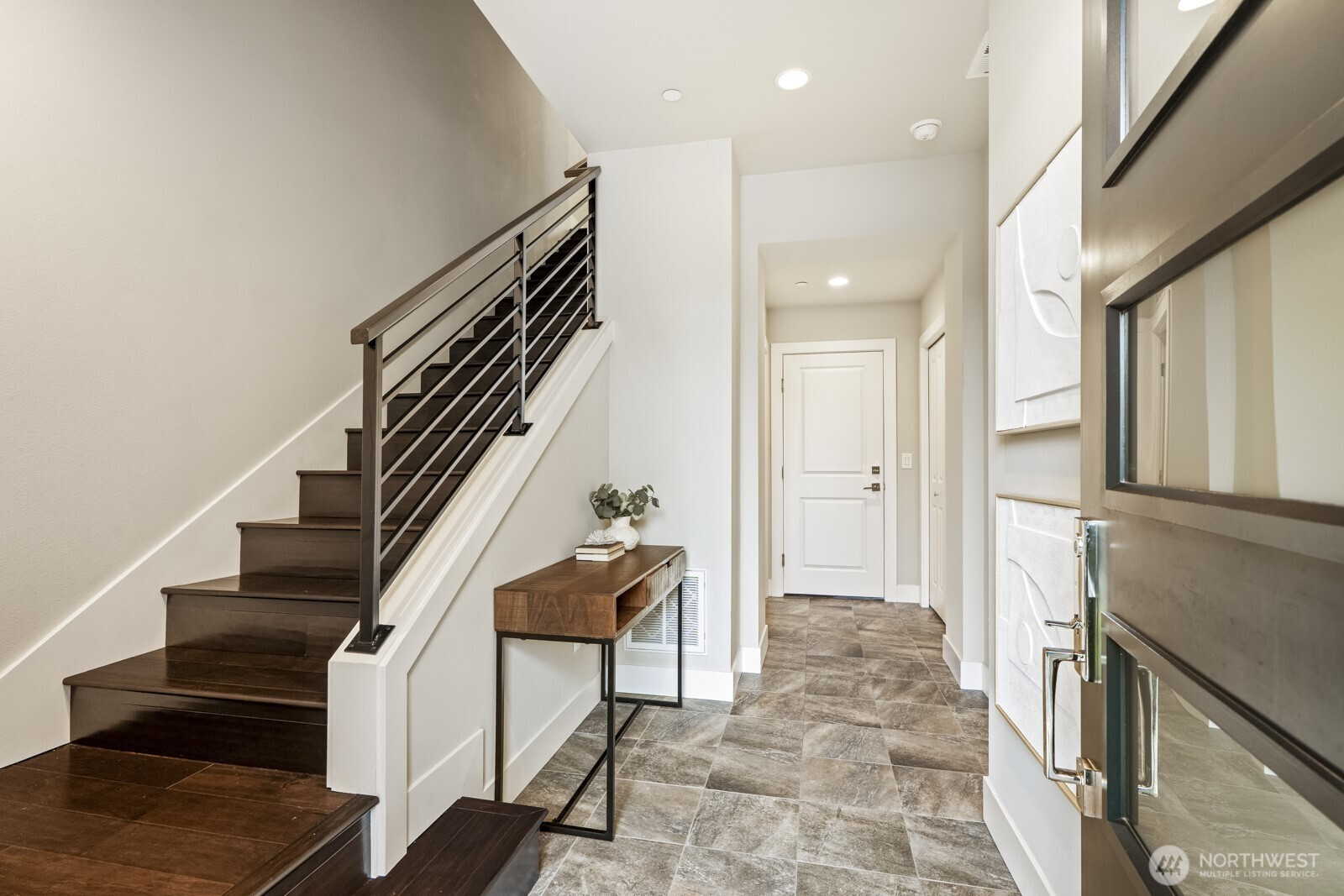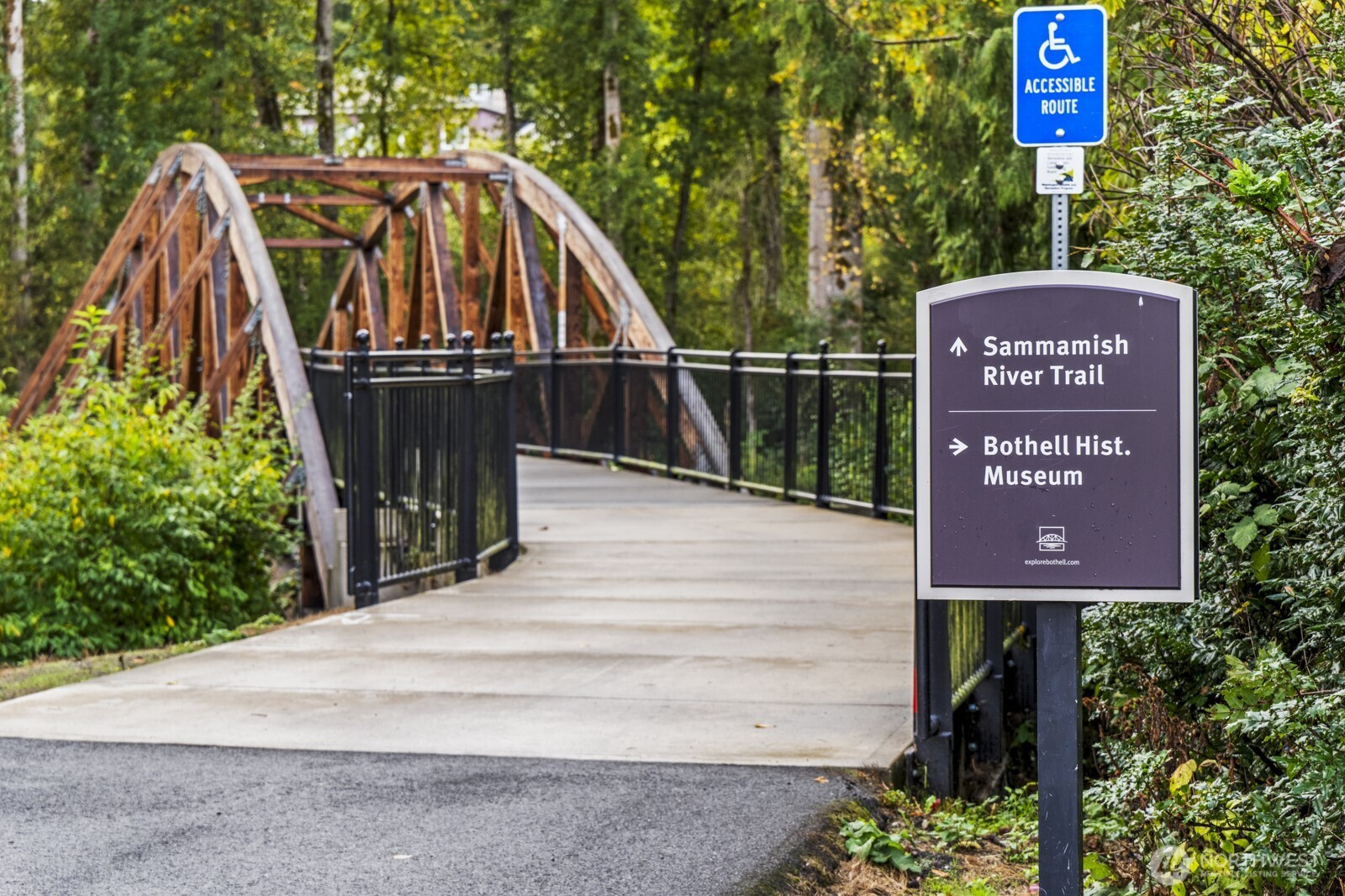 This stunning corner townhome features soaring 9’ ceilings & floor-to-ceiling windows that flood the open-concept space w/ natural light. $30K in upgrades, incl a gourmet kitchen w/ premium appliances, quartz counters, central AC & a sleek tile-wrapped gas fireplace. Desirable main-floor ensuite, spa-like primary suite w/ spacious dual shower & walk in closet AND a private covered balcony. Steps away from dining, parks & trails, incl the Burke Gilman plus a 2-car garage. Uniquely positioned corner unit is offset from other homes providing privacy & unobstructed views. Nestled in the heart of downtown Bothell in the desirable Northshore School District w/ convenient access to Bellevue & Seattle, it is truly a move-in-ready urban sanctuary!