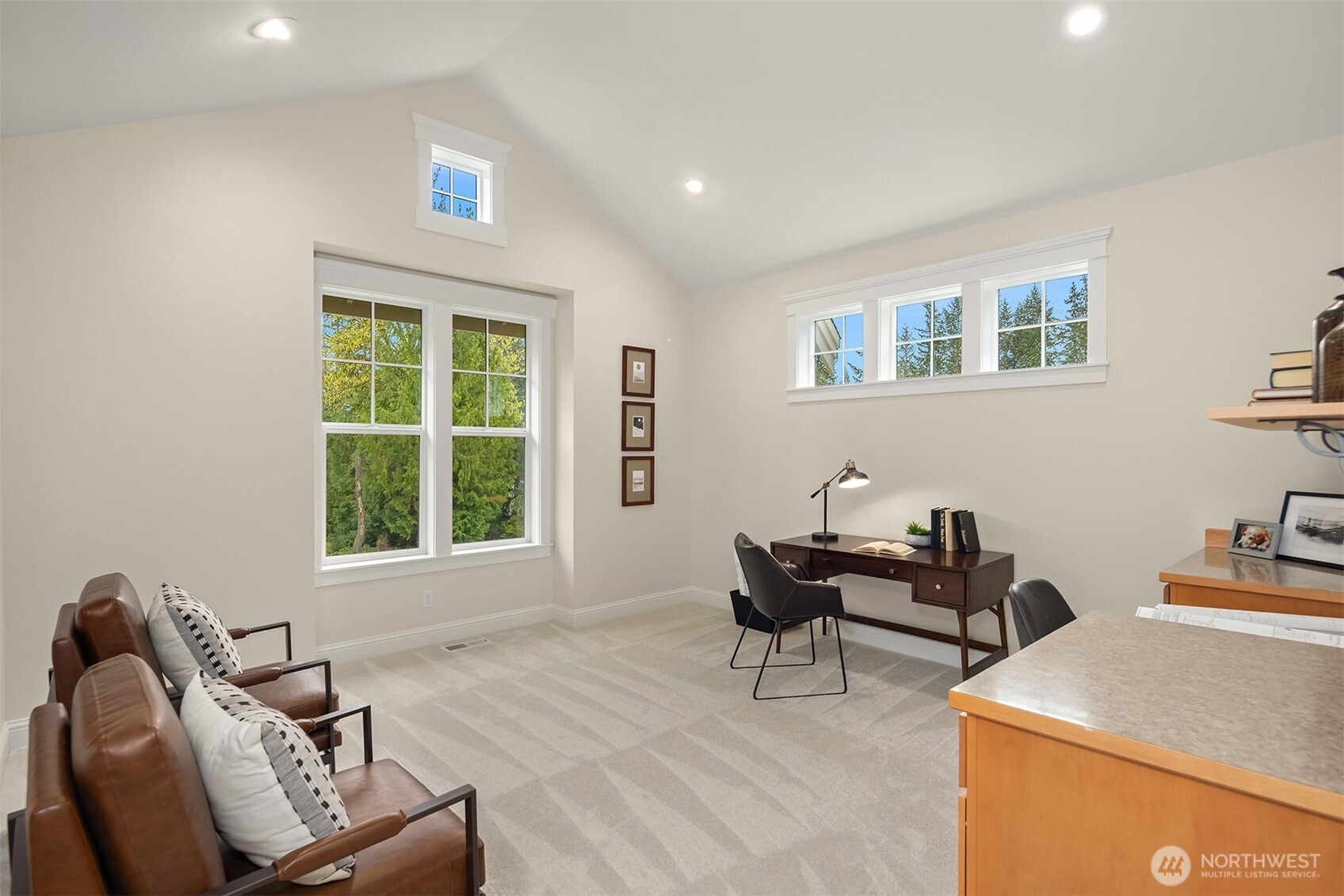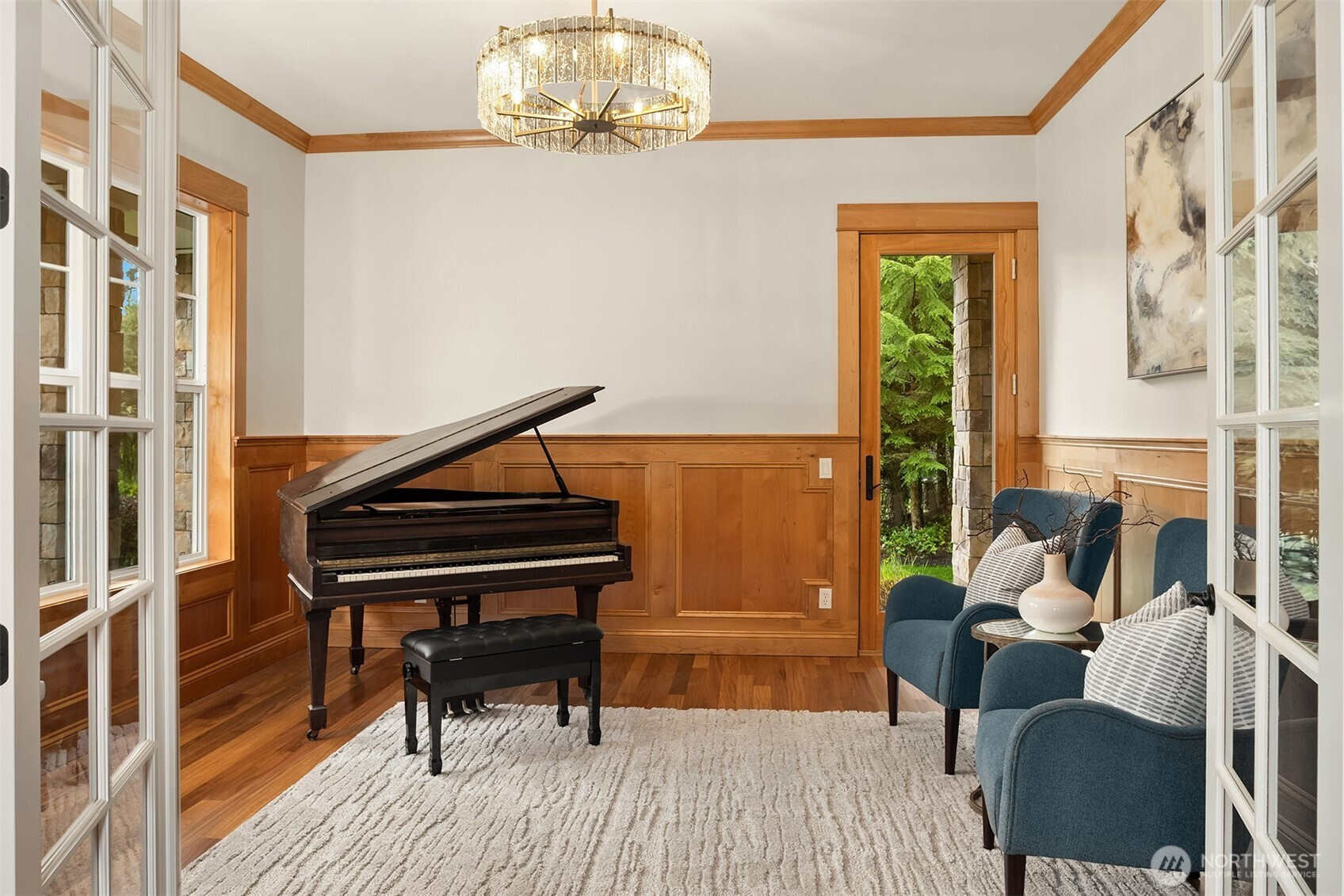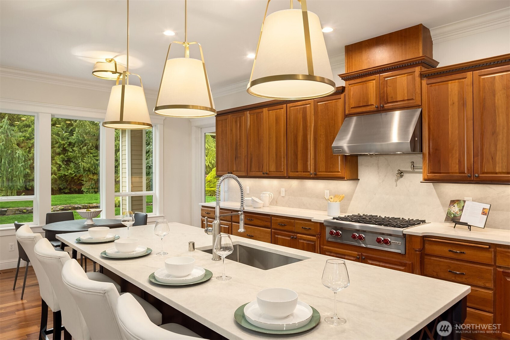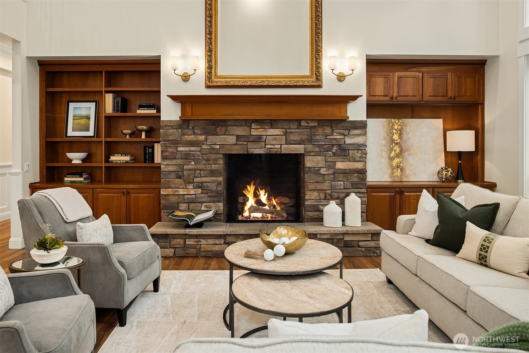 Discover refined Northwest living in Redmond’s desirable Union Hill, where timeless craftsmanship meets modern luxury on a generous acreage lot in the sought-after Lake Washington School District. A grand two-story foyer with statement chandelier creates a stunning first impression, opening to an expansive great room with soaring ceilings, fireplace centerpiece & walls of windows filling the space with natural light. The chef’s kitchen is designed for everyday living & elevated entertaining, featuring cherry cabinetry, Solitaj brushed quartz counters, Wolf rangetop and double ovens, Sub-Zero fridge, new Thermador dishwasher, and a new microwave, plus a butler’s pantry connecting seamlessly to the formal dining room. A versatile front room offers ideal space for office, music, or additional living. The main-level primary suite serves as a private retreat, complete with a fully remodeled, spa-inspired bath featuring a freestanding soaking tub, a walk-in shower, and heated floors. Upstairs includes one bedroom with ensuite bath, two additional bedrooms, a full hall bath, a dedicated office or flex room, and a spacious media/bonus room w/ wet bar. Beautifully updated throughout, the home features newly refinished Brazilian teak hardwood floors, all-new carpet & fresh interior paint. Enjoy a fully fenced 1.05-acre setting with outdoor grill, wood-burning fireplace & space to relax, entertain or play. 3-car garage. Close to Microsoft, Nintendo, parks, trails & daily conveniences.