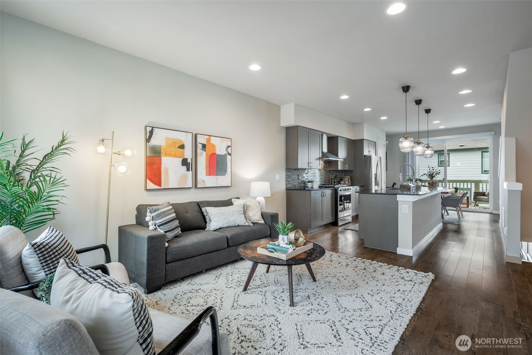 So much to love about this home. Set in a quiet planned community with sidewalks, well-kept parks, and a true sense of pride of ownership, this townhome offers an excellent layout and ease of living throughout. The open kitchen anchors the main level with quartz counters, gas cooking, pantry storage, and a large welcoming island with seating. The living room with fireplace, office nook, and dining area flow seamlessly to a covered west-facing deck. Upstairs are 2BD/1.75BA, including a spacious primary suite with ample closets and an ensuite bath with a double vanity, quartz & tile finishes. The lower-level functions as its own private suite with a third bedroom and bath, ideal for guests or private home office. Outside, enjoy an easy-care patio and garden, fully fenced for furry friends. New carpet throughout, off-street parking, and dues that cover exterior maintenance and neighborhood upkeep. Close to parks, libraries, and shopping, and just a 10-minute walk to White Center favorites like Beer Star, Carniceria El Paisano’s beloved tamales, great pho and plenty of taco trucks. Just 3 miles to Lincoln Park and Puget Sound, 7 miles to downtown Seattle, and 8 miles to Sea-Tac. Easy living, great commuting, and excellent value!