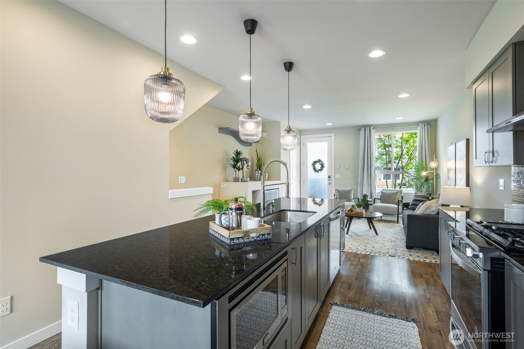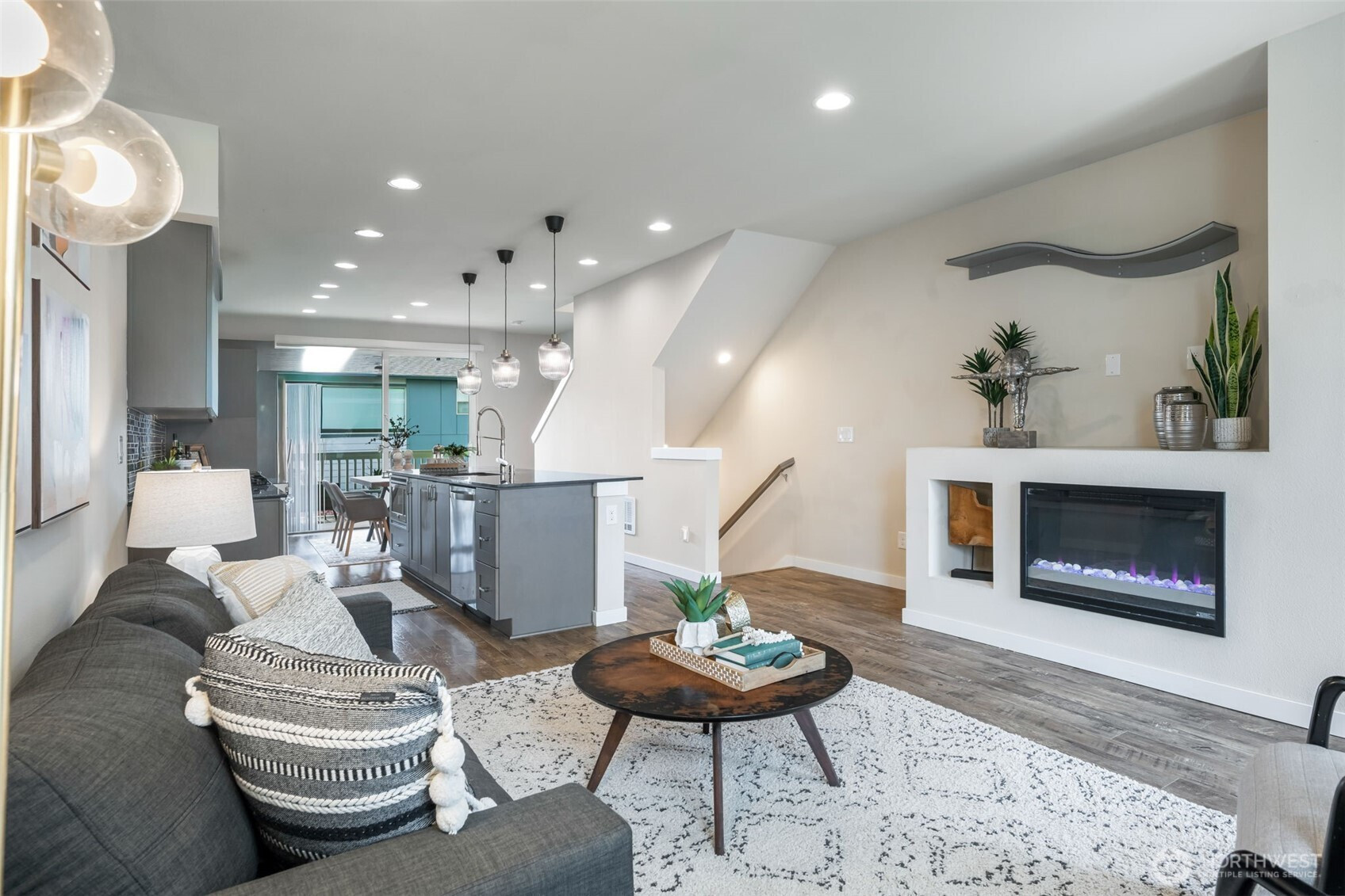 So much to love about this home. Set in a quiet planned community with sidewalks, well-kept parks, and a true sense of pride of ownership, this townhome offers an excellent layout and ease of living throughout. The open kitchen anchors the main level with quartz counters, gas cooking, pantry storage, and a large welcoming island with seating. The living room with fireplace, office nook, and dining area flow seamlessly to a covered west-facing deck. Upstairs are 2BD/1.75BA, including a spacious primary suite with ample closets and an ensuite bath with a double vanity, quartz & tile finishes. The lower-level functions as its own private suite with a third bedroom and bath, ideal for guests or private home office. Outside, enjoy an easy-care patio and garden, fully fenced for furry friends. New carpet throughout, off-street parking, and dues that cover exterior maintenance and neighborhood upkeep. Close to parks, libraries, and shopping, and just a 10-minute walk to White Center favorites like Beer Star, Carniceria El Paisano’s beloved tamales, great pho and plenty of taco trucks. Just 3 miles to Lincoln Park and Puget Sound, 7 miles to downtown Seattle, and 8 miles to Sea-Tac. Easy living, great commuting, and excellent value!
