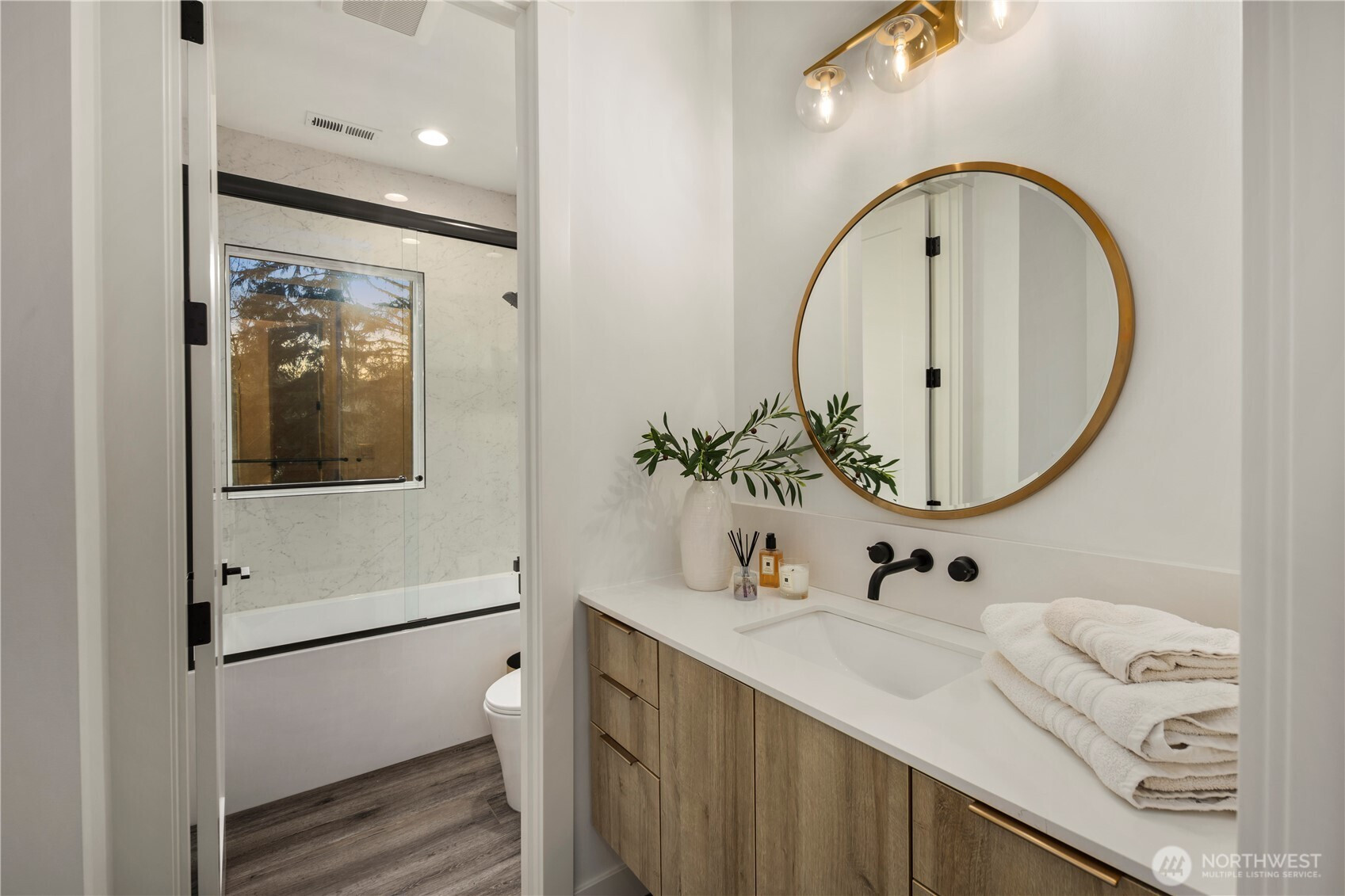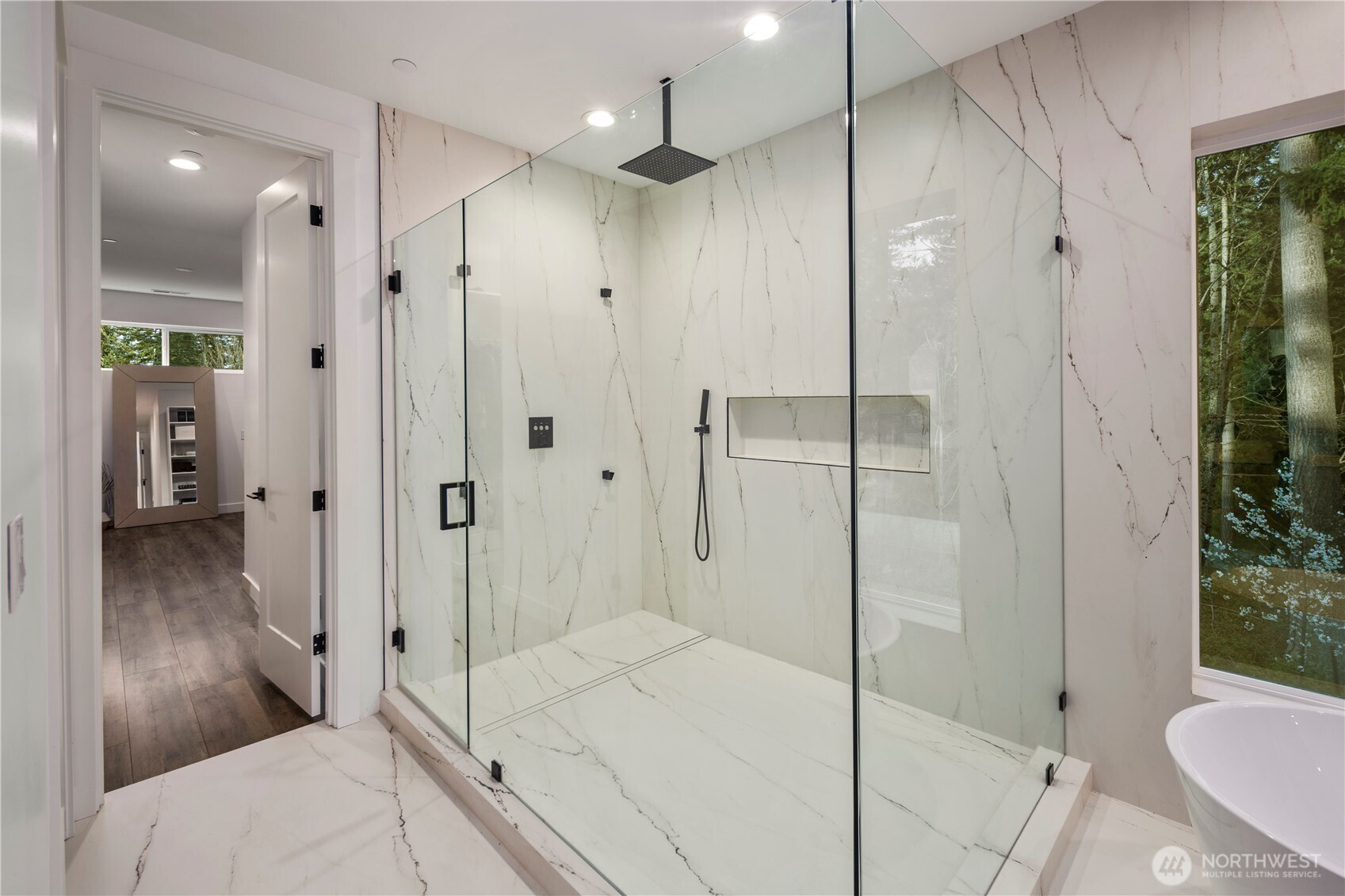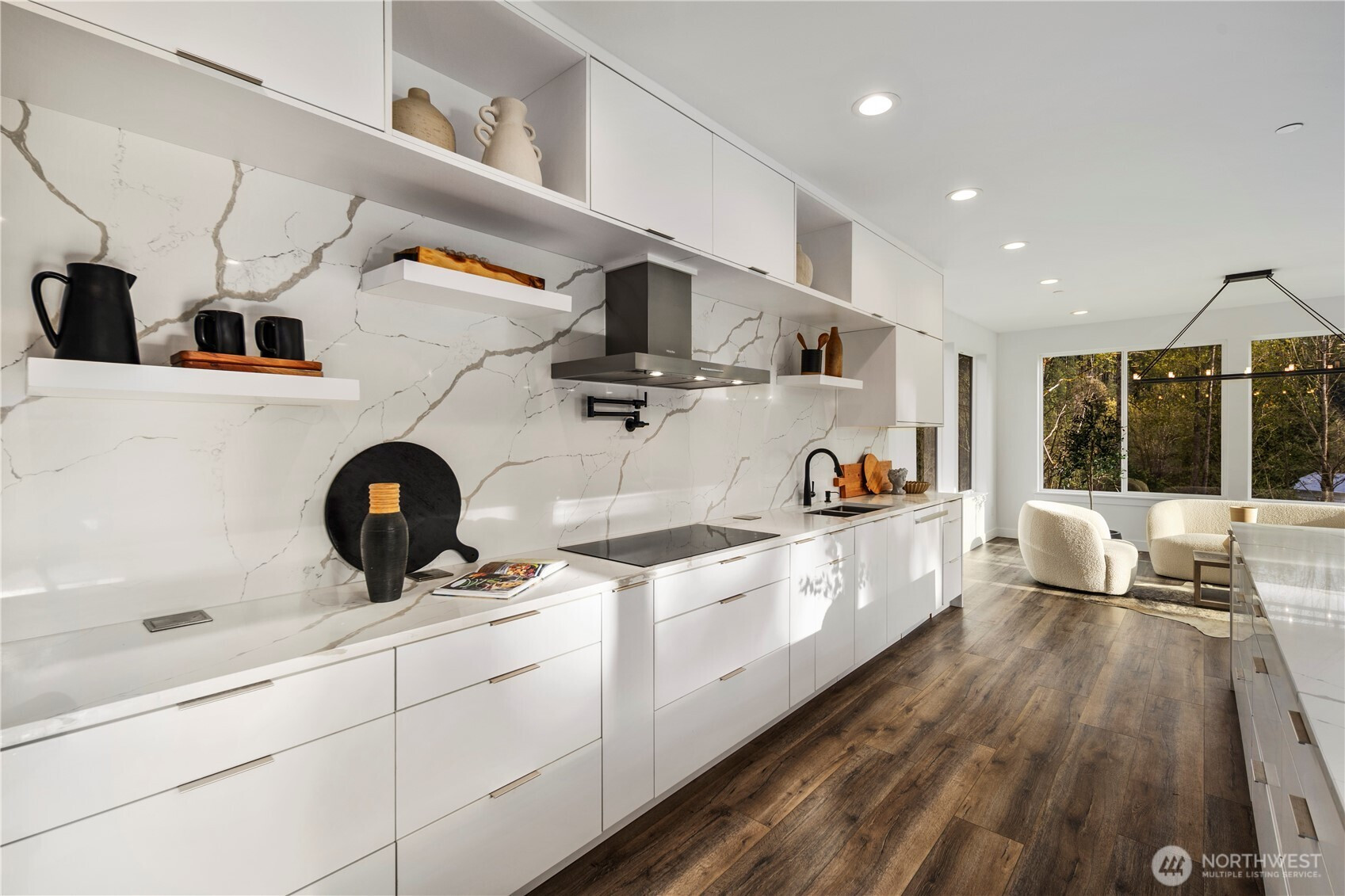 An extraordinary fusion of modern luxury and natural beauty, this 4,300 sqft Snoqualmie estate is a true sanctuary. Privately nestled on nearly an acre the home showcases soaring ceilings, a striking floating staircase, and exquisite designer finishes throughout. The custom European-inspired kitchen features sleek white cabinetry, state-of-the-art Miele appliances, and a dramatic 14’ waterfall island. Indulge in the spa-like primary suite with a double shower, soaking tub, and expansive walk-in closet. A main-level office, generous lower-level living space with separate entrance, and outdoor terraces, create a lifestyle of comfort and distinction. Effortless access to I-90, Bellevue, and award-winning schools. Timeless elegance, redefined.