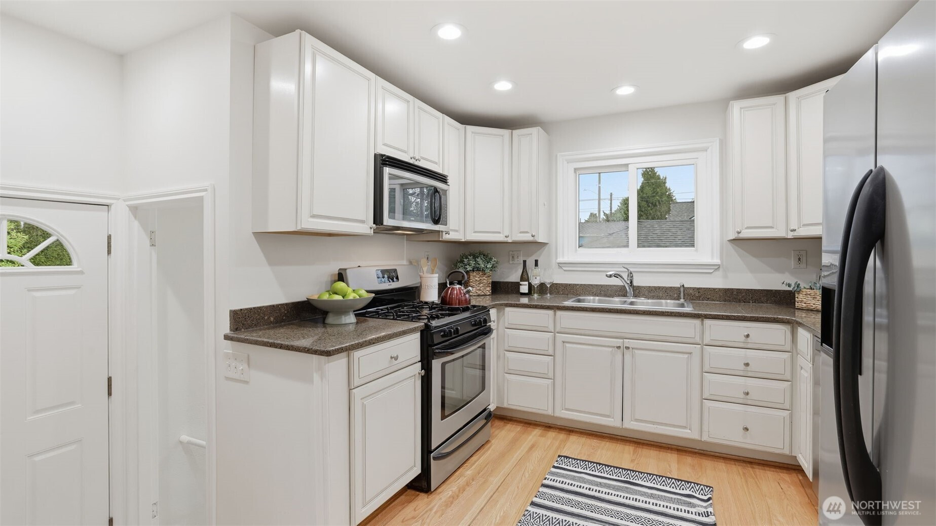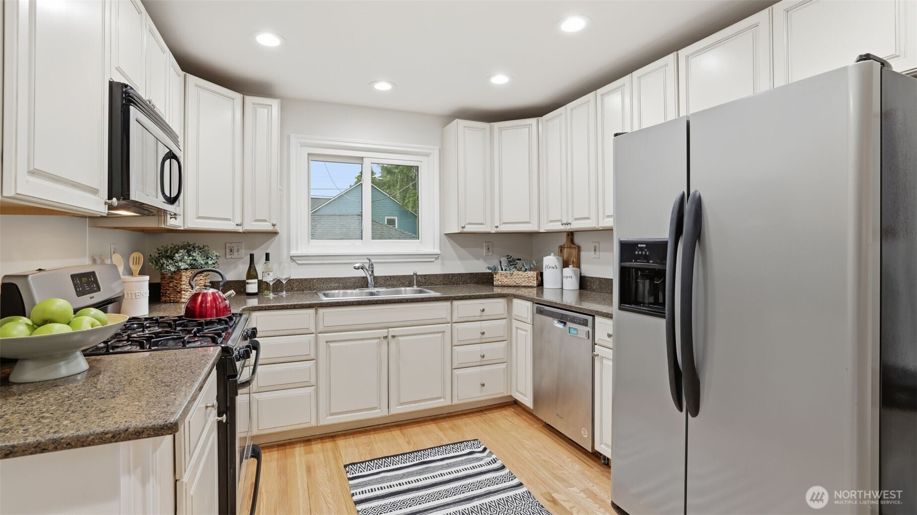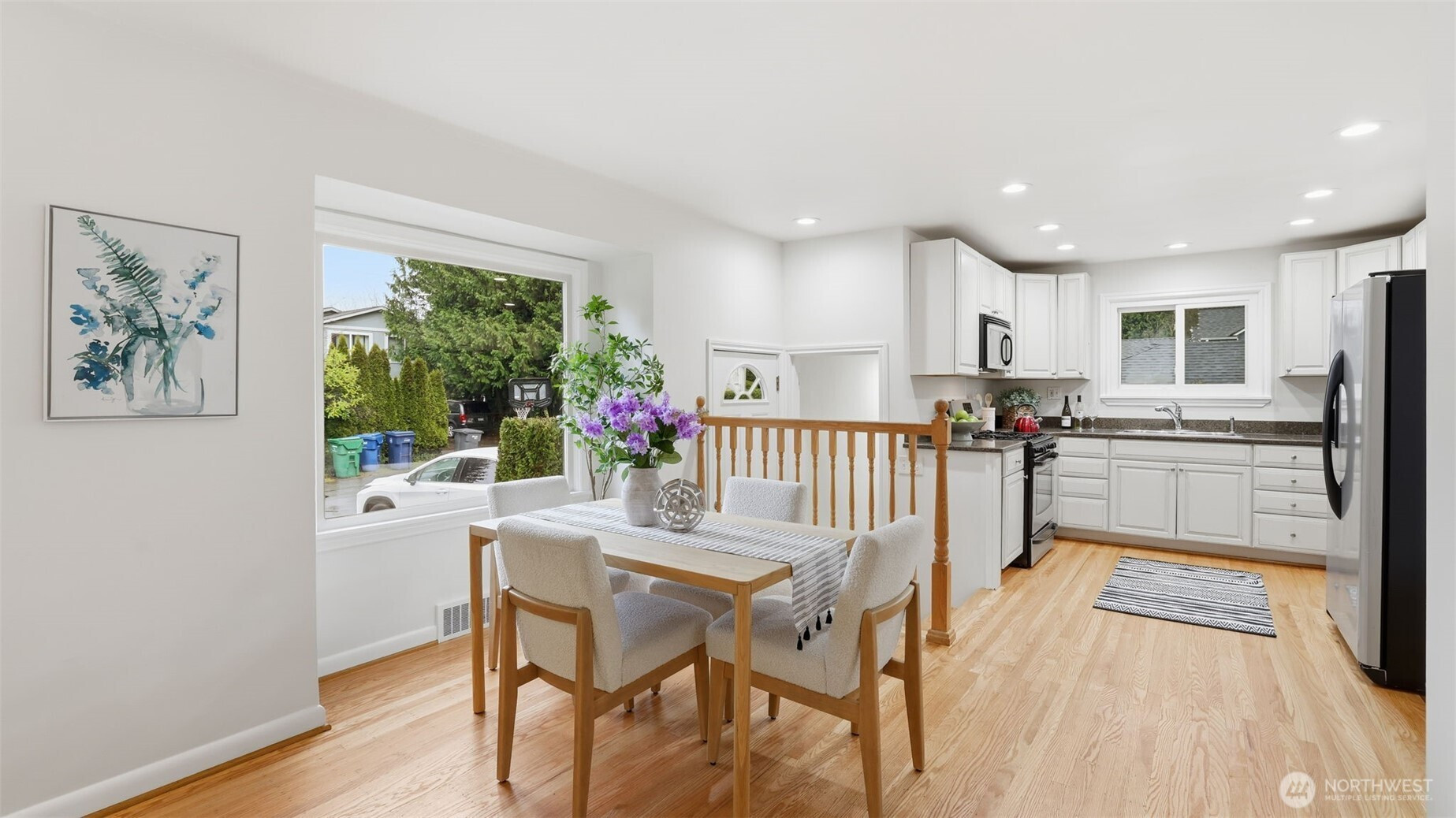 Welcome to this beautifully refreshed 4-bedroom, 2 full bath home in the Greenwood neighborhood, perfectly situated on a corner lot with a brand-new 30-year roof. Bright and inviting, the home features new interior paint, newly refinished hardwood floors, new light fixtures, and plentiful windows create a welcoming and comfortable living space. The open layout is anchored by a cozy wood-burning fireplace, while the finished basement adds flexible space for living, working, or entertaining. Additional highlights include a newer furnace, a detached garage, ample off-street parking, and a spacious deck on a level lot—perfect for outdoor enjoyment. Conveniently located near public transportation and just minutes from major highways.