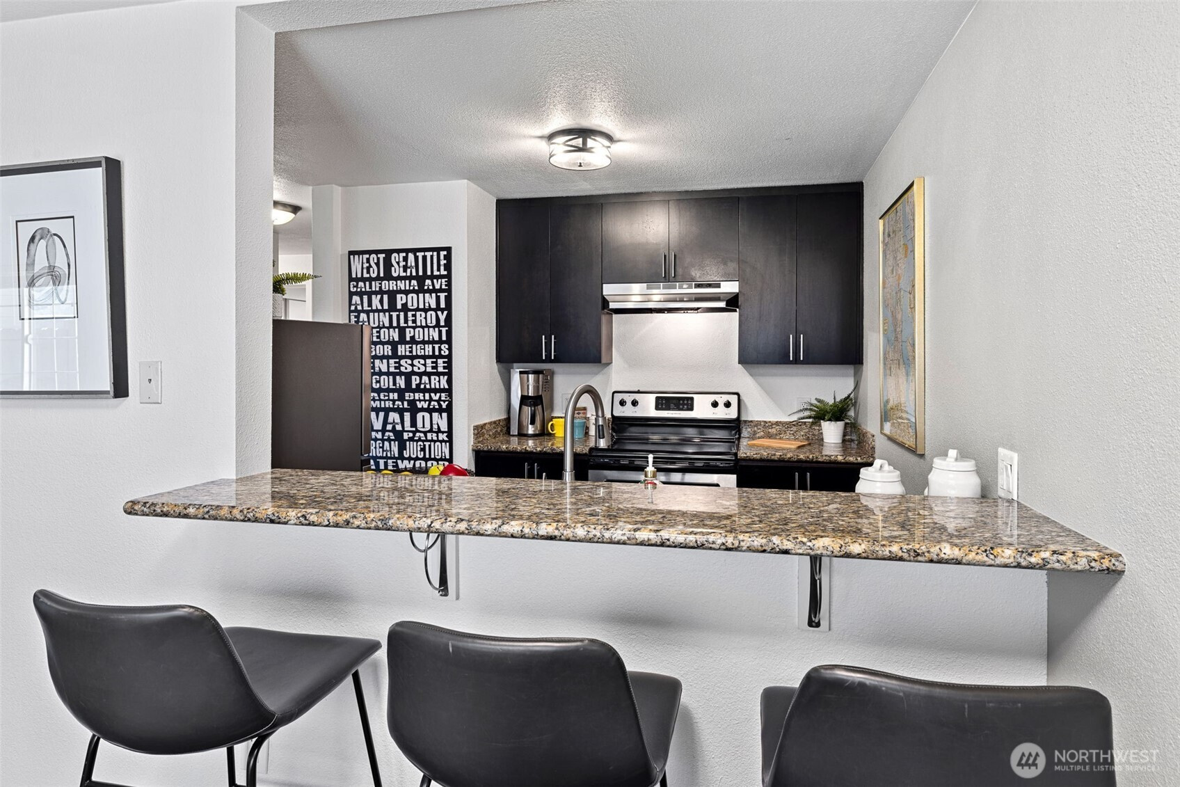 Turn the key & step into homeownership in this fabulous unit at Westwood Terrace! An open, functional layout boasts dining room and living room with a wood-burning fireplace, a private patio, in-unit laundry & a kitchen with/ granite counters & newer appliances. Views of a private, peaceful greenbelt and yard. 2 spacious bedrooms each have large closets & great natural light, while the primary also boasts a fully renovated ensuite bath. Designated carport parking & no rental cap make this a smart investment in this blossoming neighborhood. Access to bus lines heading downtown & shopping at Westwood Village blocks away, as well as Fauntleroy Park, Lincoln Park, & all the fun restaurants, nightlife & festivals in White Center. Dogs and cats welcome.