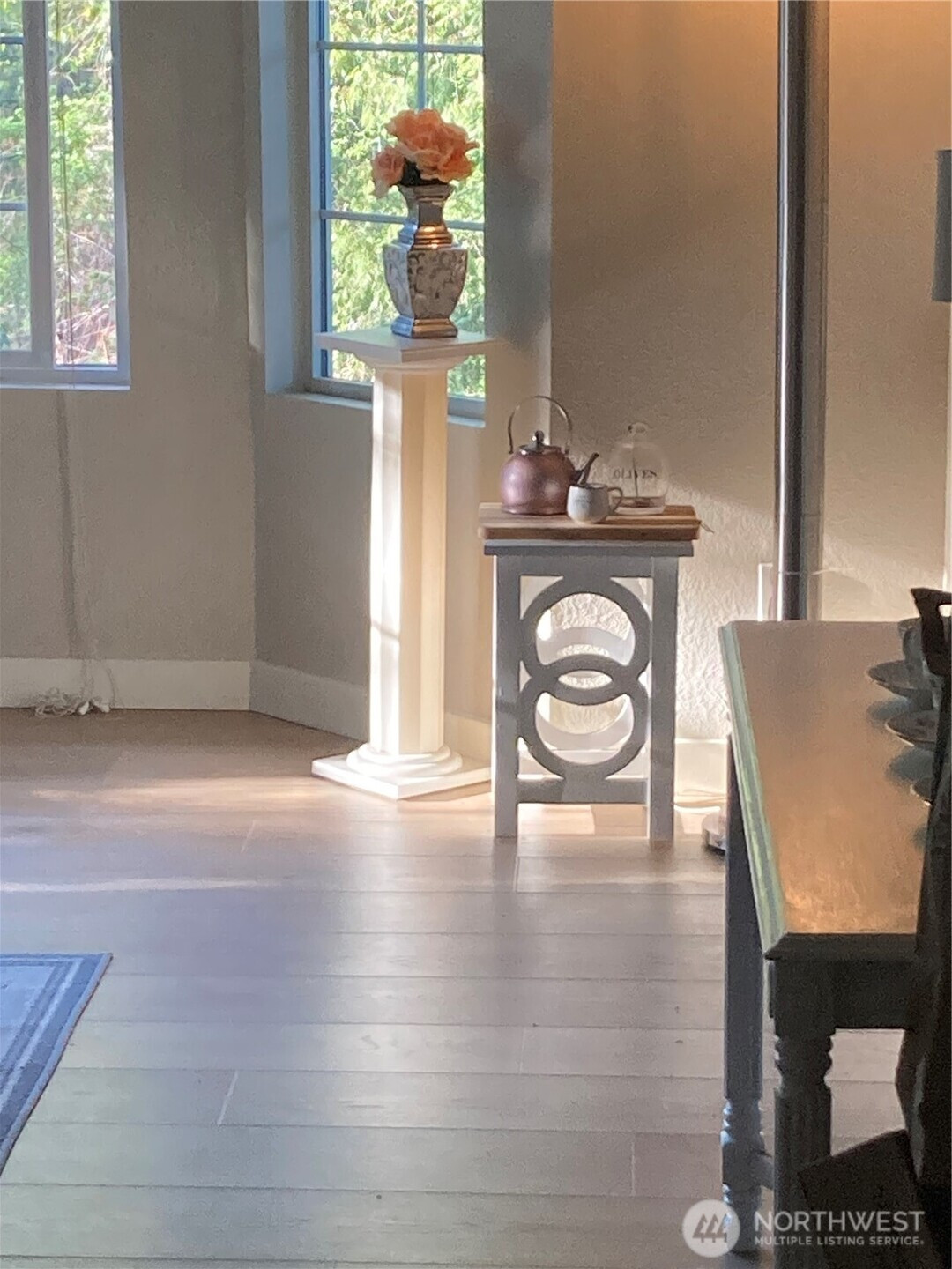 Tucked quietly beside Juanita Creek, this rare end-unit condo offers a peaceful, tree-lined setting with ultimate privacy. Step inside to brand-new luxury vinyl plank flooring that brings a fresh, elevated feel. The open layout features a cozy wood-burning fireplace, defined dining area, and a kitchen with slab granite counters, stainless steel appliances, and plenty of storage. Two spacious bedrooms share a full bath with granite counters and tile flooring. Full-size in-unit laundry and a storage closet off the private deck add convenience. Enjoy the community pool, spa, clubhouse, and gym—just minutes from parks, beaches, dining, Totem Lake Village, and downtown Kirkland. No rental cap!