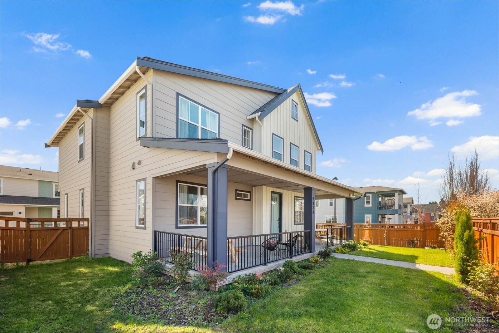 Beautiful resale home in Altamura community 5 beds 2.5 bath, a spacious open-concept kitchen with quartz countertops, a stylish tile backsplash, and under-cabinet lighting. The main level features elegant vinyl plank flooring and a cozy electric linear fireplace, complemented by a convenient bedroom and ¾ bath. Upstairs, the expansive primary suite offers a luxurious 5-piece bath with dual sinks, quartz surfaces, and tile flooring. You'll also find three generously sized bedrooms and a versatile bonus room. Step outside to a fully fenced, professionally landscaped yard and unwind on the covered side porch equipped with a gas BBQ stub, beautiful garden space with fruit trees. A must see!