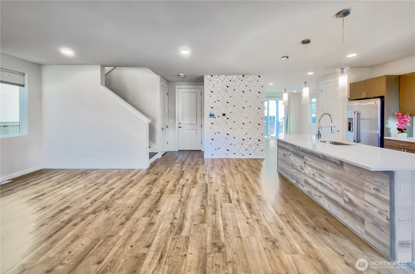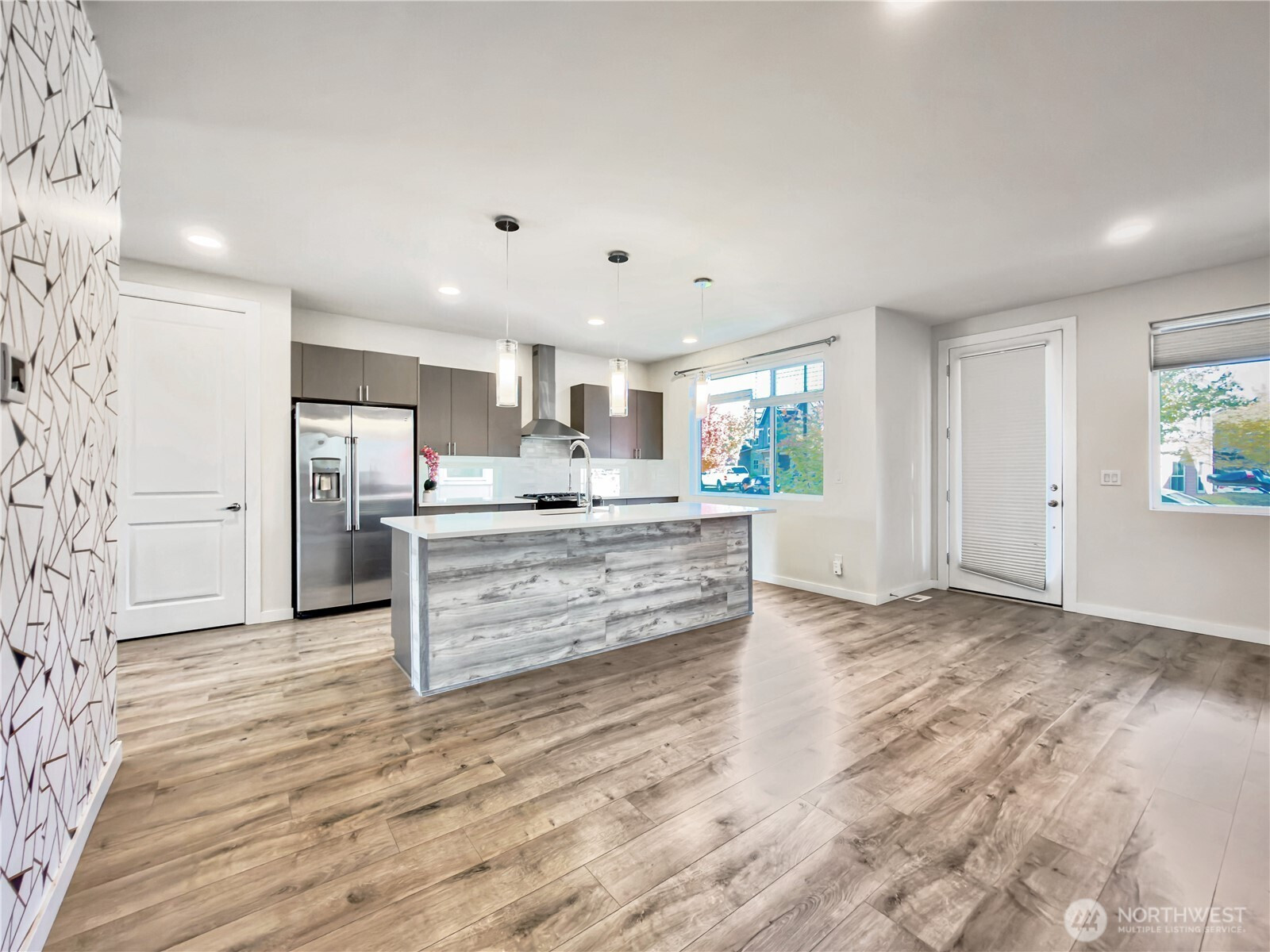 Welcome to your next chapter in the vibrant Greenbridge community! This bright and spacious home is designed with comfort in mind, featuring an open floor plan, vaulted ceilings, and large windows that flood the space with natural light. The heart of the home is the modern kitchen, perfect for meals and entertaining. It boasts granite countertops, stainless steel appliances, and a large island. Enjoy dinners in the connected dining area, or take the fun outside to the large covered patio and fully fenced backyard great for playtime, pets, or weekend barbecues. Upstairs, you’ll find four generous bedrooms with high ceilings and plenty of natural light. Minutes to Downtown Seattle & Alki.