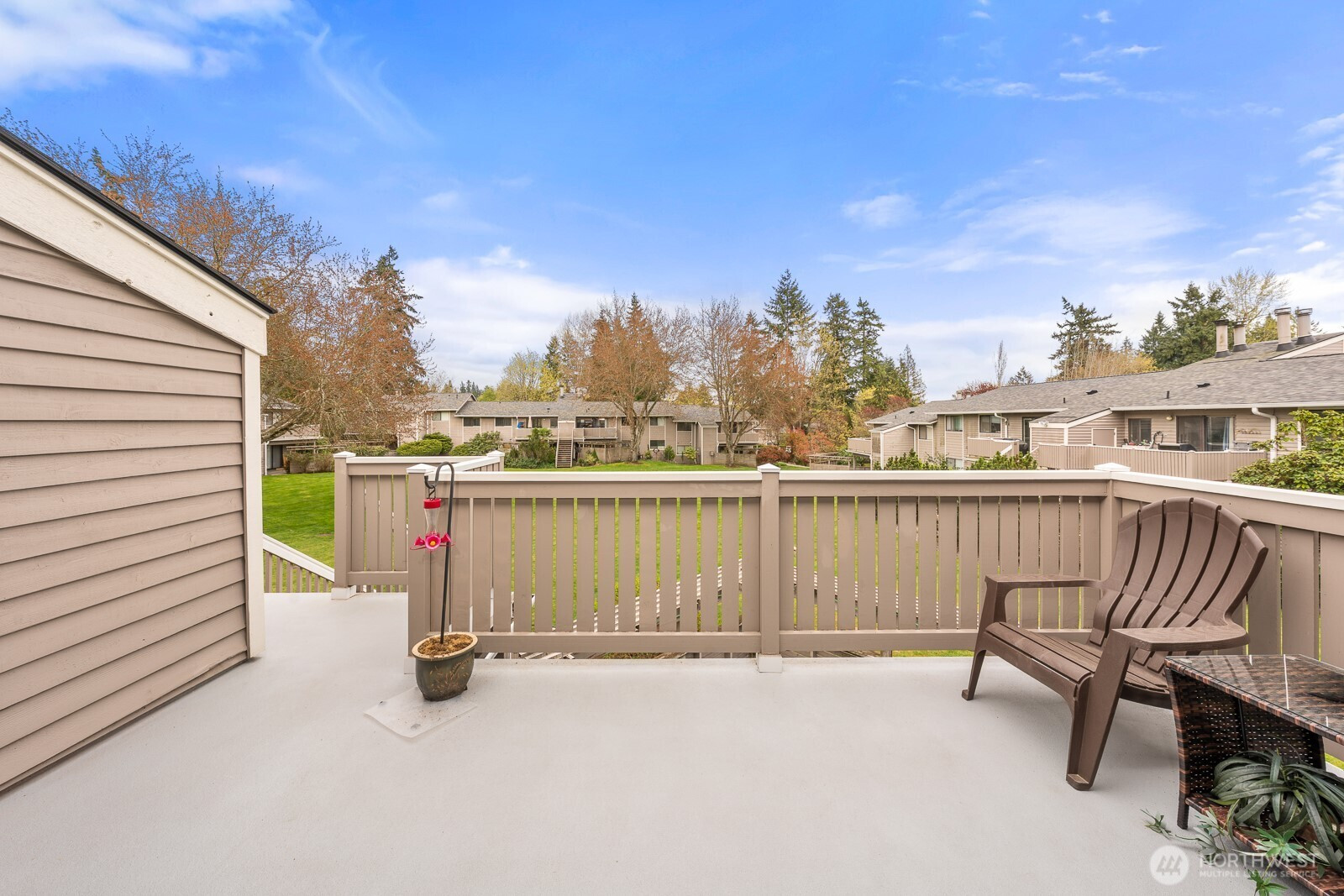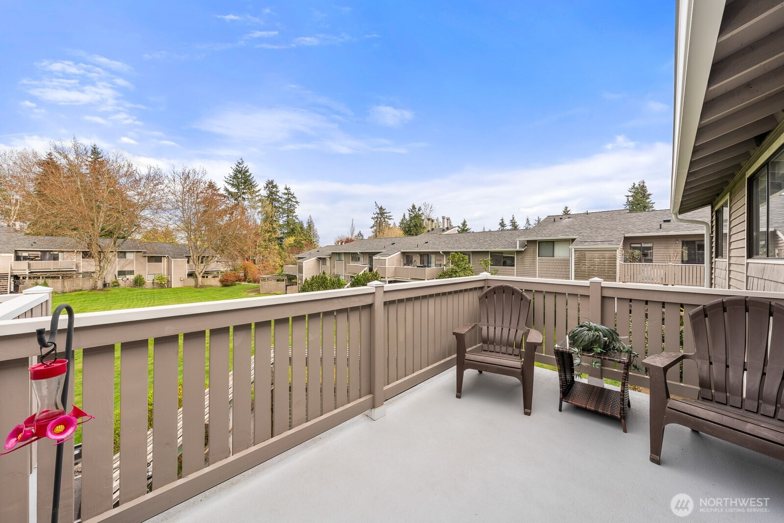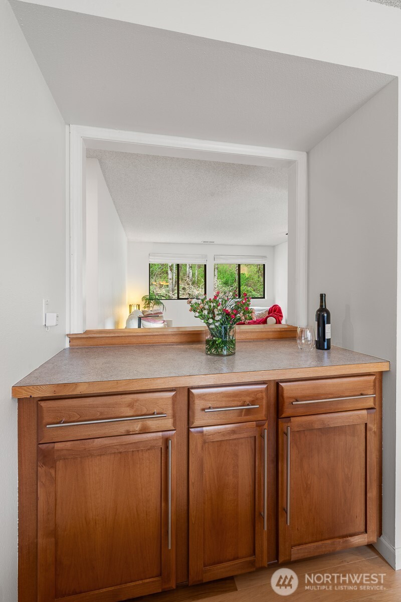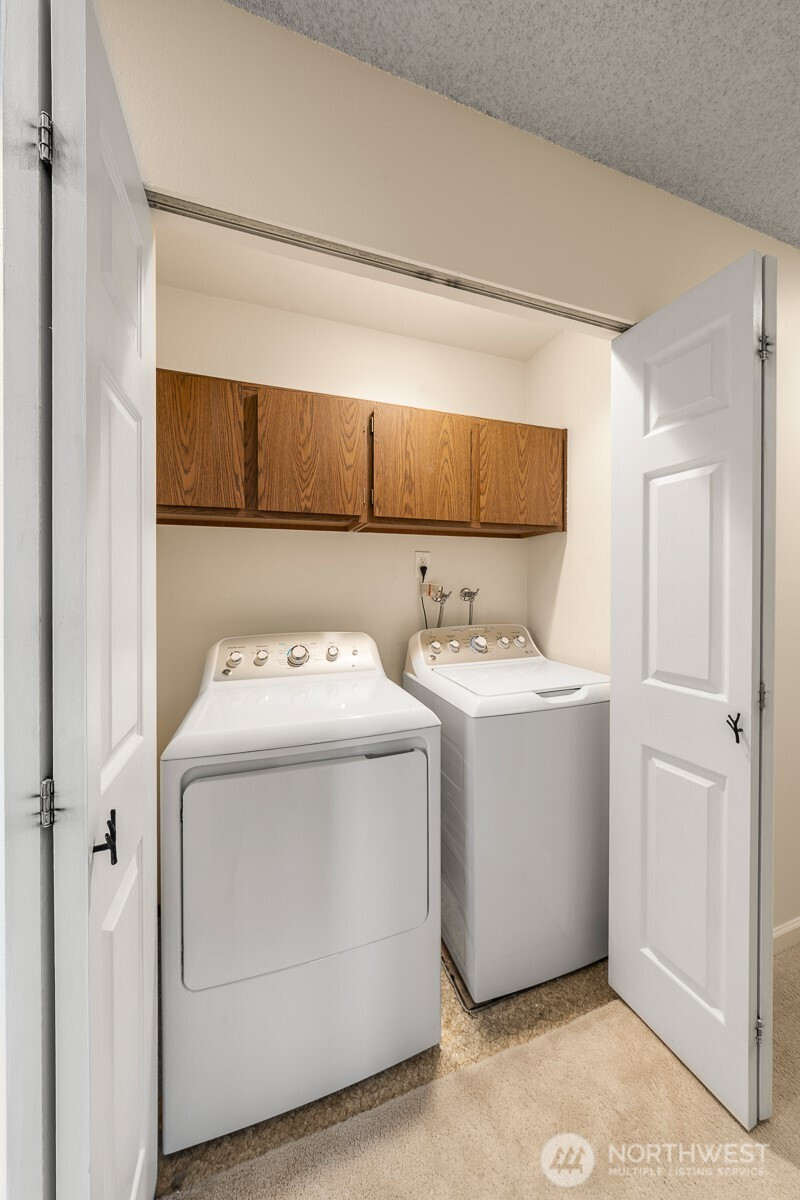 Welcome to your peaceful retreat! A 3 Bedroom, 2 Bath, top-floor, end unit condo with tons of natural light, a private deck, and an expansive, shared backyard to enjoy the beautiful PNW all year round. A spa-style bathroom in the primary with heated floors, a walk-in closet, and plush carpeting. This condo features an in-unit washer and dryer, 2 designated parking spaces, upgraded windows, new paint, cherry wood kitchen cabinetry, hickory hardwood floors, a wood burning fireplace, and a new induction cooktop. Outside feels like a nature preserve. This condo is a rare find! Close to Juanita Beach Park, Kirkland & Bothell with new sidewalks and bike lanes outside of the complex.
