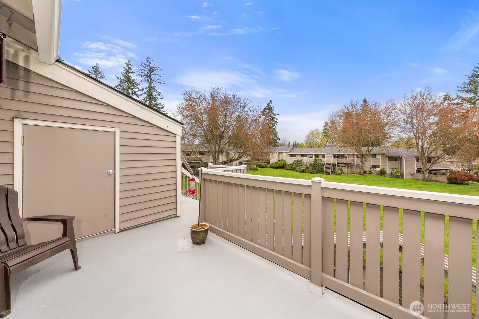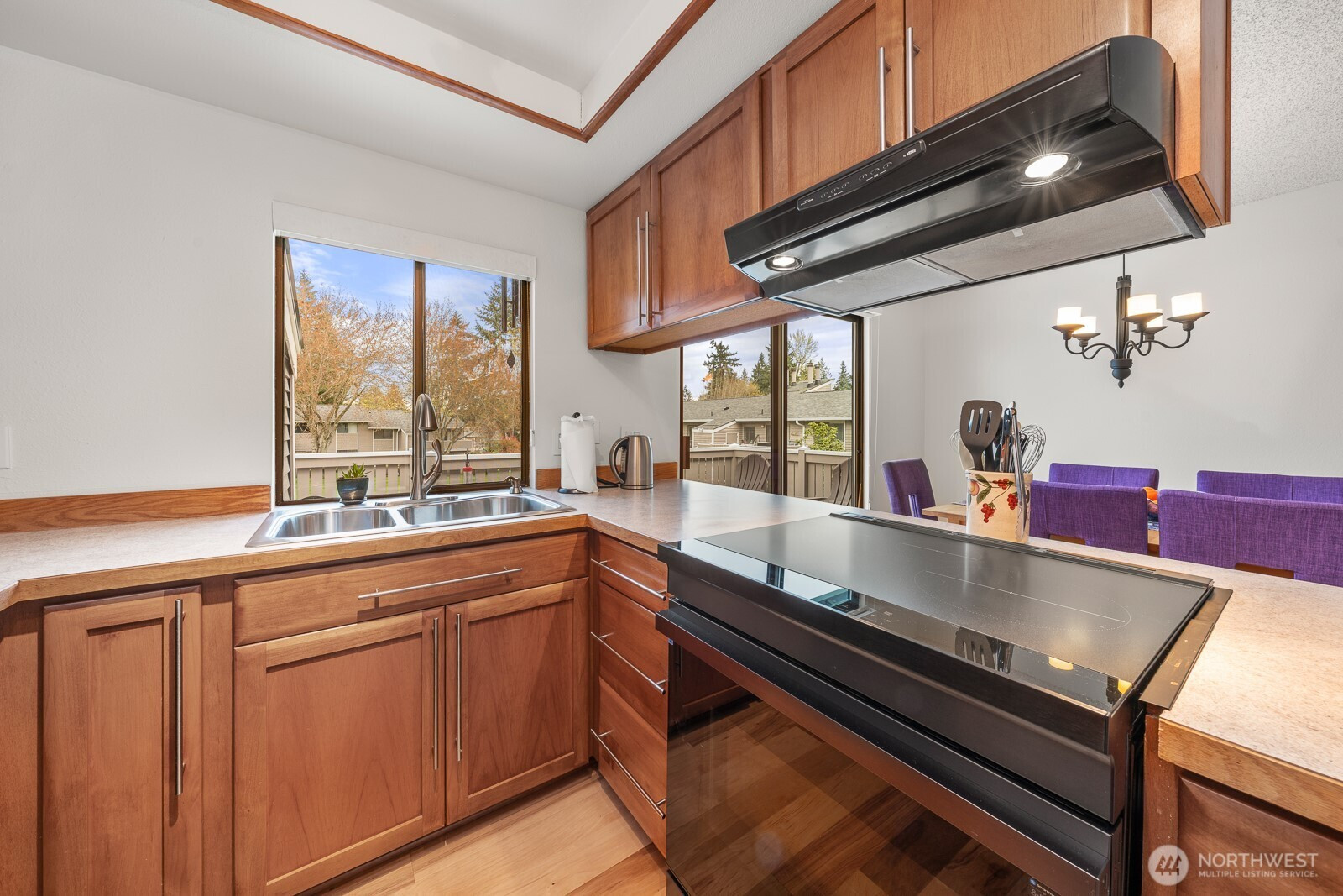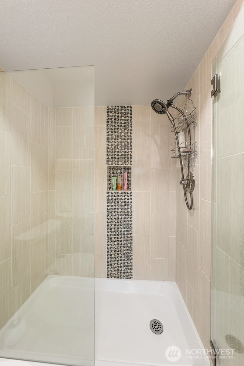 Welcome to your peaceful retreat! A 3 Bedroom, 2 Bath, top-floor, end unit condo with tons of natural light, a private deck, and an expansive, shared backyard to enjoy the beautiful PNW all year round. A spa-style bathroom in the primary with heated floors, a walk-in closet, and plush carpeting. This condo features an in-unit washer and dryer, 2 designated parking spaces, upgraded windows, new paint, cherry wood kitchen cabinetry, hickory hardwood floors, a wood burning fireplace, and a new induction cooktop. Outside feels like a nature preserve. This condo is a rare find! Close to Juanita Beach Park, Kirkland & Bothell with new sidewalks and bike lanes outside of the complex.